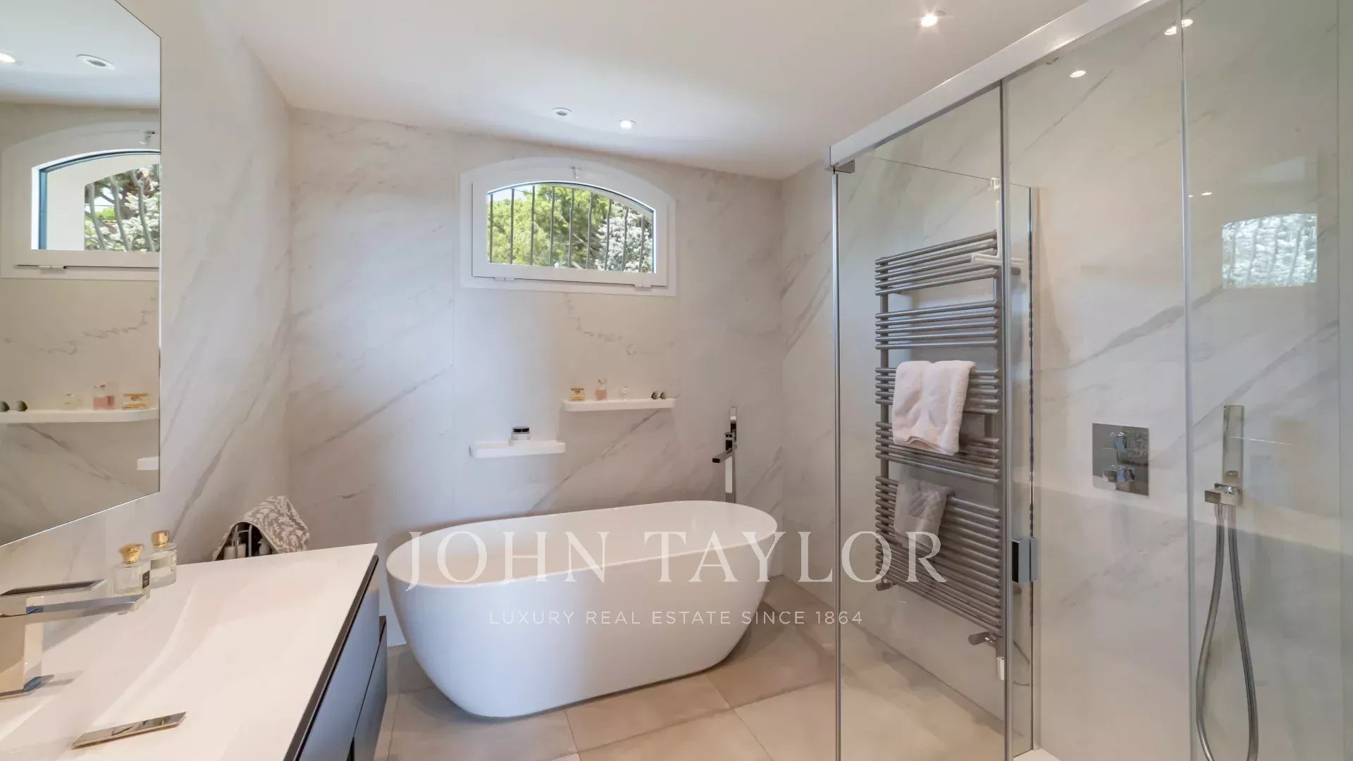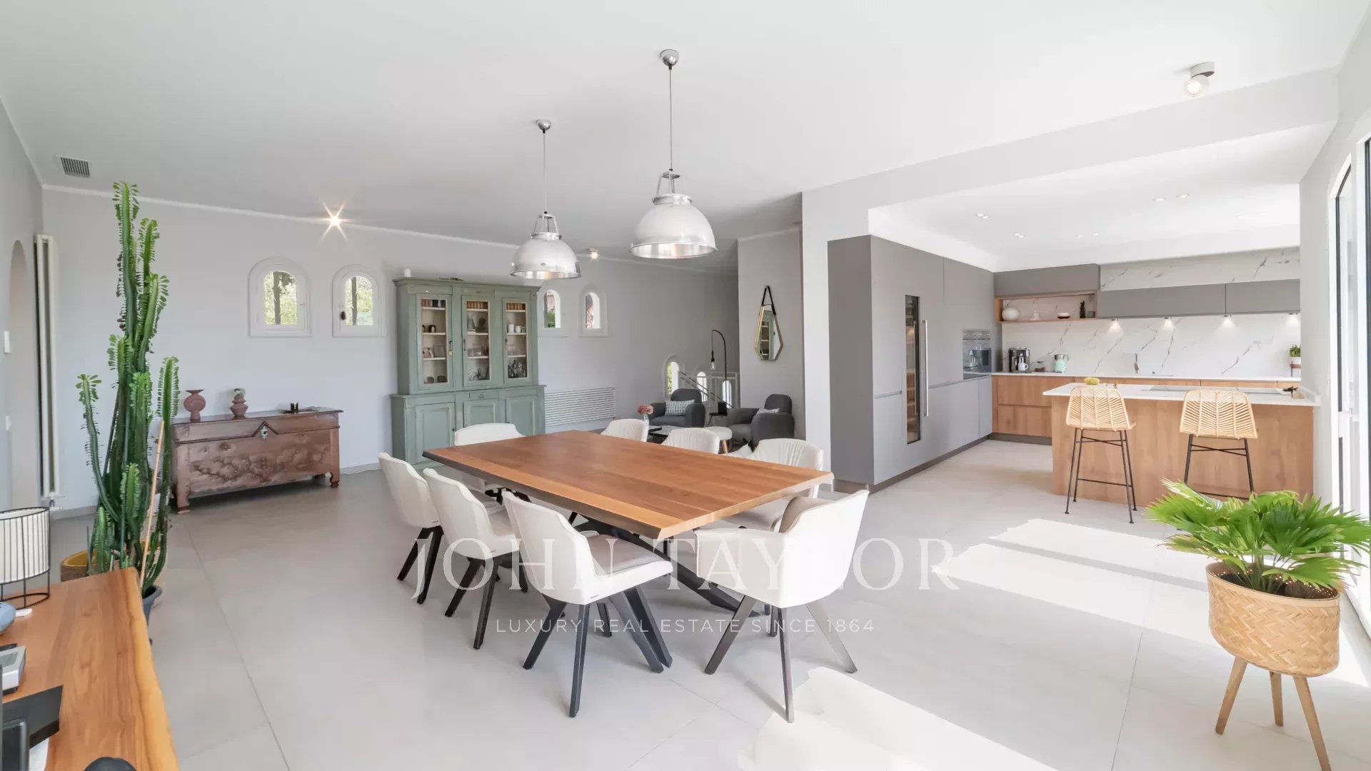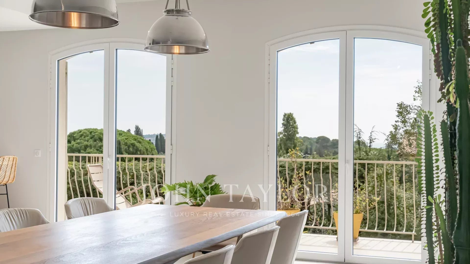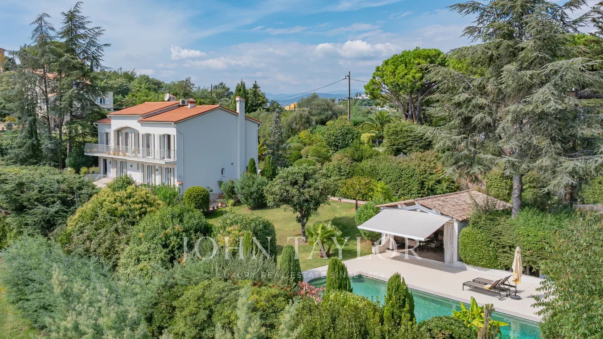 A 5 mn de Mougins, située dans un domaine prisé de La Roquette-sur-Siagne, cette villa de charme d'environ 258 m² offre une vue imprenable sur la mer. Entièrement rénovée avec des prestations haut de gamme, elle propose un cadre de vie paisible et raffiné. La villa dispose de cinq chambres spacieuses et de quatre salles de bains modernes. Le salon lumineux s'ouvre sur une vaste terrasse offrant un panorama à couper le souffle. À l'extérieur, une magnifique piscine accompagnée d'un pool house d'environ 35 m², véritable seconde pièce avec cuisine d'été, invite à profiter pleinement des beaux jours. Un grand carport et un vaste espace pouvant accueillir une salle de sport ou bureau indépendant complètent cette propriété.