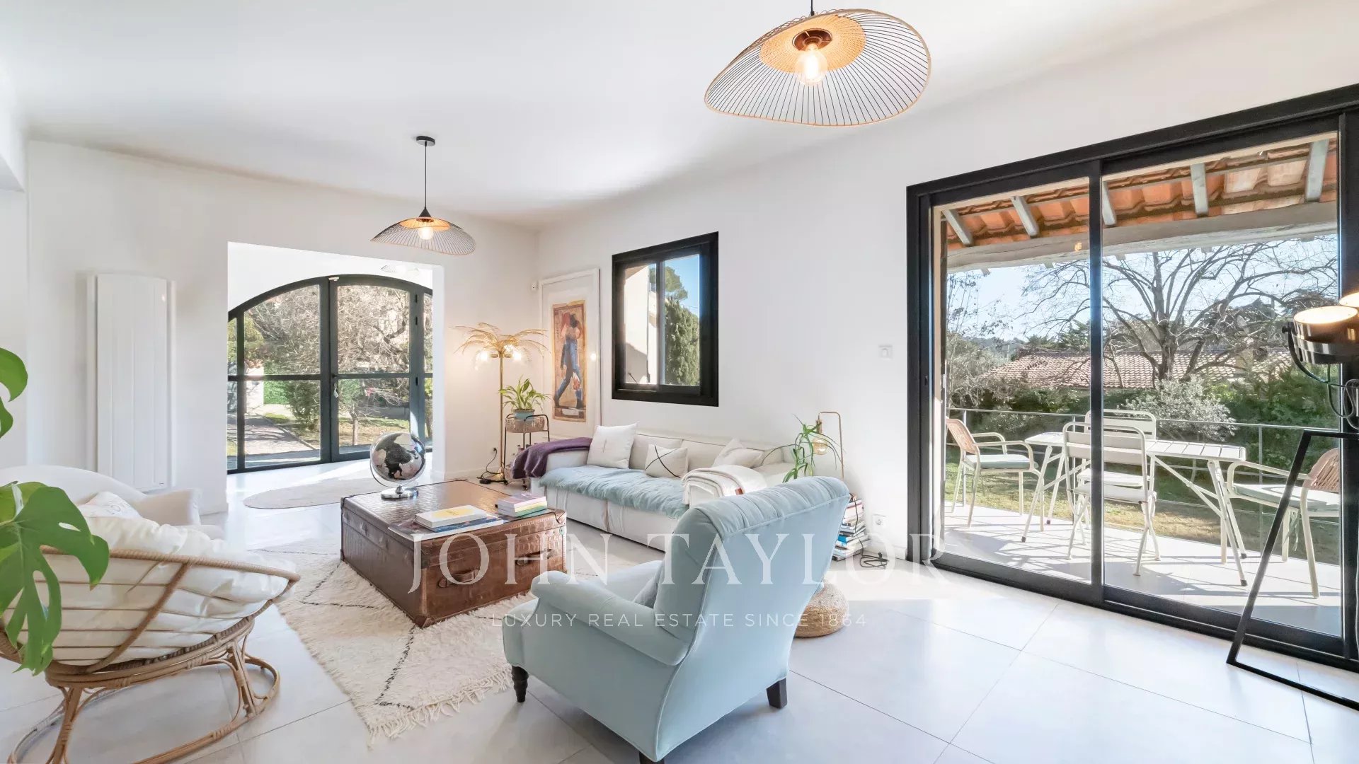 Bénéficiant d’un emplacement privilégié, cette propriété combine à merveille calme et accessibilité : à seulement 15 minutes de Cannes et des plages, et à 20 minutes de l’aéroport de Nice.