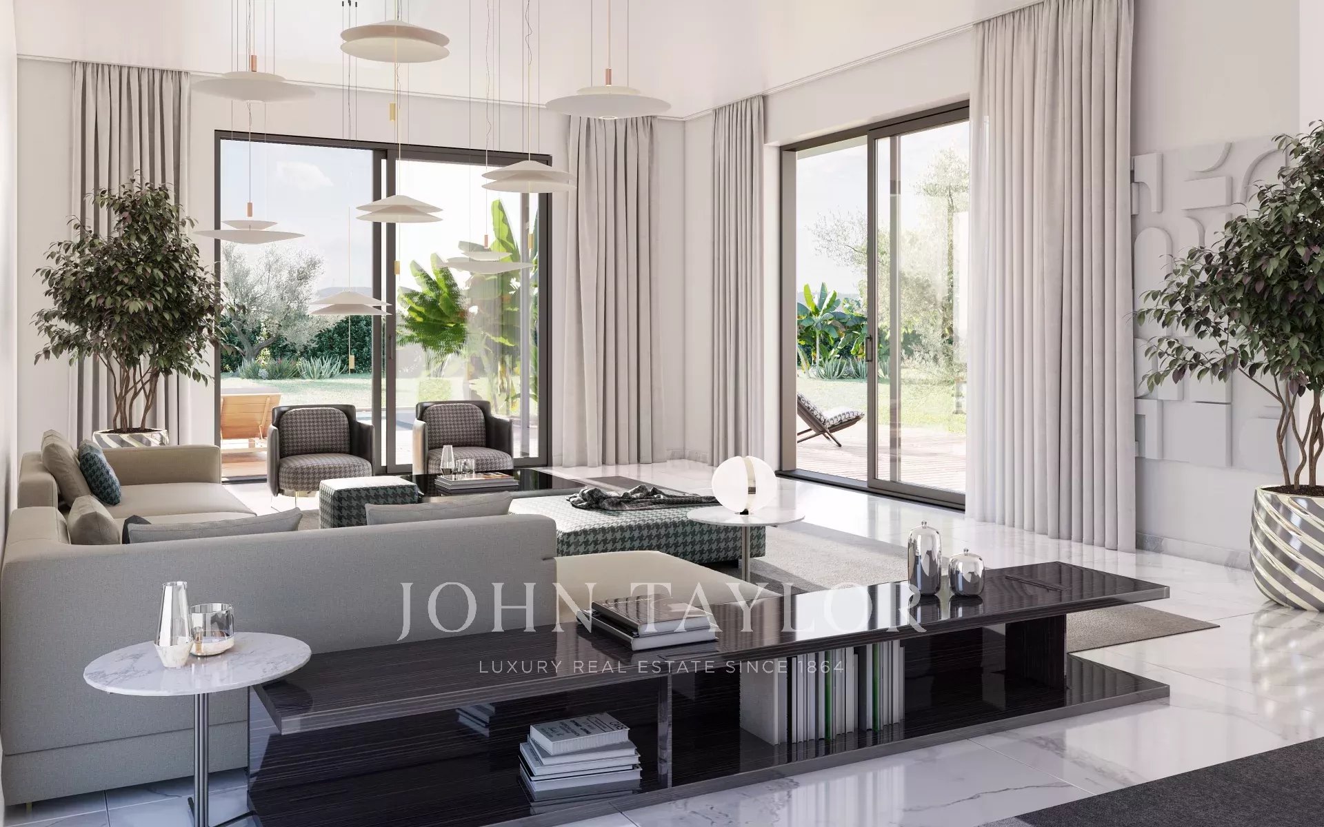 Dans un domaine sécurisé, sur un terrain d’environ 1 900 m², cette villa contemporaine en cours de réalisation se distingue par ses prestations haut de gamme et ses volumes généreux.