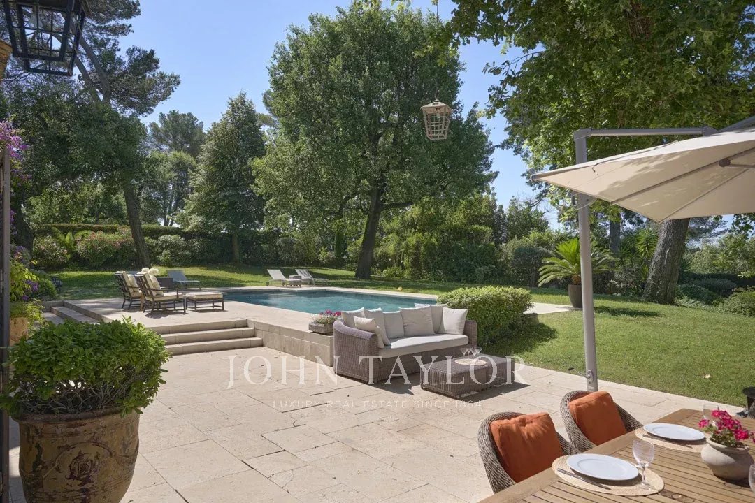 Idéalement située au point culminant de ce domaine, la propriété bénéficie d’une vue dégagée jusqu’au vieux village de Mougins.