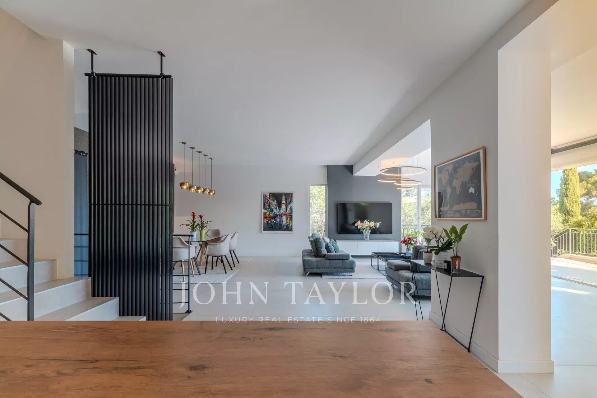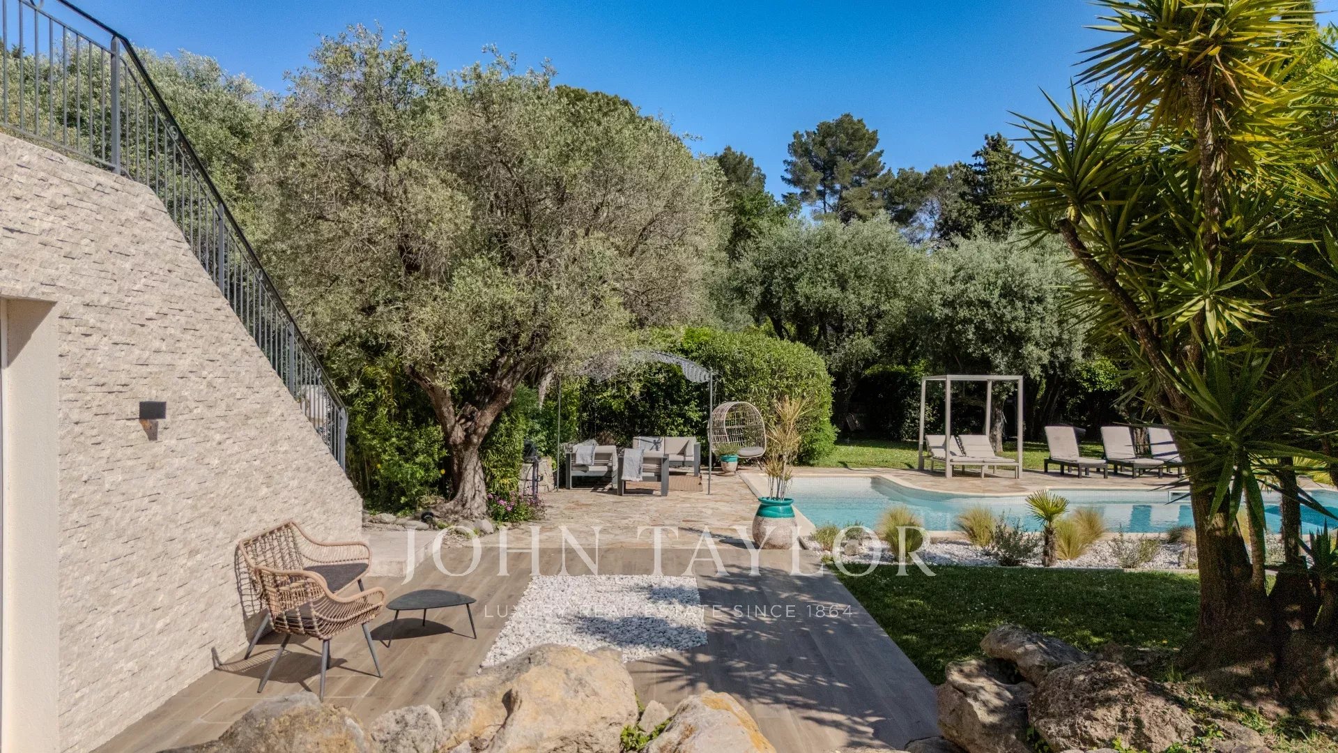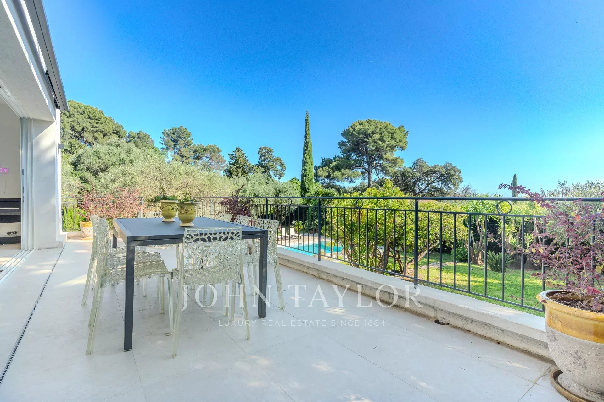 Dans un quartier résidentiel de Mougins avec vue mer au calme et proche des commodités, belle Bastide entièrement rénovée d'environ 245 m2, sise sur un terrain de 1800 m2 entièrement paysagé avec piscine chauffée.