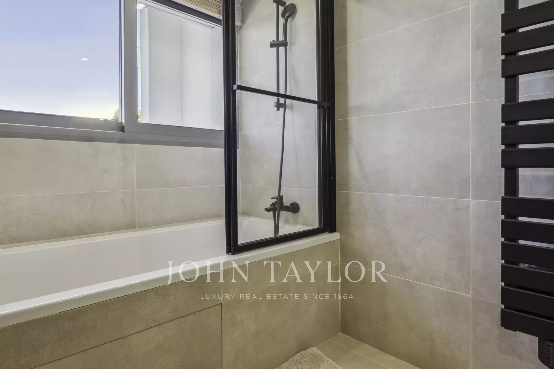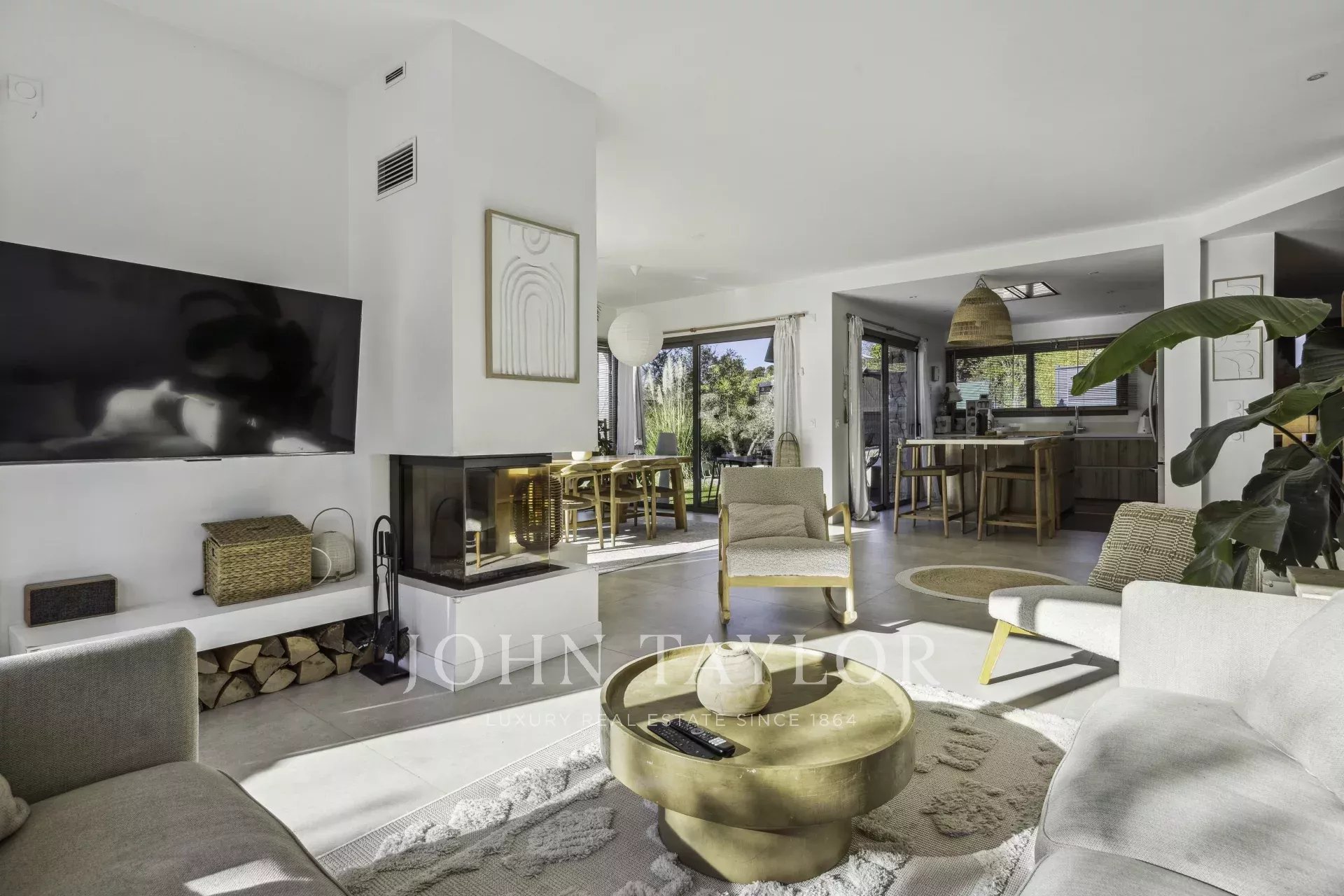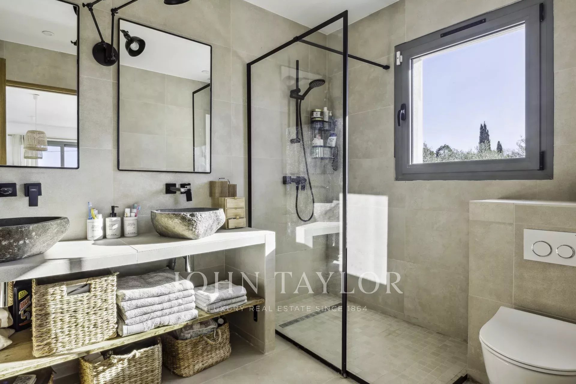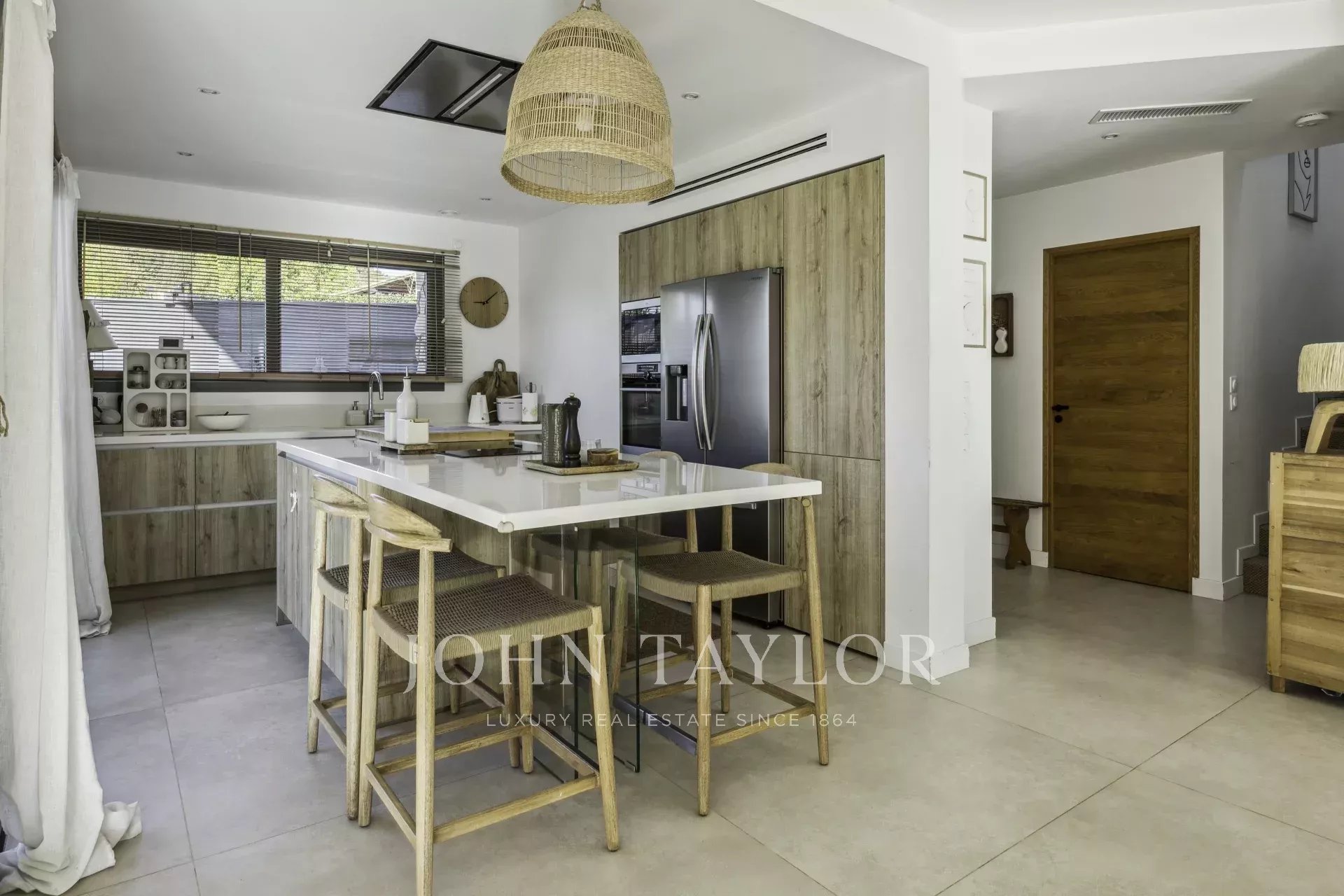 Située au calme à Mougins, cette villa contemporaine très récente séduit par son architecture élégante et ses prestations haut de gamme.