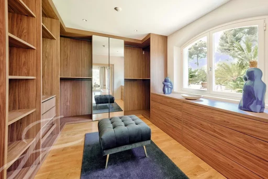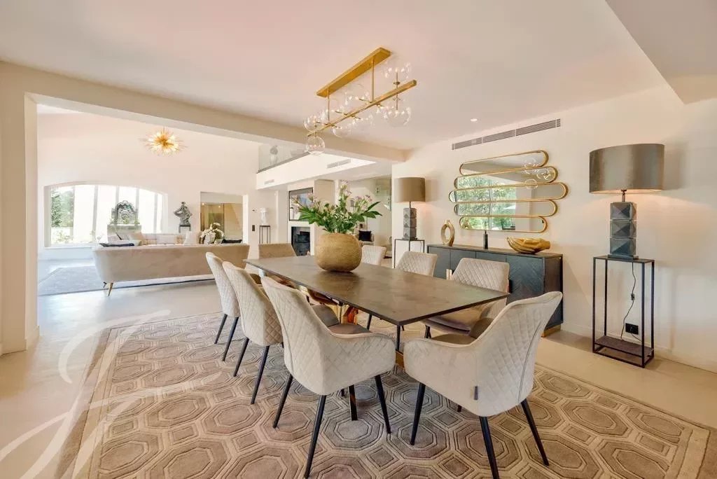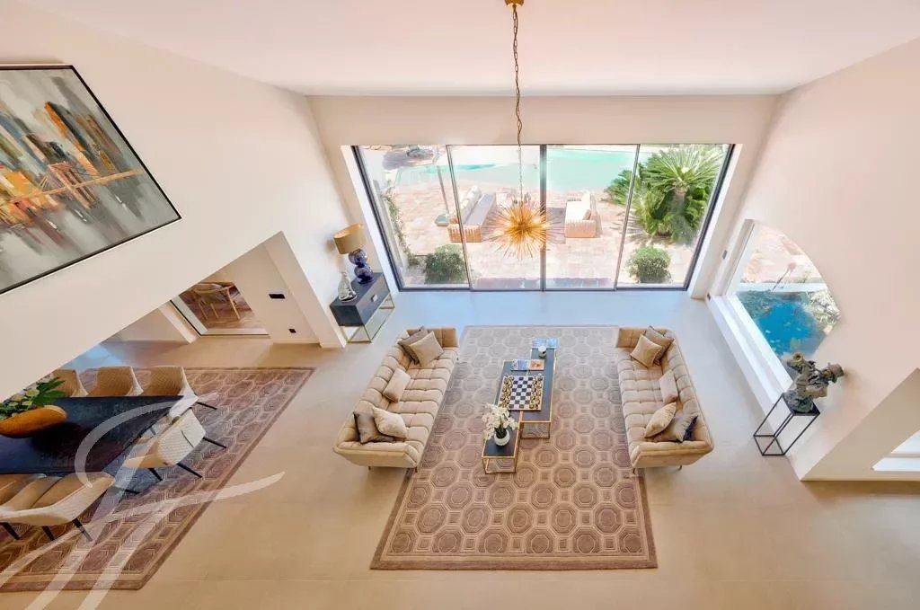 La villa présente une belle entrée avec bassin d'agrément, un majestueux et lumineux salon cathédrale avec cheminée, une vaste cuisine ouverte avec salle à manger, office.