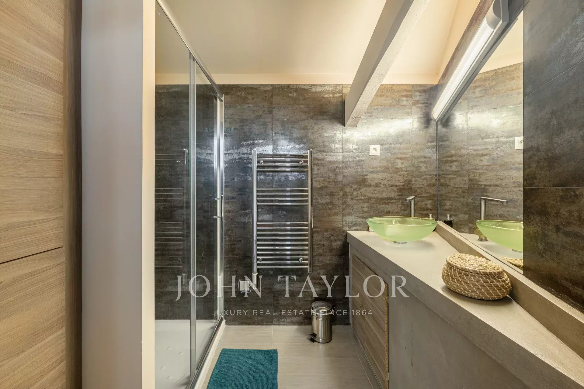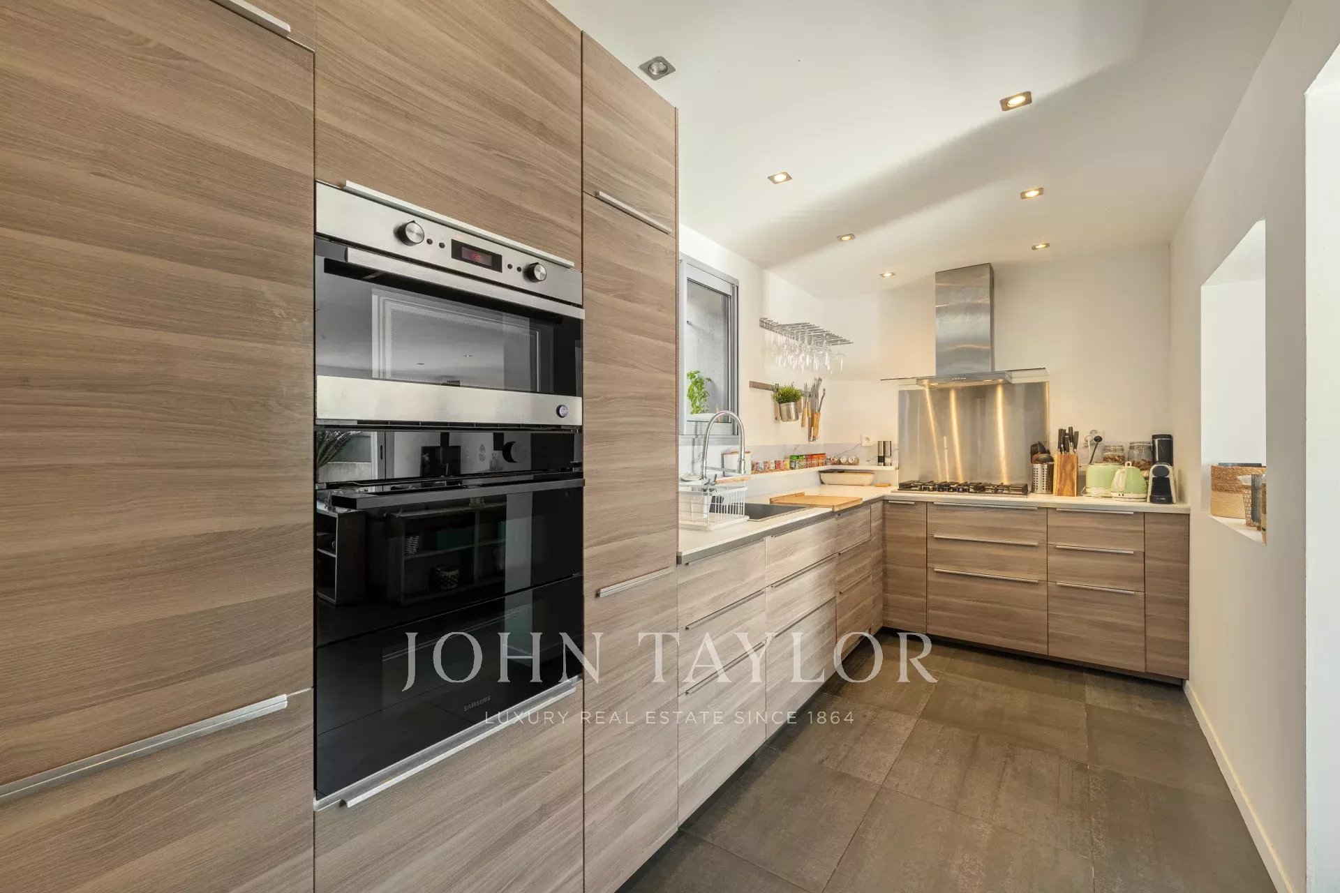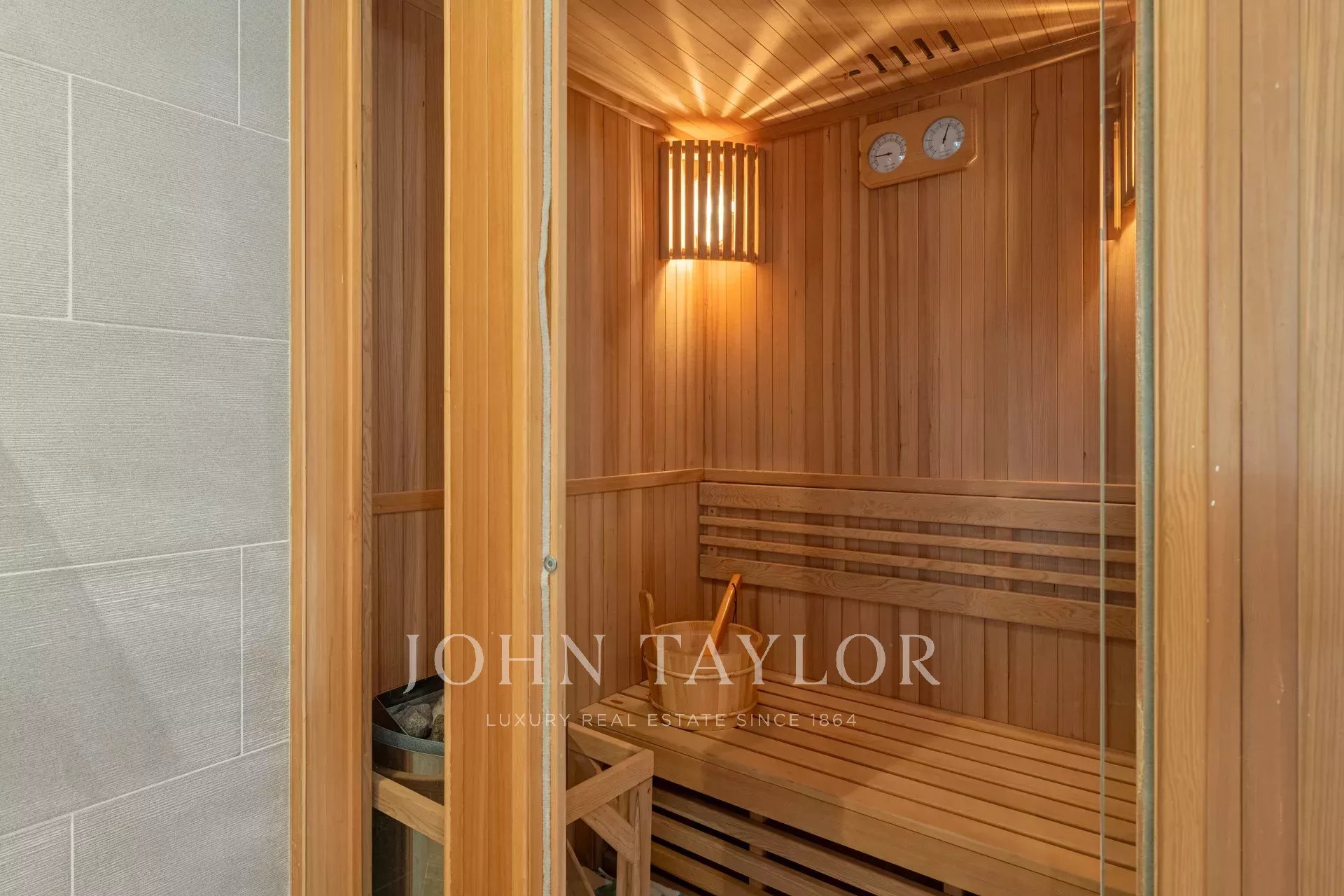 Au rez-de-chaussée, l’entrée avec dressing et toilettes invités ouvre sur un spacieux séjour baigné de lumière, une cuisine ouverte avec arrière-cuisine, ainsi qu’une chambre principale dotée d’une salle de bains avec douche et d’un sauna. À l’étage, une très grande mezzanine, idéale pour un bureau, dessert deux belles chambres avec leurs salles de douche privatives.
