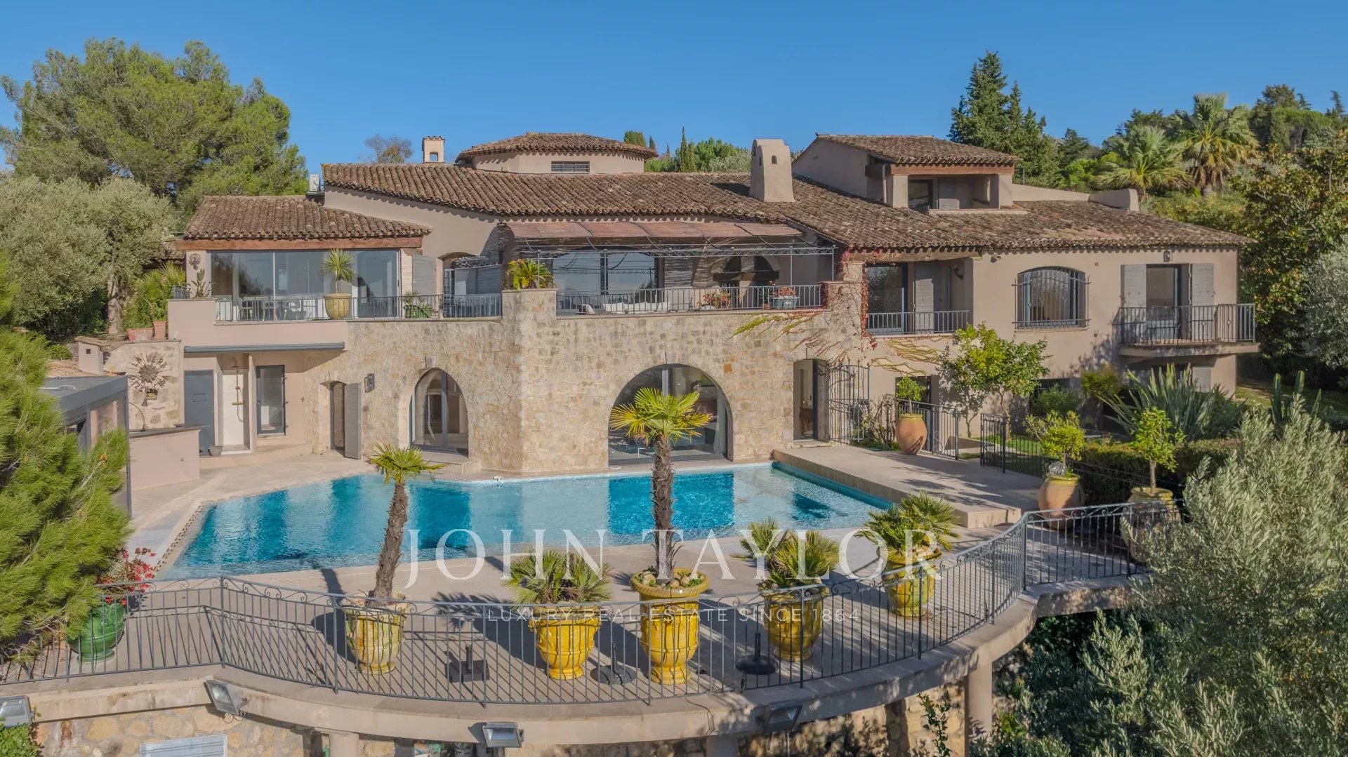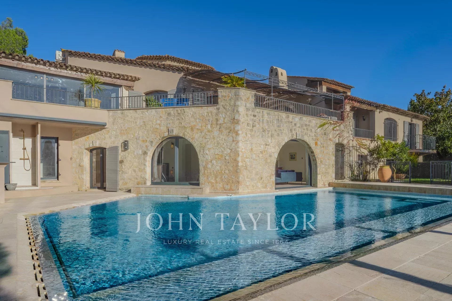 Exceptionnelle villa entièrement rénovée, située dans l’un des secteurs les plus prisés de Mougins, à proximité de l'Étang de Mougins, offrant une vue imprenable sur la mer et le massif de l'Estérel. Construite en pierre du Portugal, cette somptueuse propriété s’élève sur un rez-de-chaussée, un rez-de-jardin et un étage.