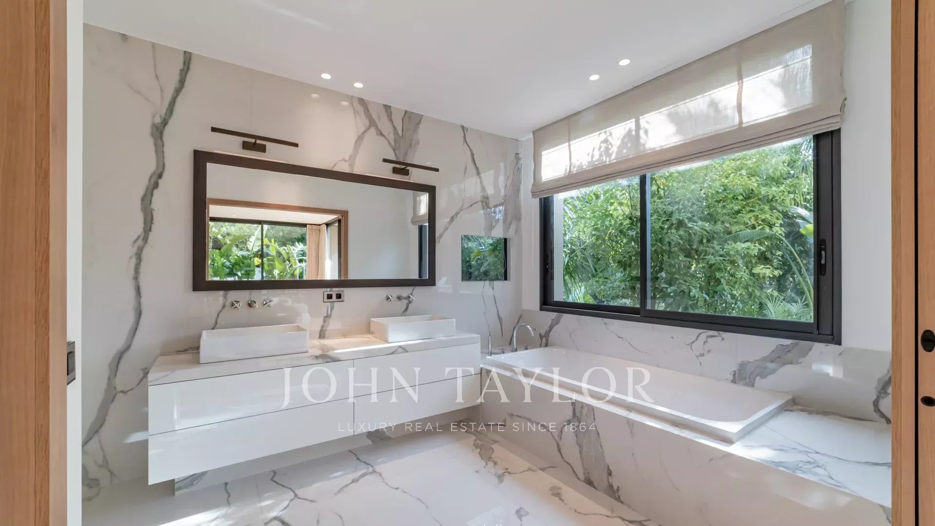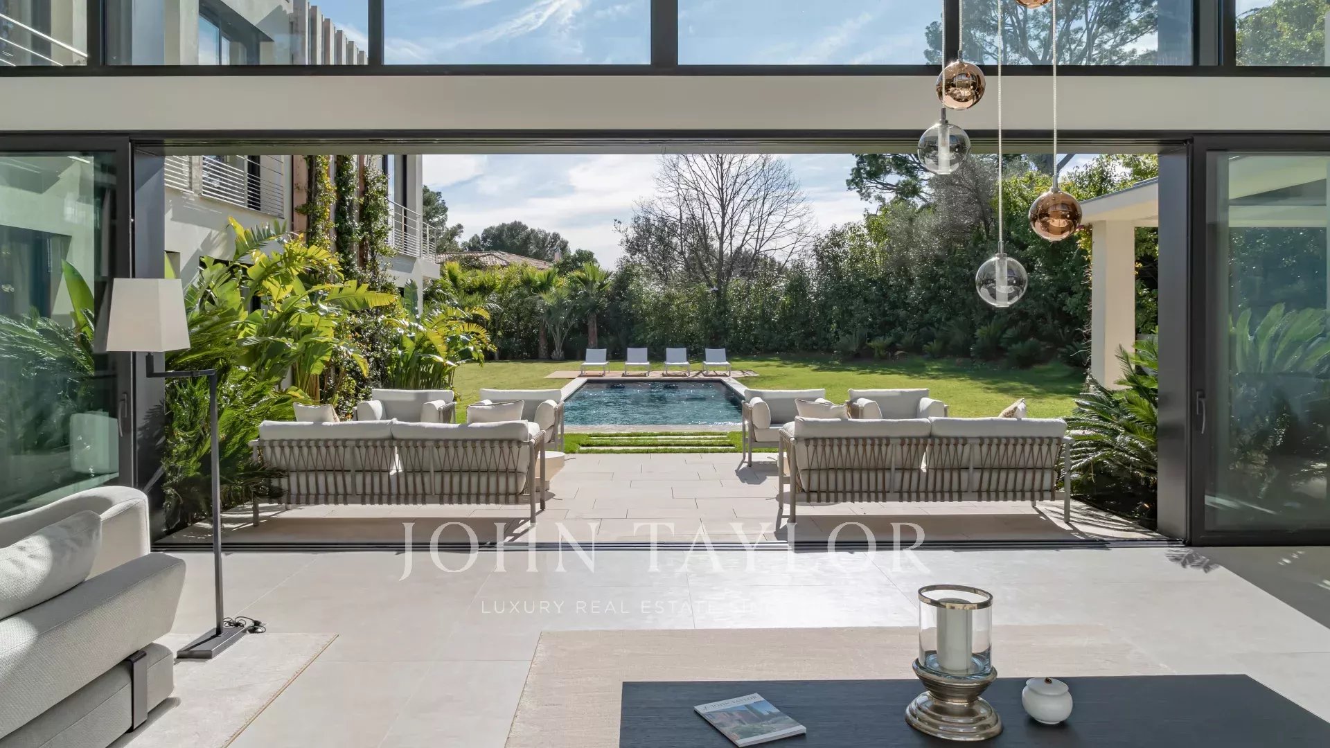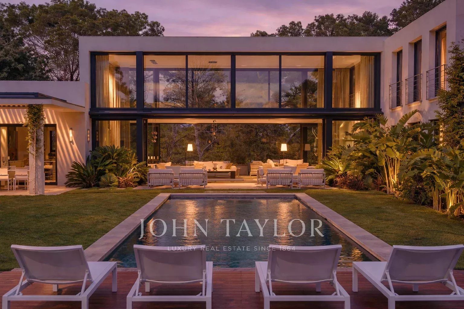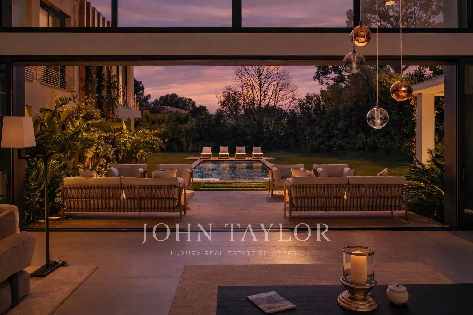 Située au cœur d'un domaine sécurisé prestigieux à Mougins, cette villa contemporaine neuve de 700 m2 offre un cadre de vie luxueux et exclusif sur un terrain d'environ 2700 m2.