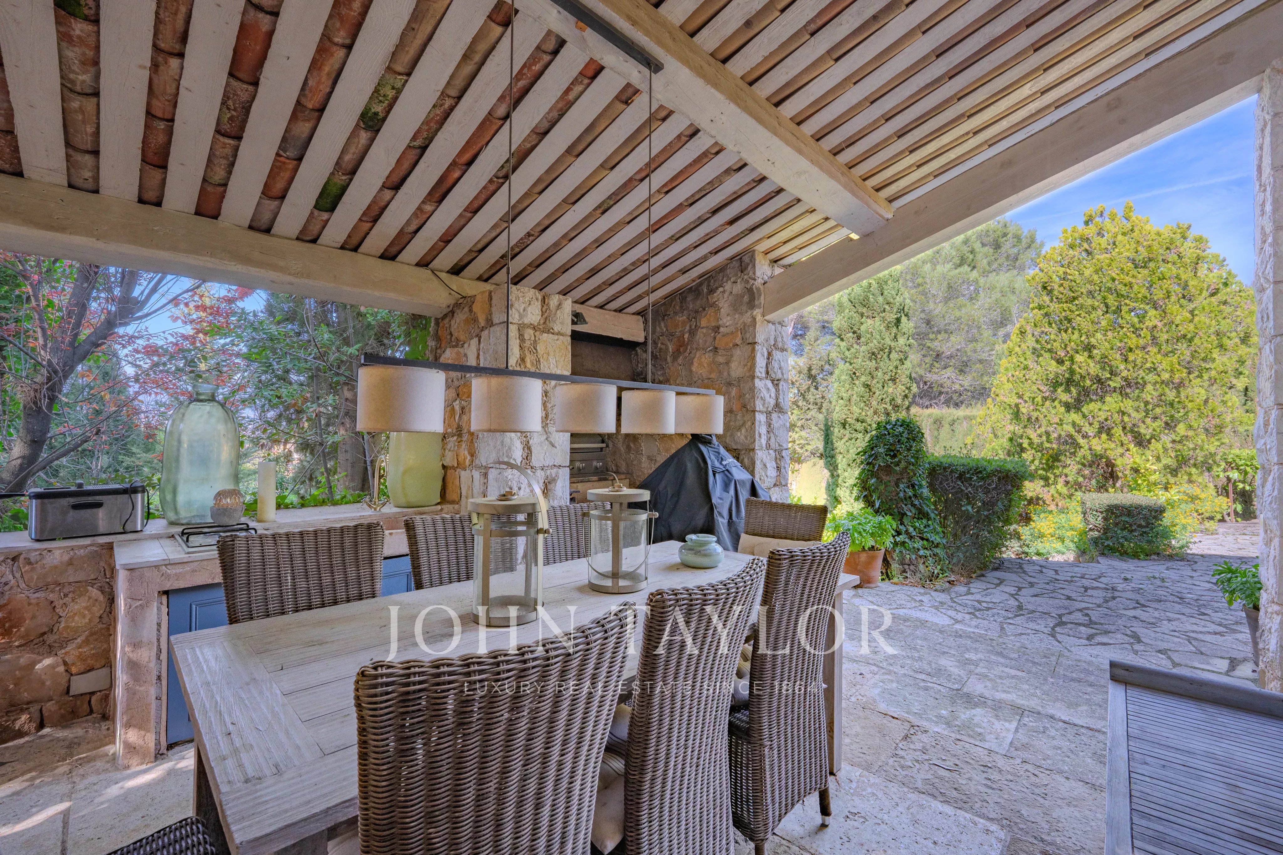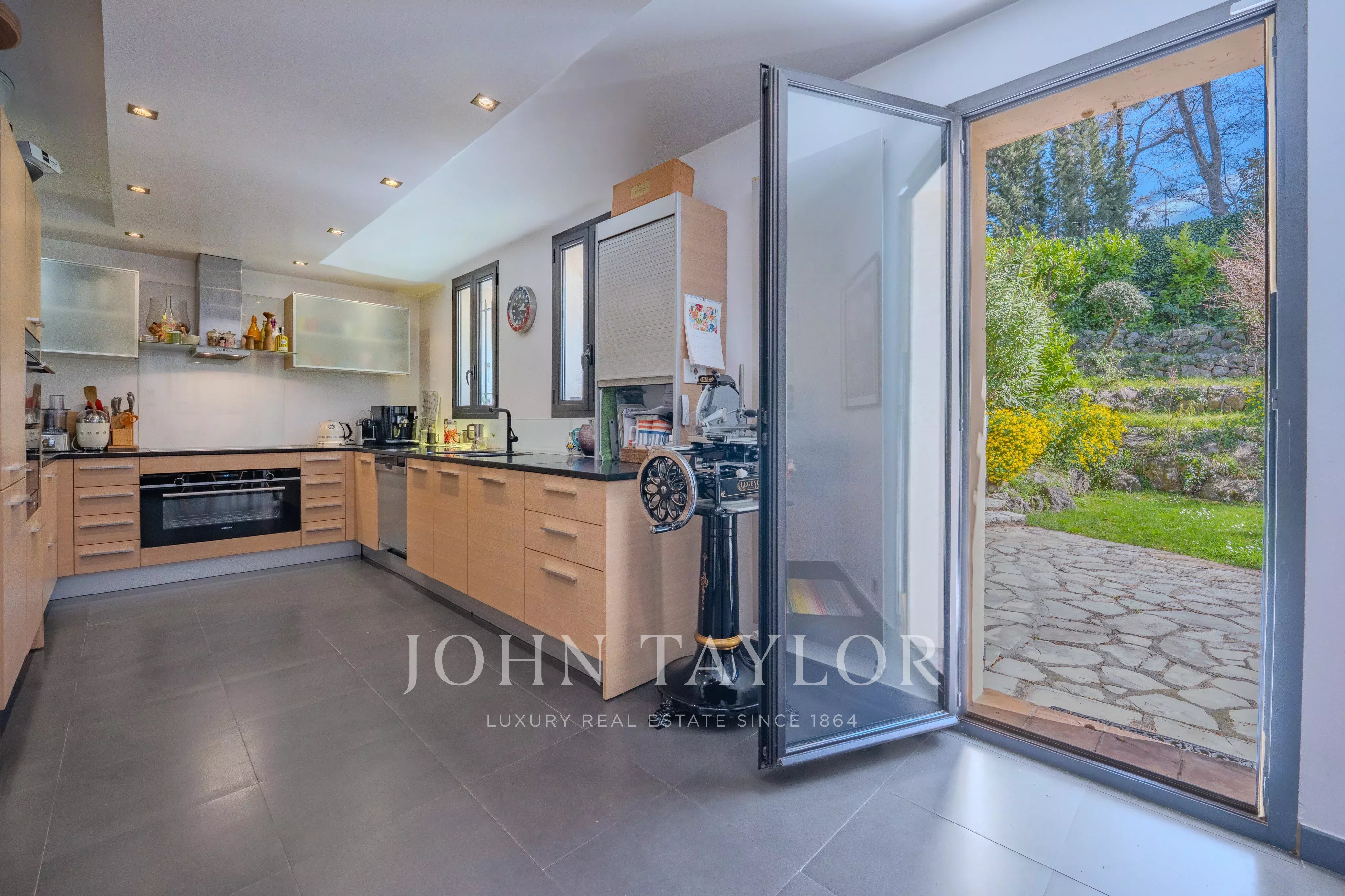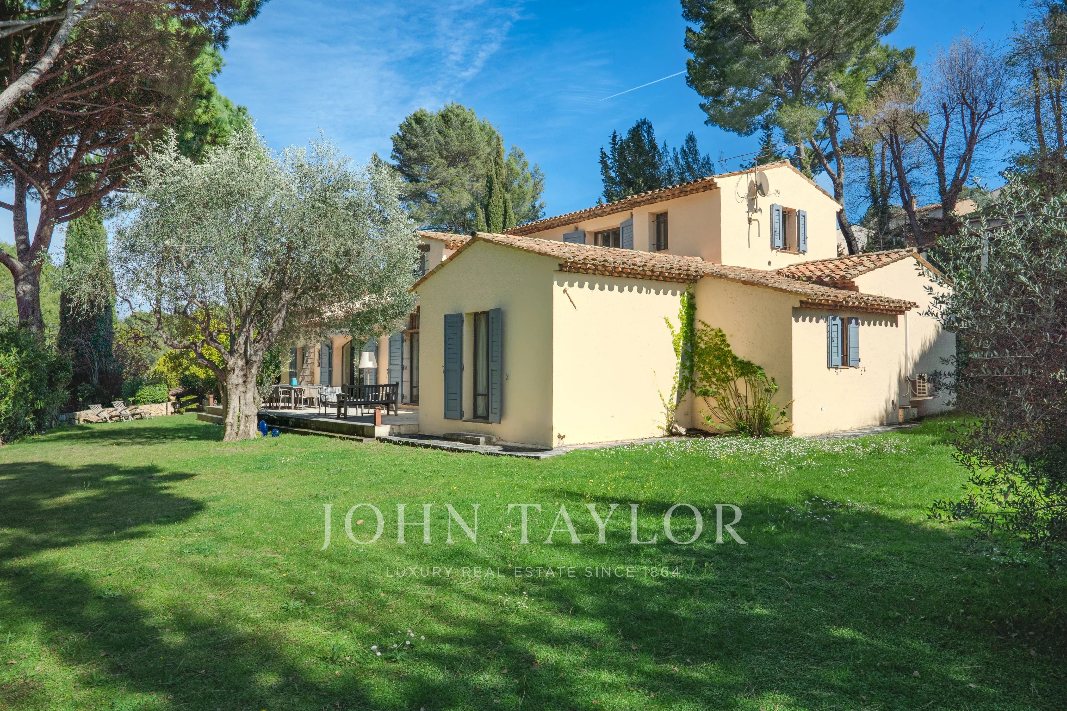 Le jardin paysager offre un cadre de vie privilégié avec une piscine de 11 m x 6 m et son pool house, un terrain de pétanque, ainsi qu’un double garage, le tout dans un environnement résidentiel à pieds des commerces.