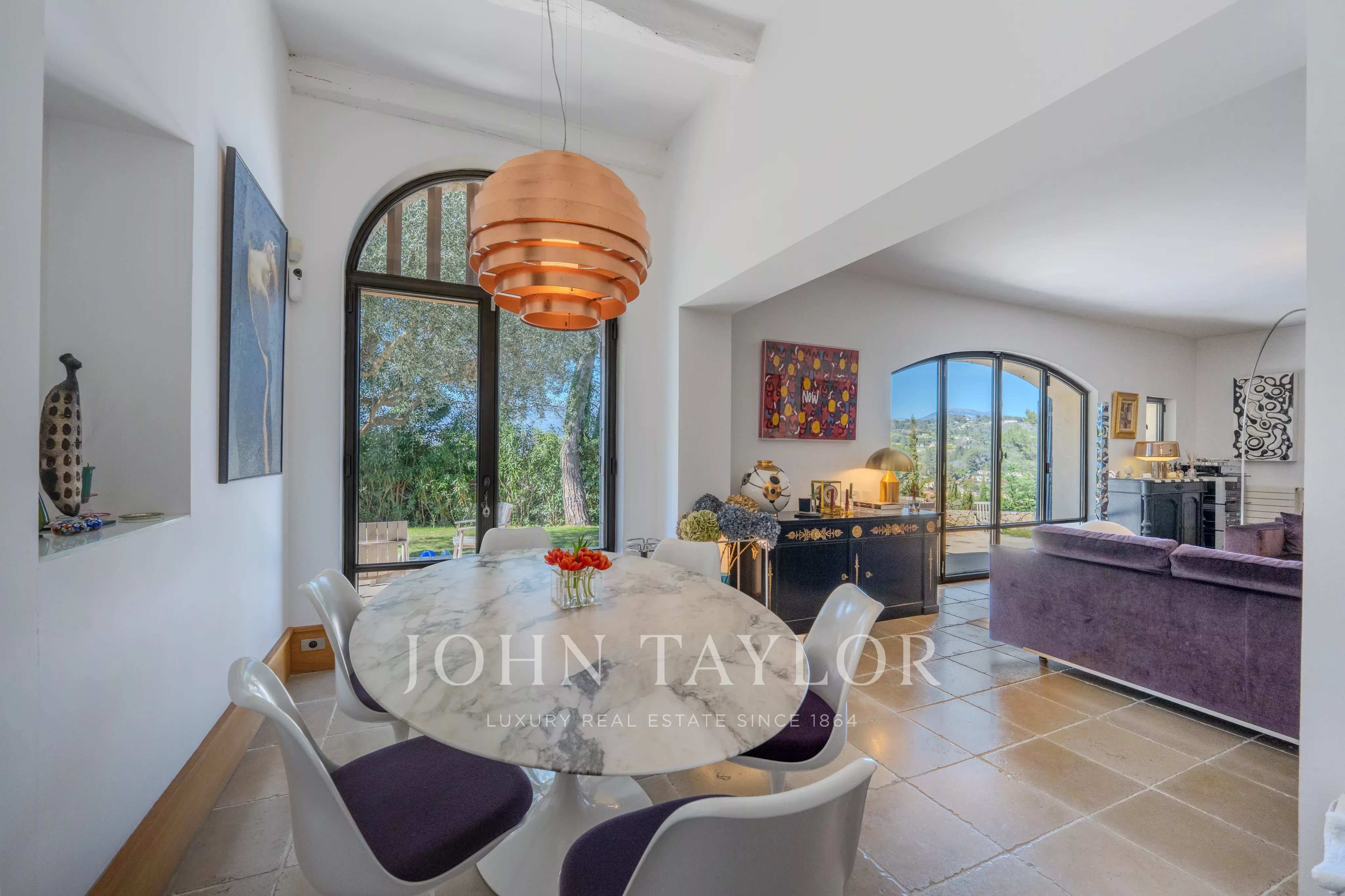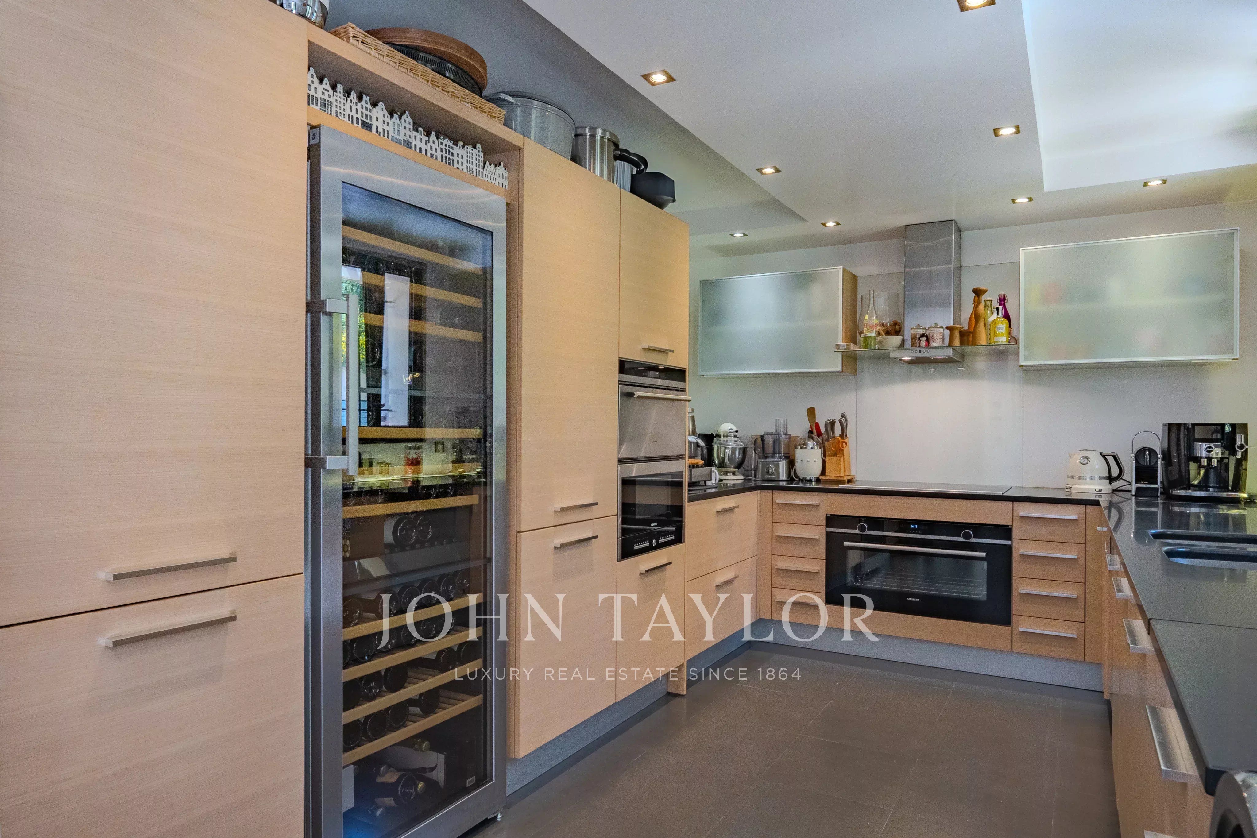 Dès l’entrée, la propriété dévoile un vaste espace de vie harmonieusement structuré en plusieurs ambiances : un salon de réception, un espace musique, un chaleureux coin cheminée ainsi qu’un bureau, offrant une atmosphère à la fois conviviale et raffinée. Une salle à manger et une cuisine spacieuse complètent cet ensemble de plain-pied.