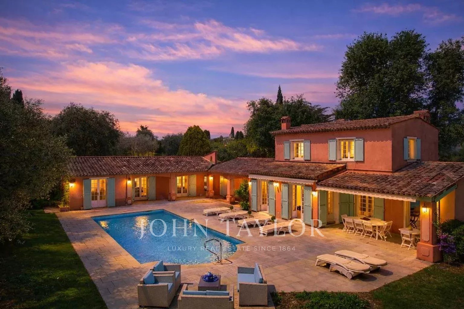 Co-exclusivité : Sur la colline de Mougins, à quelques pas du charmant vieux village, découvrez cette élégante propriété provençale de 234 m², nichée sur un terrain plat de 3 218 m² agrémenté d’une oliveraie.