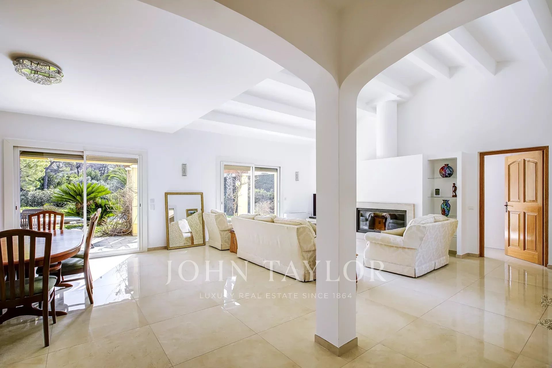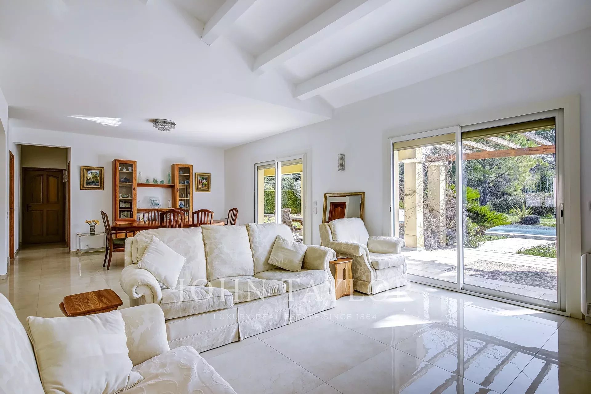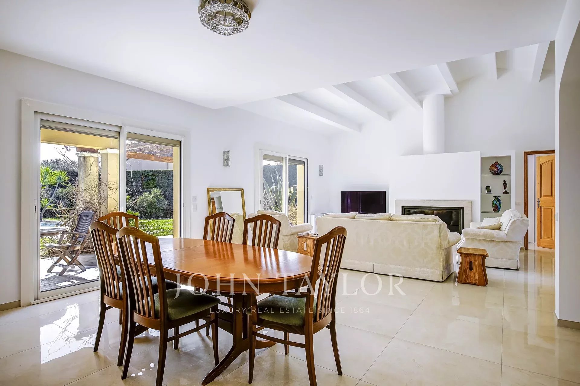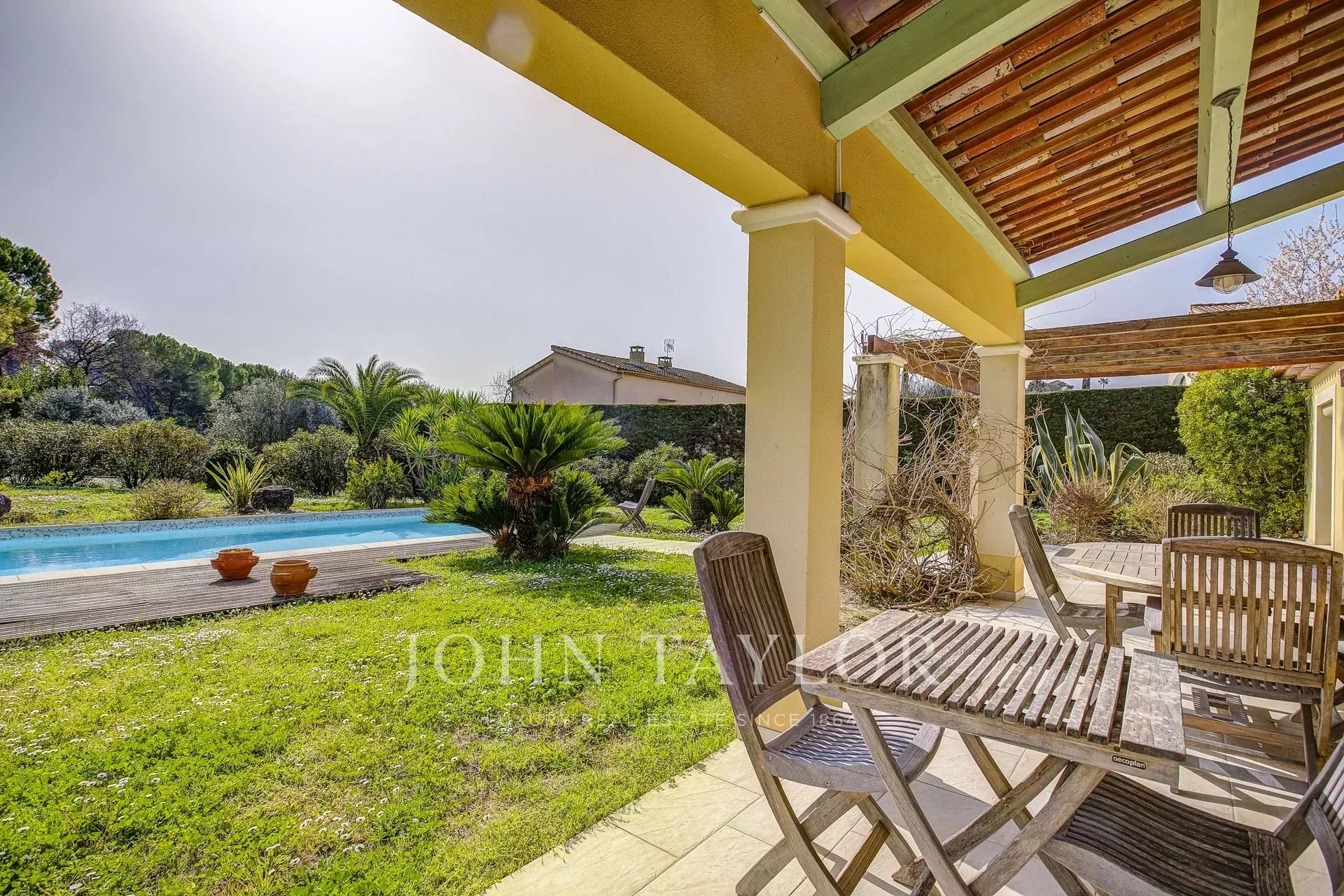 Située dans un quartier résidentiel prisé de Mougins, cette villa bénéficie d’un cadre agréable et d’une belle luminosité tout au long de la journée. La maison offre un séjour spacieux avec cheminée, une cuisine indépendante, un cellier ainsi qu’une buanderie. Une spacieuse chambre parentale avec placards et salle de douche complète ce niveau, offrant un espace de vie confortable et fonctionnel. À l’étage, vous trouverez trois chambres ainsi qu’une salle de bains. Implantée sur un terrain plat, la propriété dispose également d’une piscine, d’un garage et d’un double carport, offrant un cadre de vie agréable.