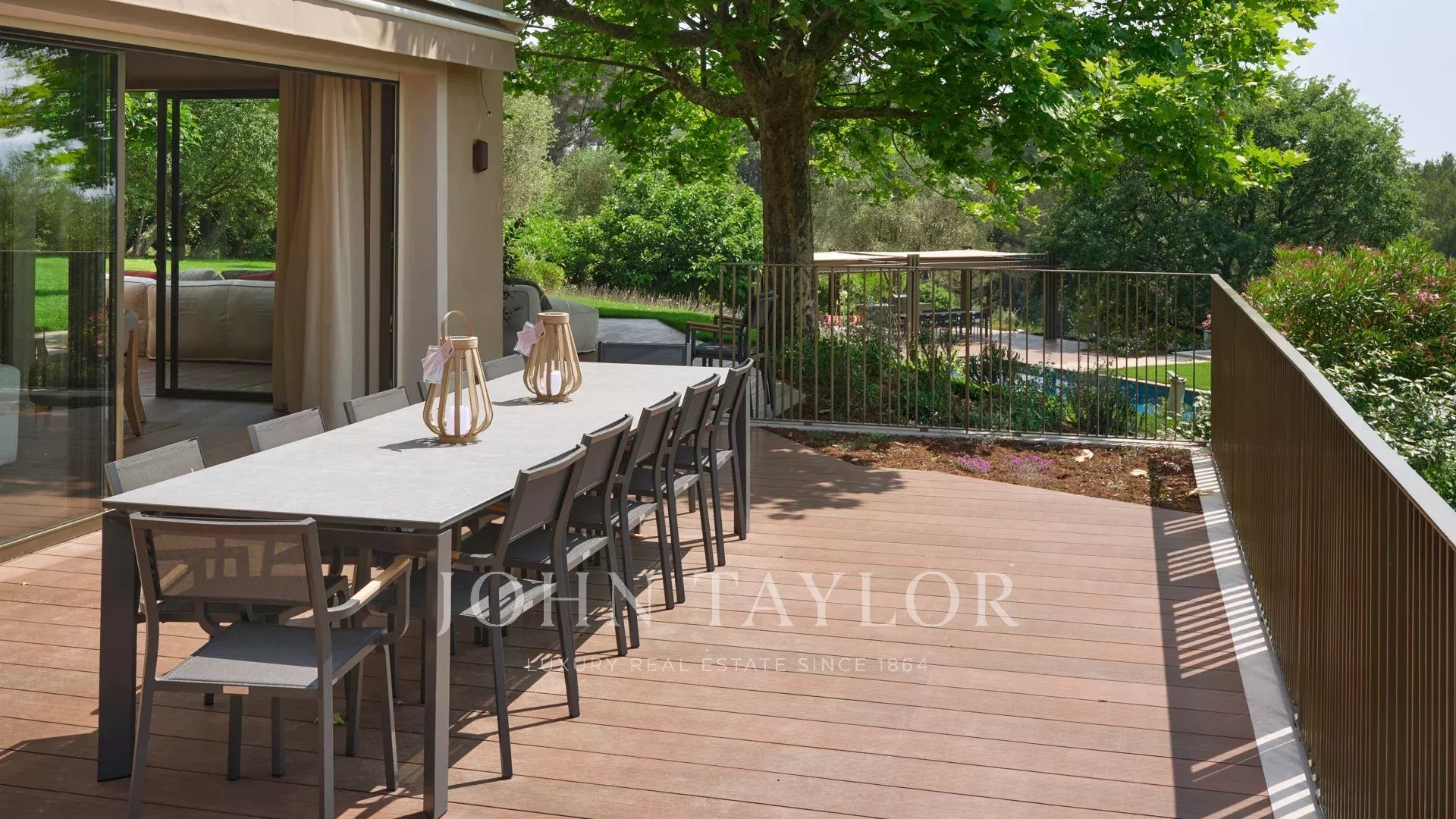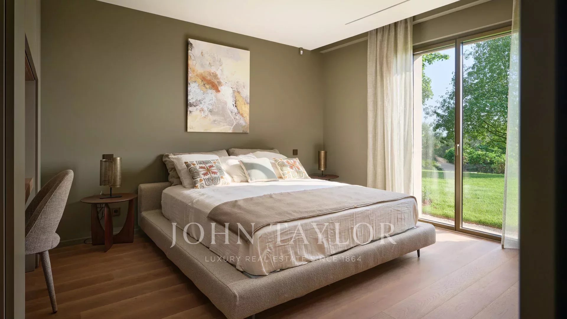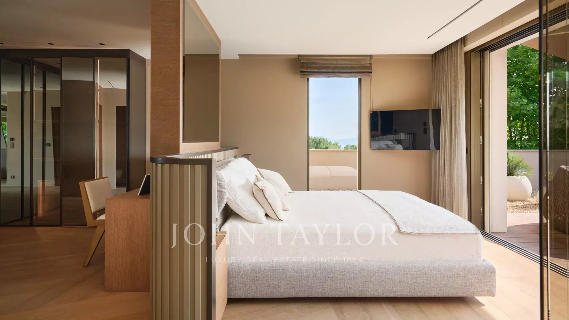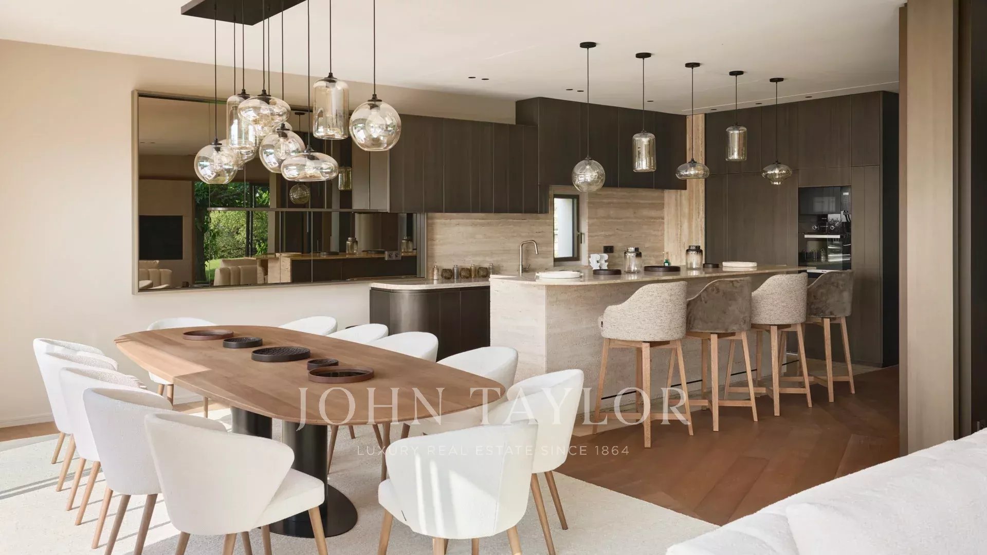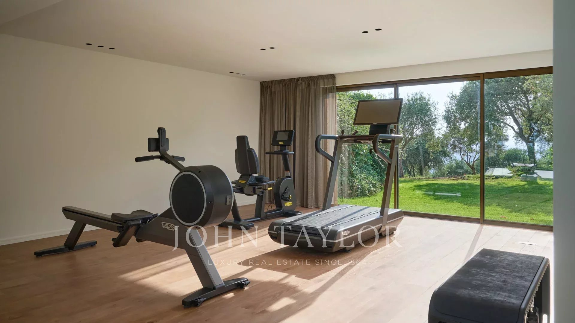 Côté annexes : un double garage, une salle de sport, une salle de cinéma ainsi qu’une cave à vin complètent ce bien rare.