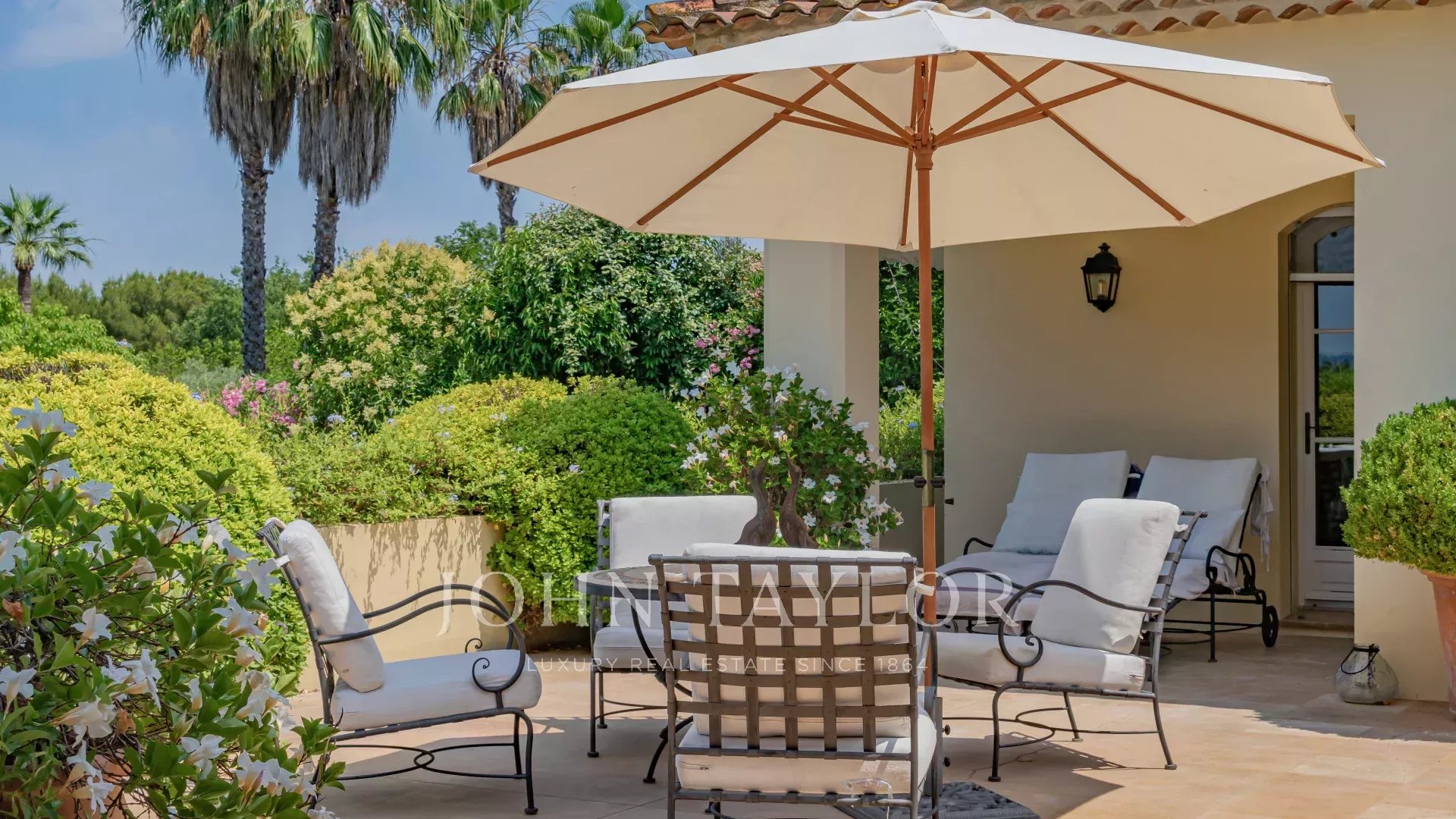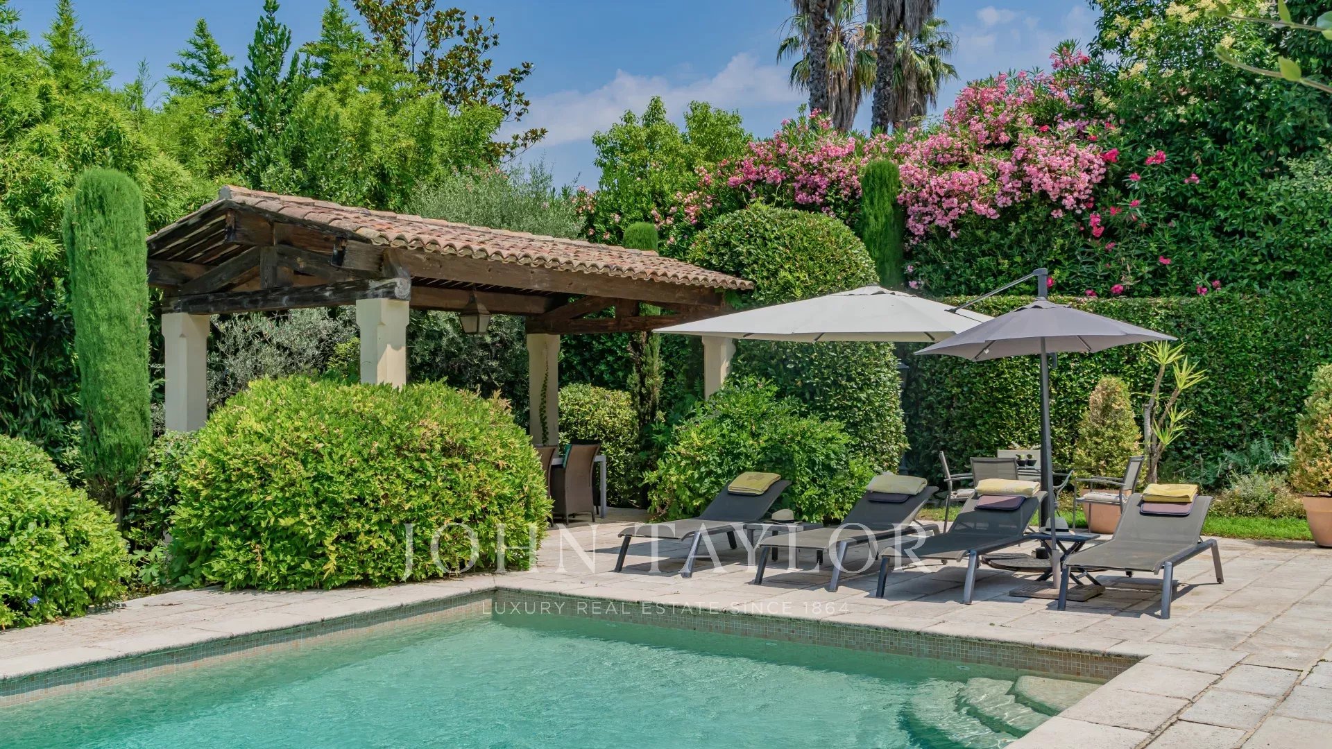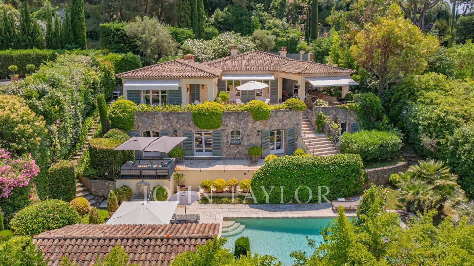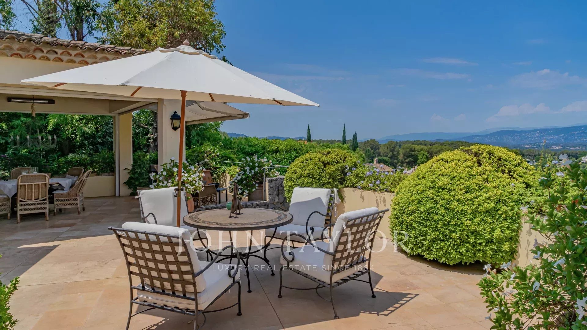 A deux pas du vieux village de Mougins, cette villa en parfaite condition offre une vue dégagée sur l'arrière-pays et le village de Grasse.