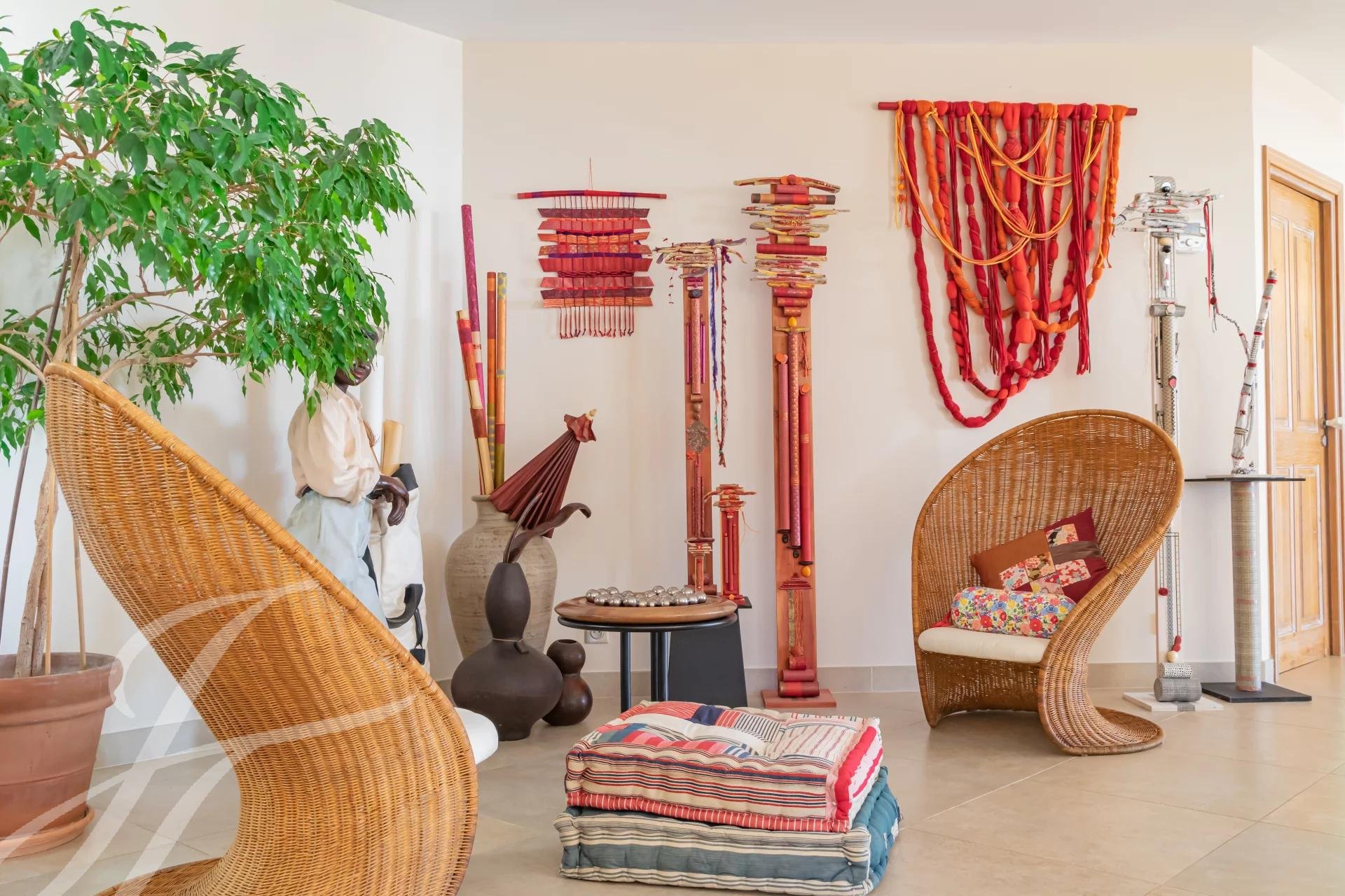 - Au niveau ultime : une majestueuse chambre de maître ensuite avec sa salle de bains-toilettes, un vaste dressing aménagé, ouvrant sur une profonde terrasse bénéficiant d’une vue à plus de 180° sur la mer