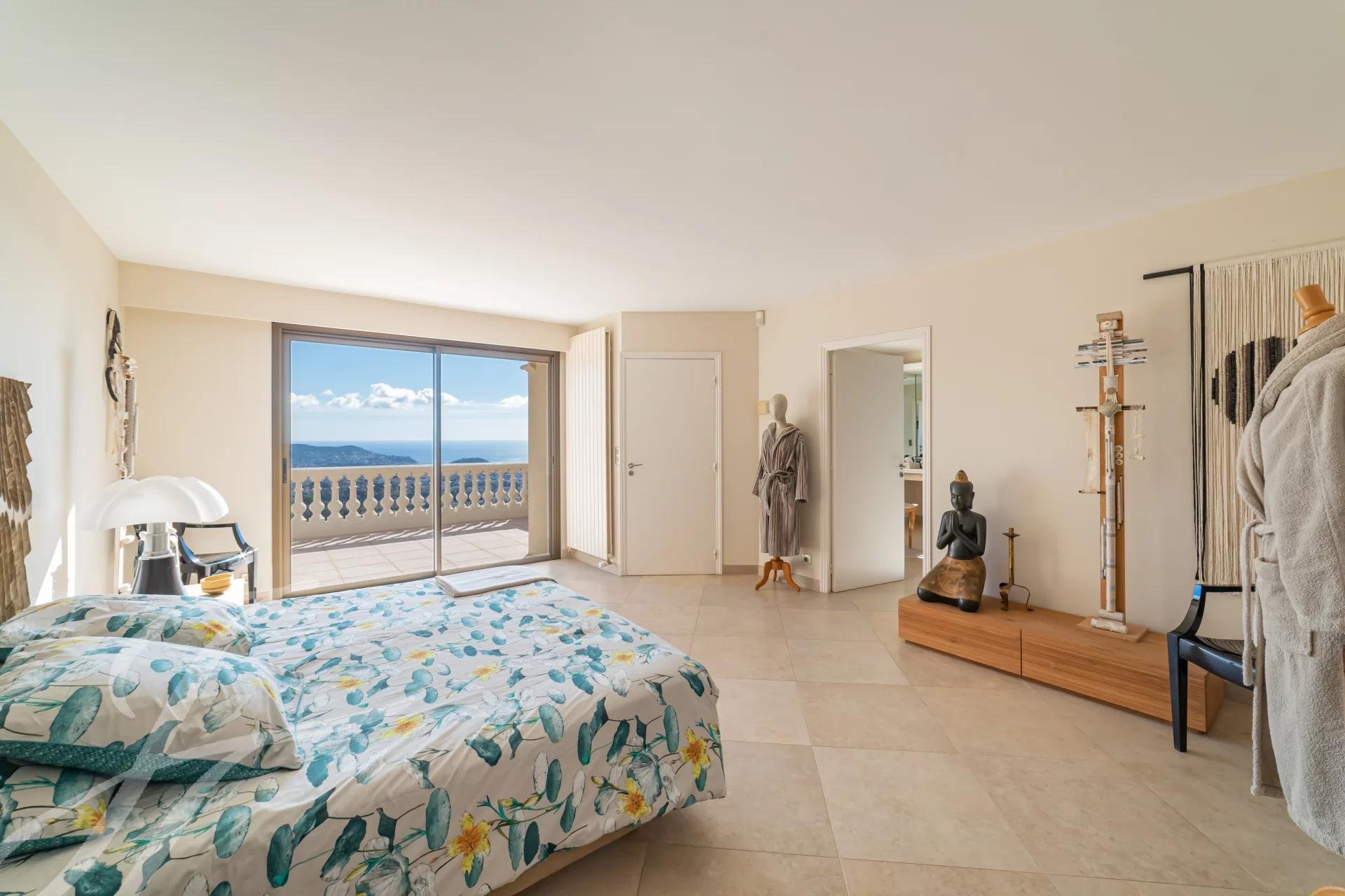 - Au dernier niveau : une majestueuse chambre de maître en suite avec sa salle de bains, un vaste dressing aménagé, ouvrant sur une profonde terrasse bénéficiant d’une vue à plus de 180° sur la mer.