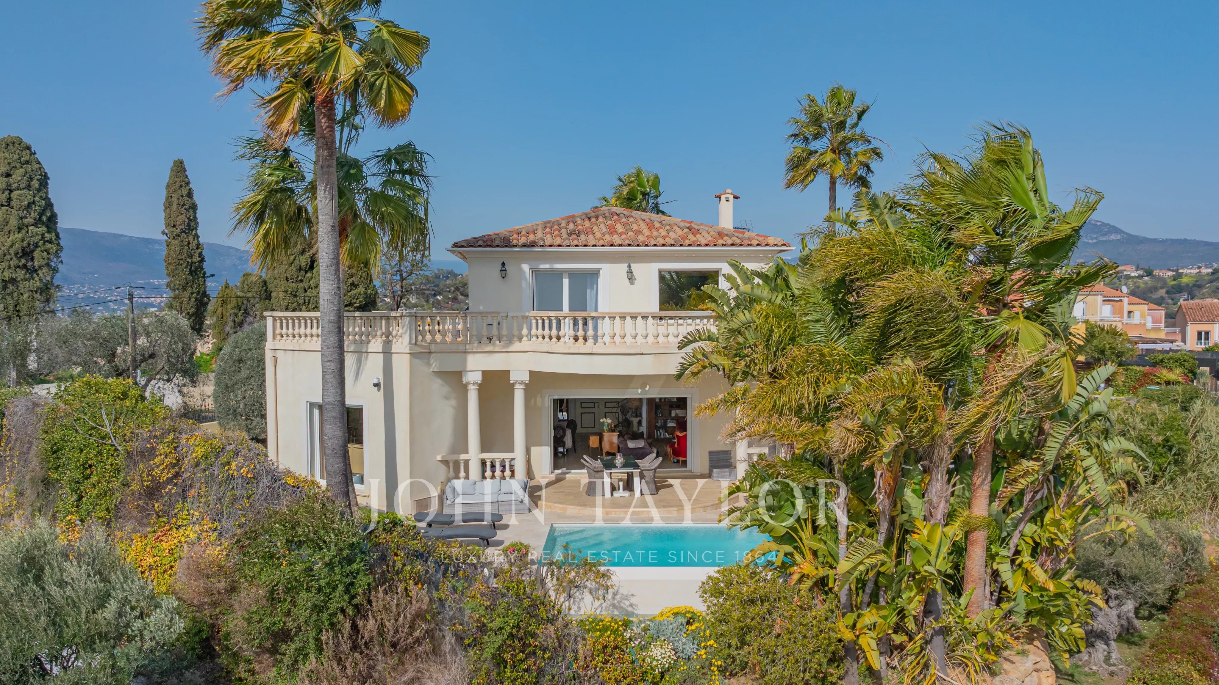 Dans les hauteurs de Nice, au sein d’un environnement résidentiel et familial recherché, au calme absolu et à proximité immédiate de l’International School of Nice (ISN) et des commerces, cette villa contemporaine édifiée en 2013 bénéficie d’une vue dégagée sur la mer, la ville et les collines environnantes, tout en restant à seulement quelques minutes de l’Aéroport Nice Côte d’Azur.