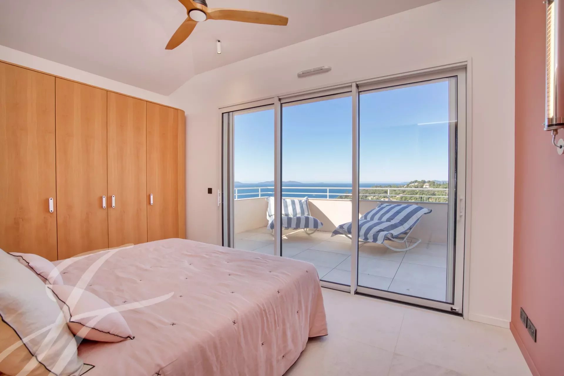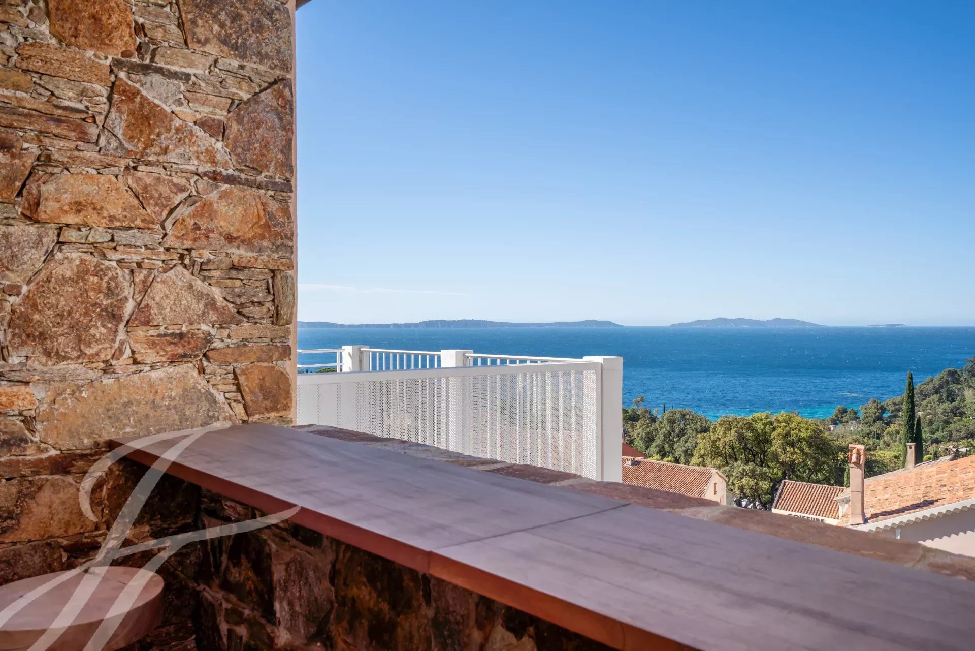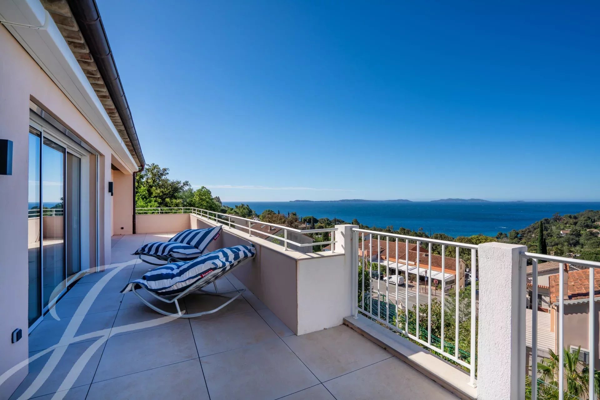 Rayol-Canadel, cette résidence neuve et intimiste de 10 appartements offre un style de vie unique : vue mer panoramique et accès commerces et plage à pied, L'appartement (villa sur le toit) de 132 m2 habitables est situé au 2ème et dernier étage (accès ascenseur depuis le sous-sol et le RDC) et bénéficie de 38 m2 de terrasse et 25 m2 de terrasse couverte d'une pergola avec cuisine extérieure, le tout avec une splendide vue mer.