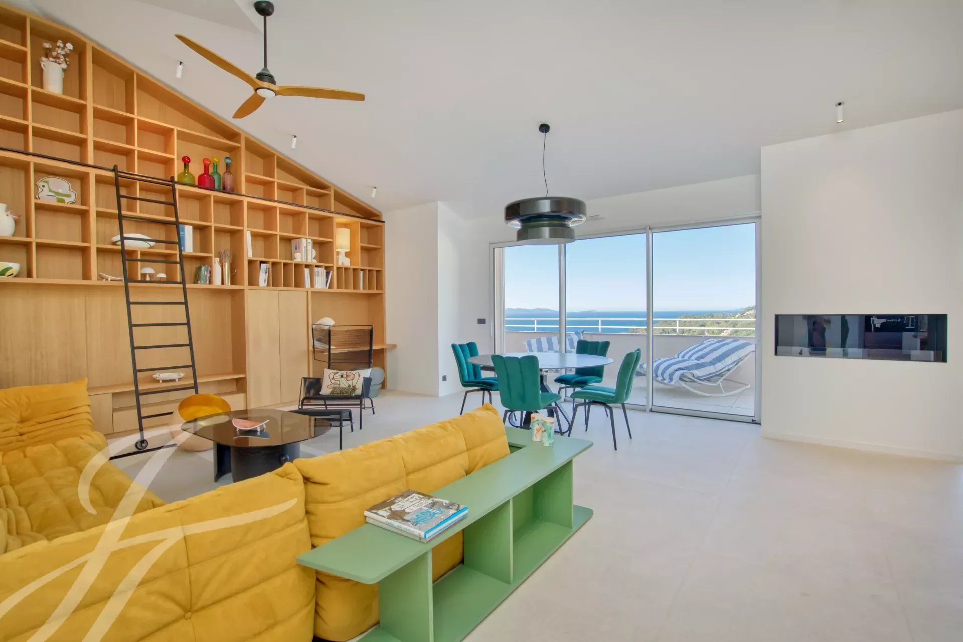 La terrasse principale bénéficie d'un store électrique sur toute la façade, le séjour est équipé d'une cheminée à l’éthanol.