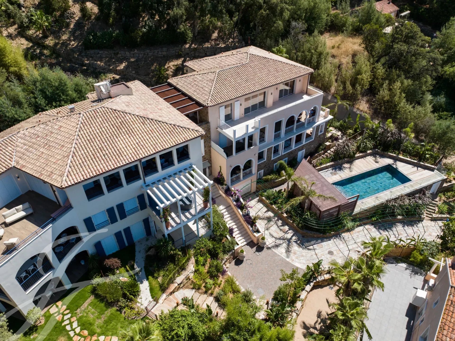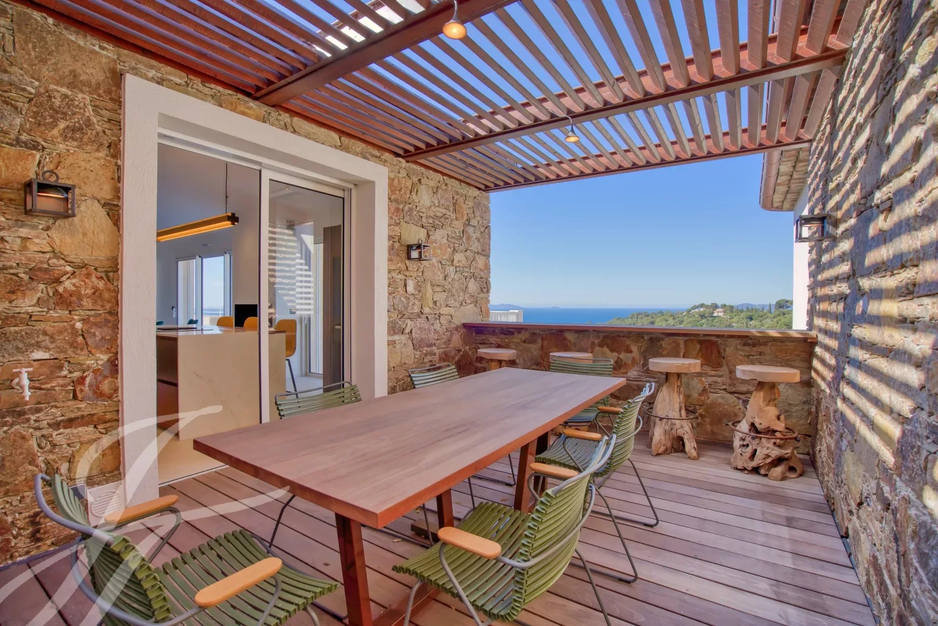 Il comprend un très beau séjour cathédrale spectaculaire et une cuisine plein Sud, une suite master avec accès à la terrasse et 2 chambres avec salles de bains. Une deuxième terrasse accessible directement depuis la cuisine permet de prolonger l'été en offrant un espace charmant ombragé d'une pergola bois avec murs en pierre naturelle.