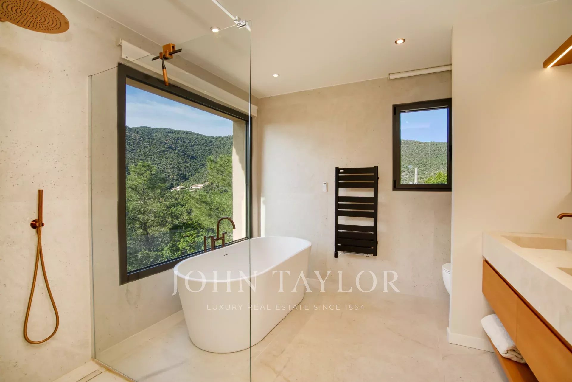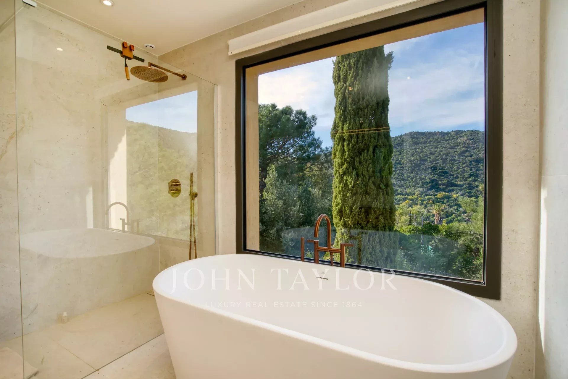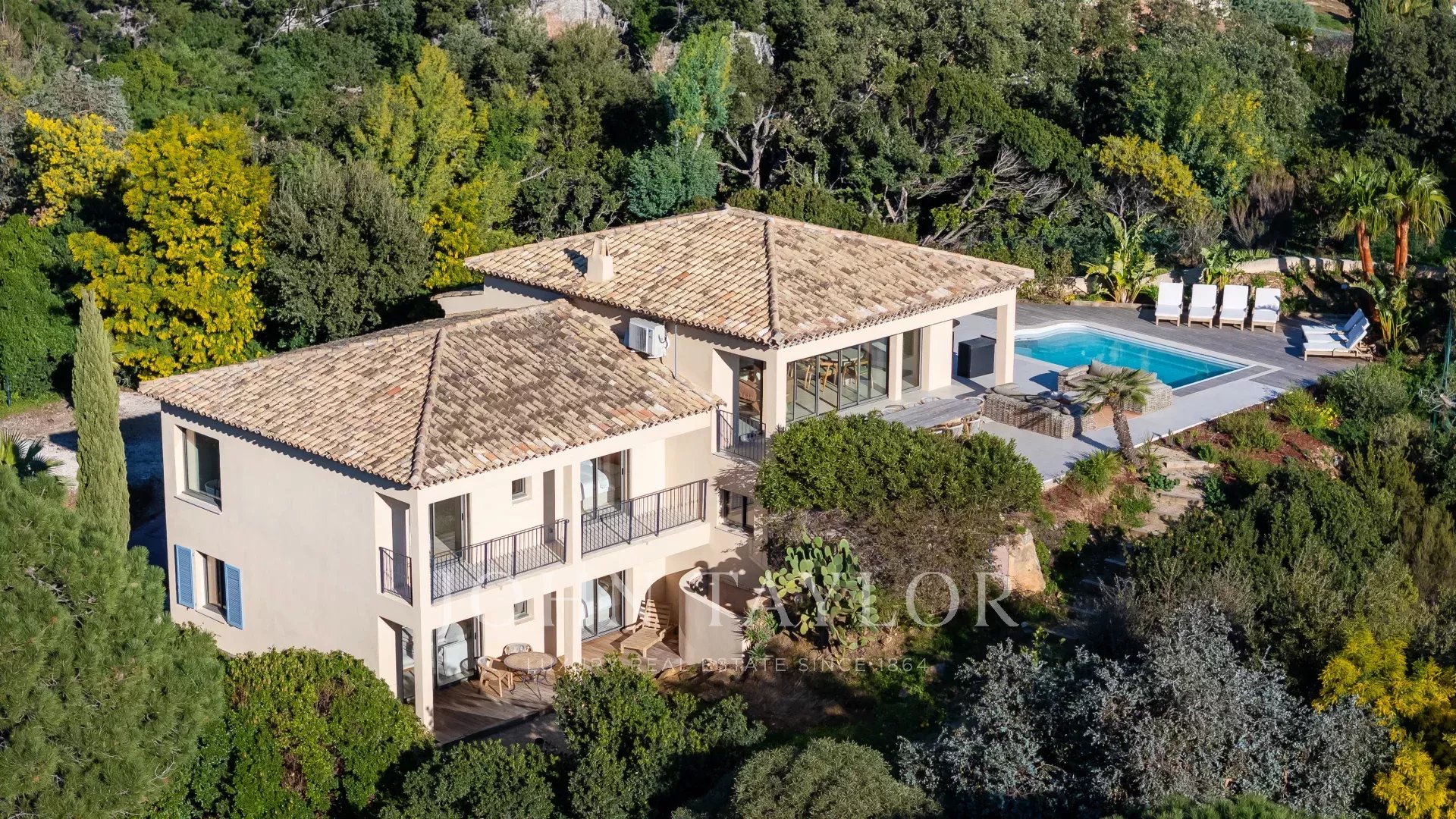 Nichée sur les hauteurs, elle profite d’une exposition plein sud, offrant une vue imprenable sur la mer, les îles d’Or et le Cap Nègre.