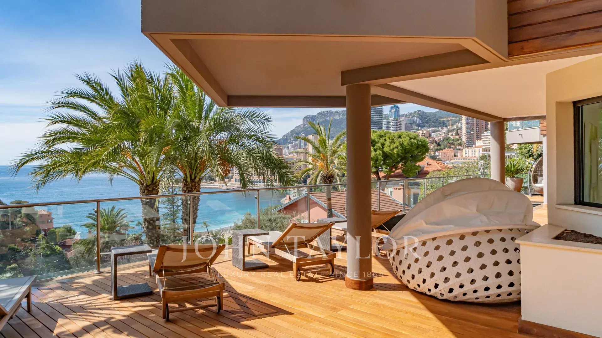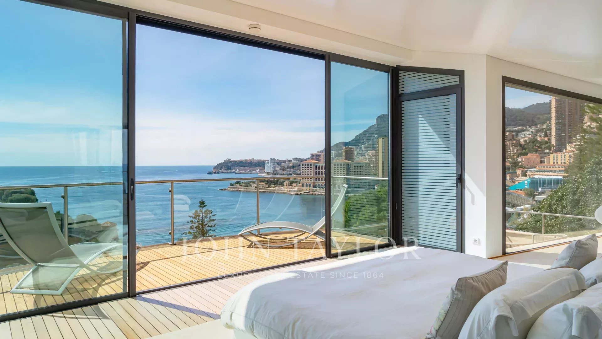 La surface habitable de 580 m² répartis sur 5 niveaux se compose de 5 chambres dont une chambre de Maître jouissant d'une vue panoramique sue la mer et Monaco.