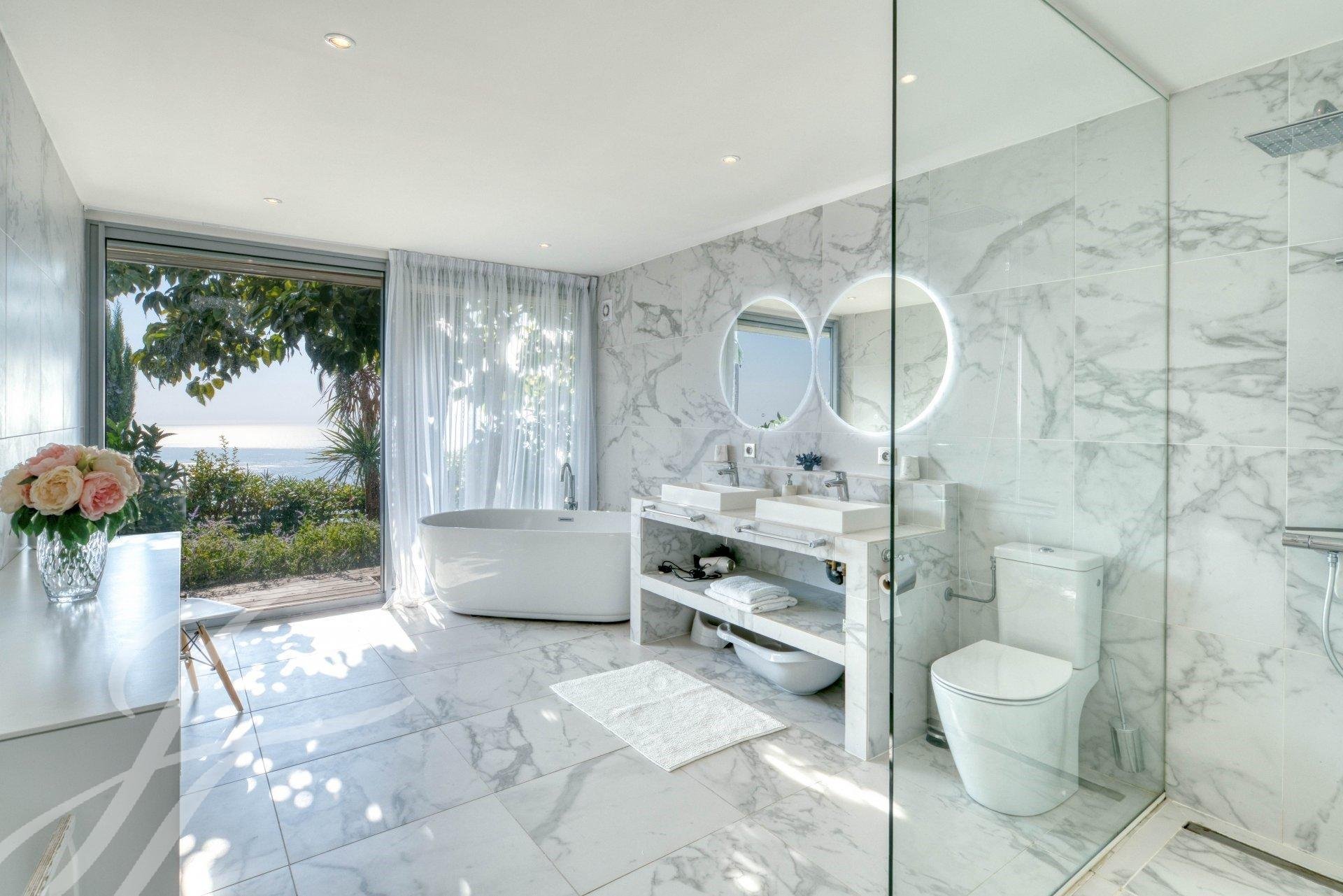 Au niveau supérieur se trouve une très belle chambre de Maître en suite vue mer, salle de bains et dressing, un espace bureau ouvrant sur une grande terrasse avec une incroyable vue mer.