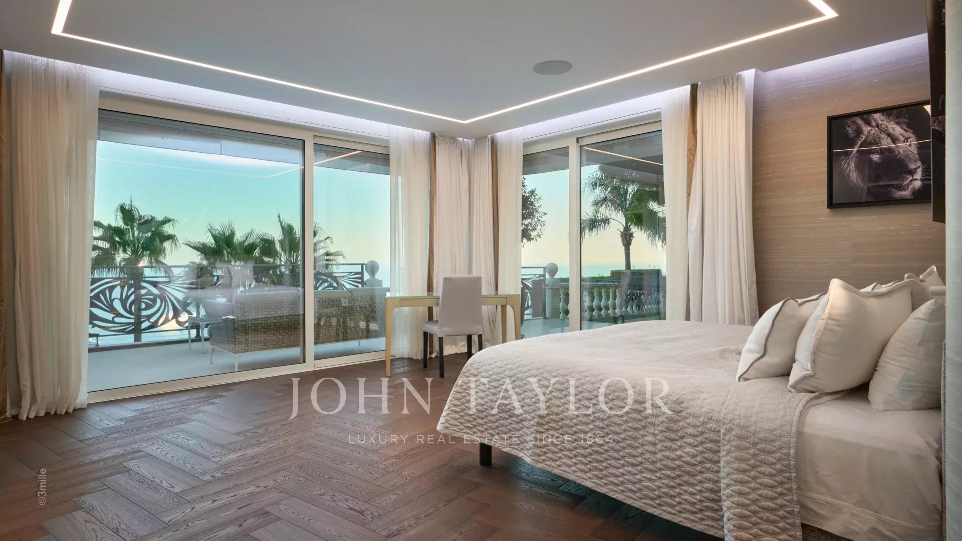 Les quatre chambres principales offrent une vue panoramique sur la mer Méditerranée, créant une atmosphère paisible et intime.