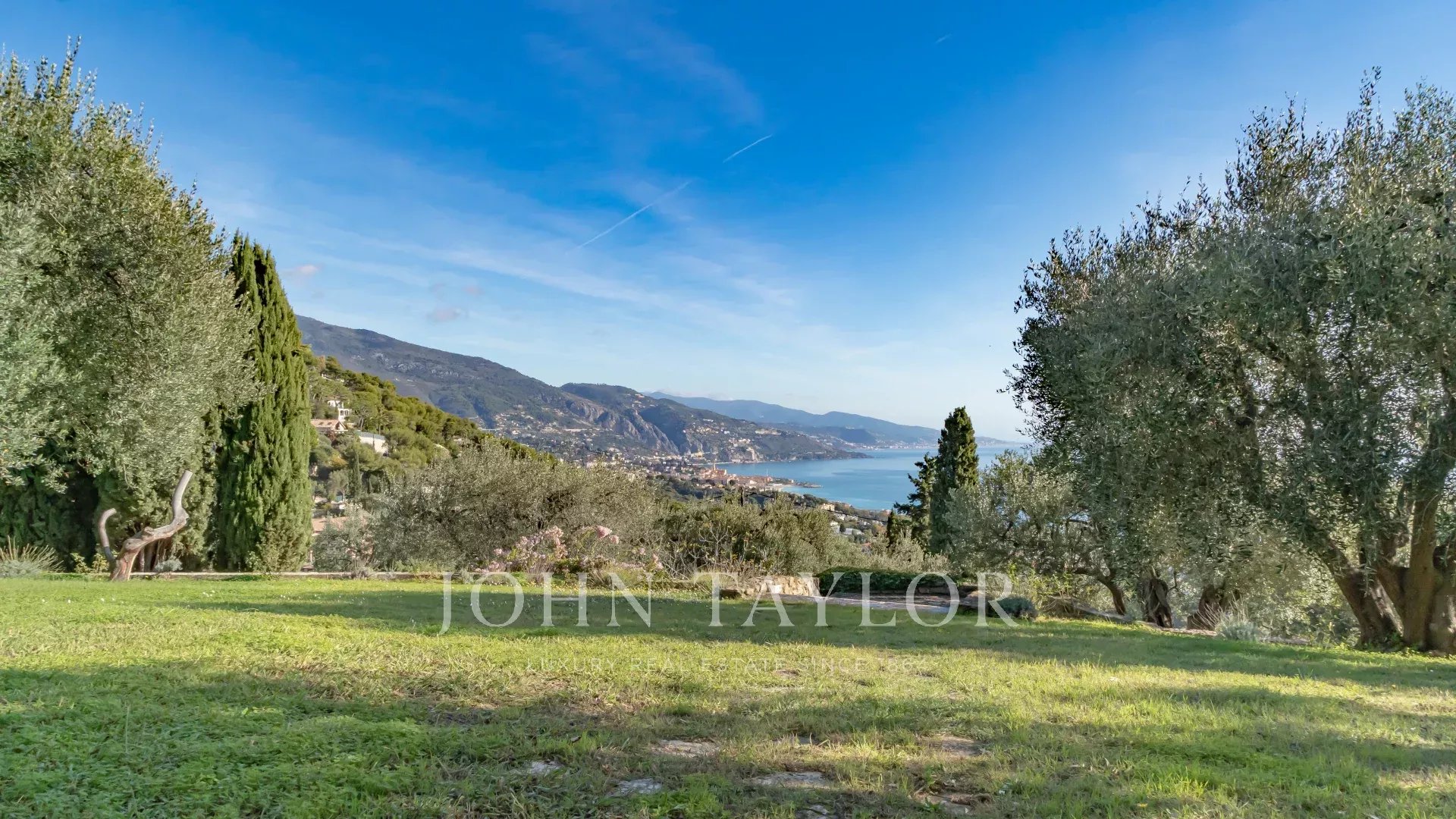 Cette propriété au calme absolue offre une vue imprenable sur la baie de Menton, la côte italienne, le Cap Martin et Monaco.