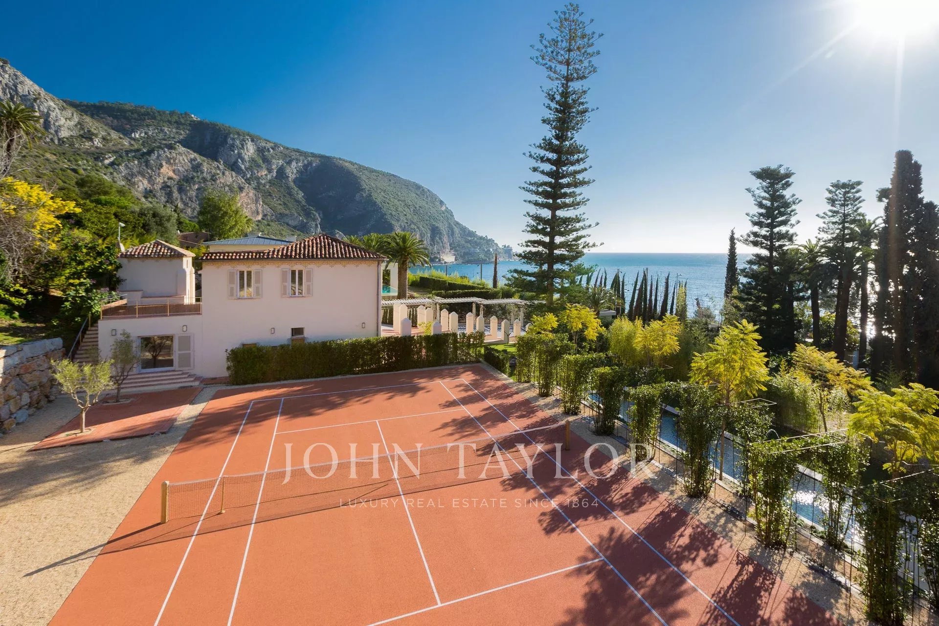 Sur un terrain d'environ 6000 m², elle se compose d'une villa principale, d'un pavillon d'invités, d'une maison de gardien, d'un appartement pour le personnel. Deux piscines, court de tennis et garage pour 8 - 10 voitures ainsi qu'un parking couvert extérieur.