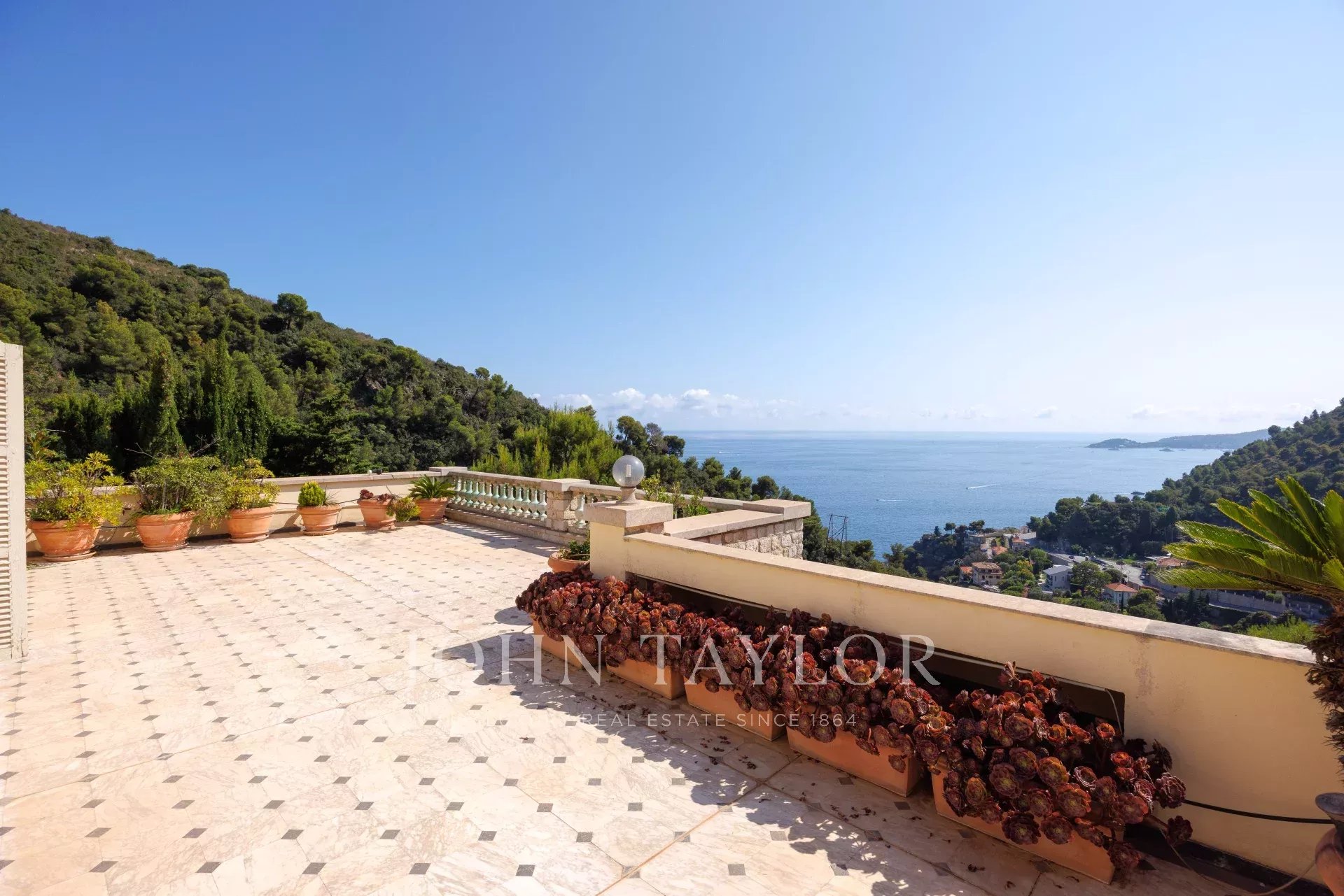 Dès l'entrée, vous serez immédiatement plongés dans l'histoire, entourés de pierres apparentes et de voûtes qui donnent à la villa son charme authentique. Ce caractère se prolonge dans le vaste séjour et les chambres. Mais, ce que vous apprécierez par-dessus tout dans cette villa d'environ de 460 m², c'est la vue imprenable sur la mer Méditerranée, avec Saint-Jean-Cap-Ferrat en arrière-plan.