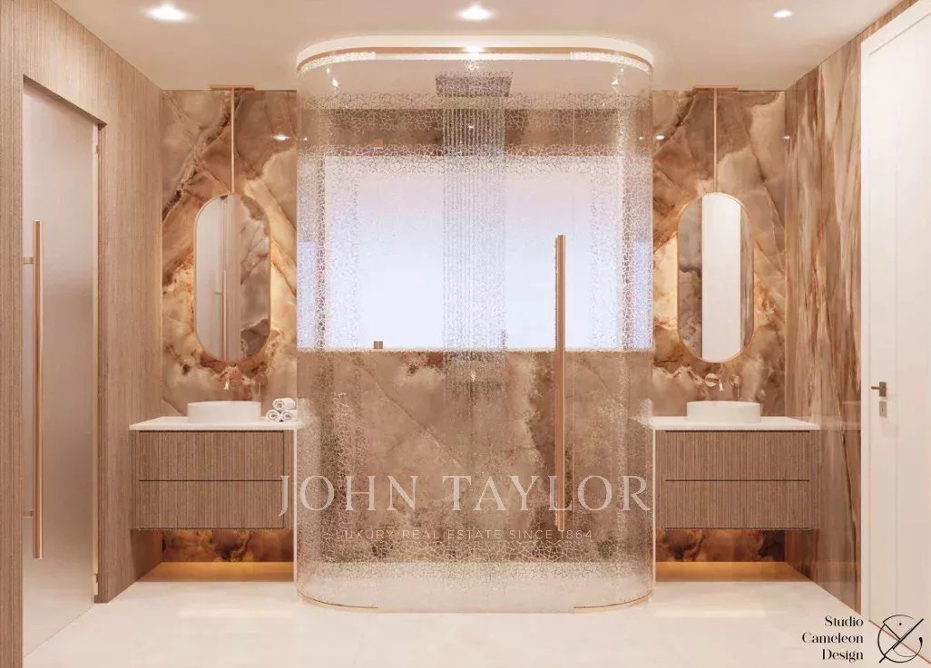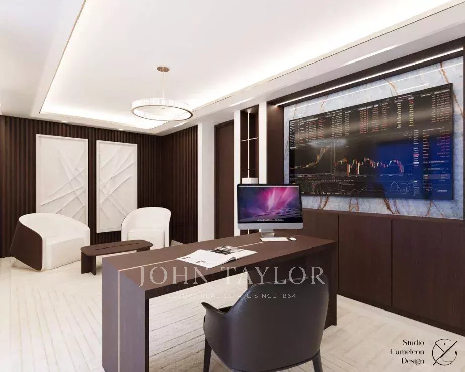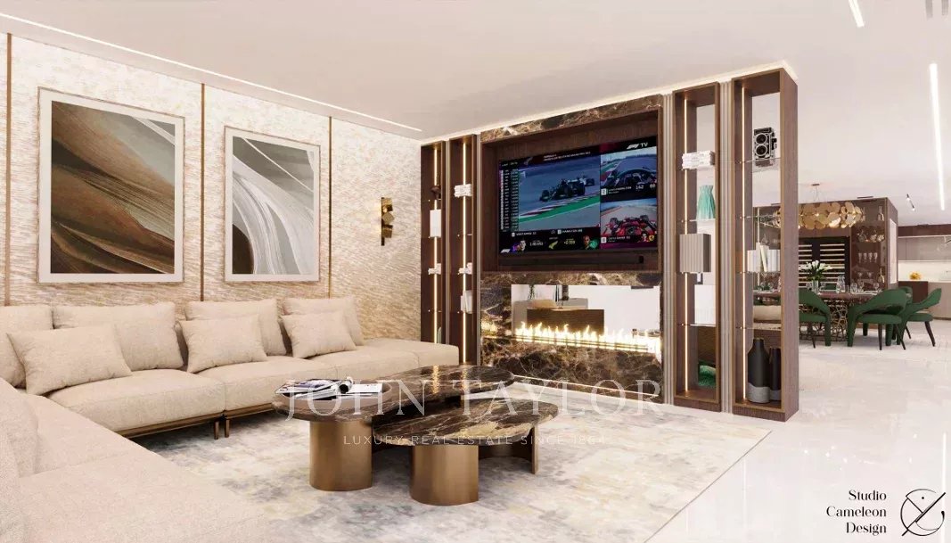 La villa, édifiée sur quatre niveaux, propose de larges lieux de vie, quatre chambres, ainsi que des prestations prévues telles qu’une piscine intérieure, un espace bien-être avec spa ainsi qu’un cinéma.