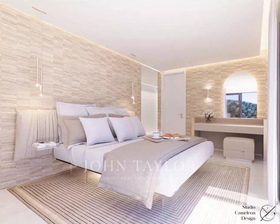 Les travaux de construction et d’aménagements extérieurs sont entièrement achevés, incluant un jardin paysager, de vastes terrasses et des clôtures soignées, s’intégrant harmonieusement dans l’environnement méditerranéen et offrant une vue panoramique dégagée sur la mer.