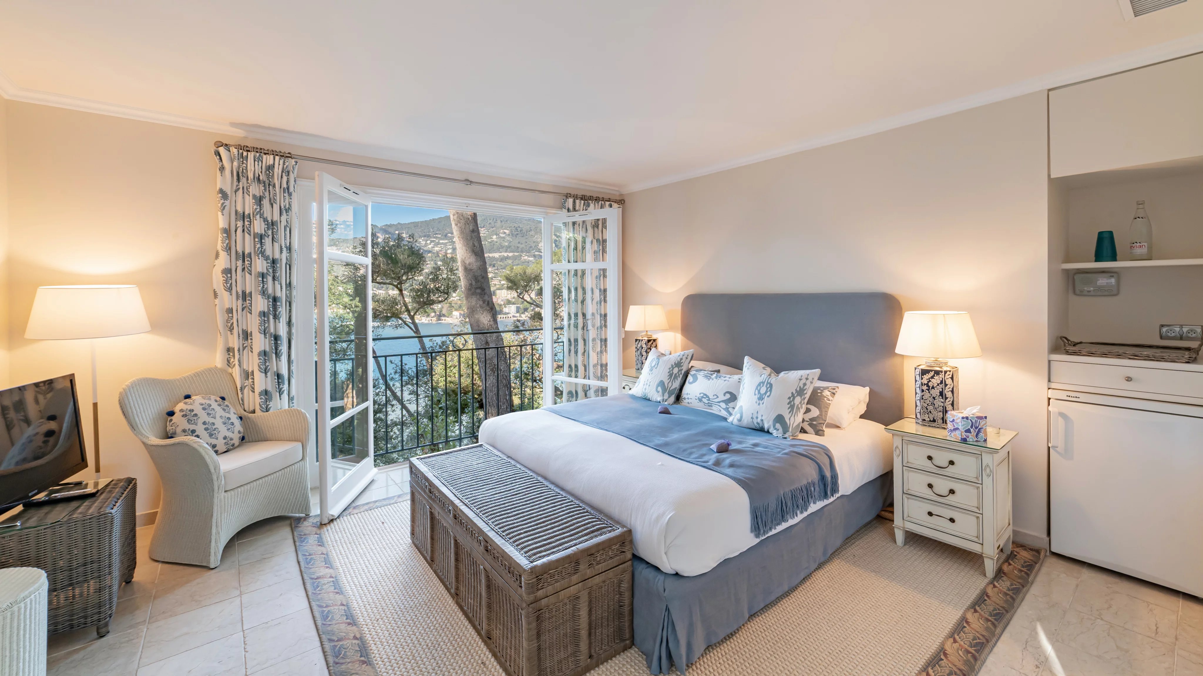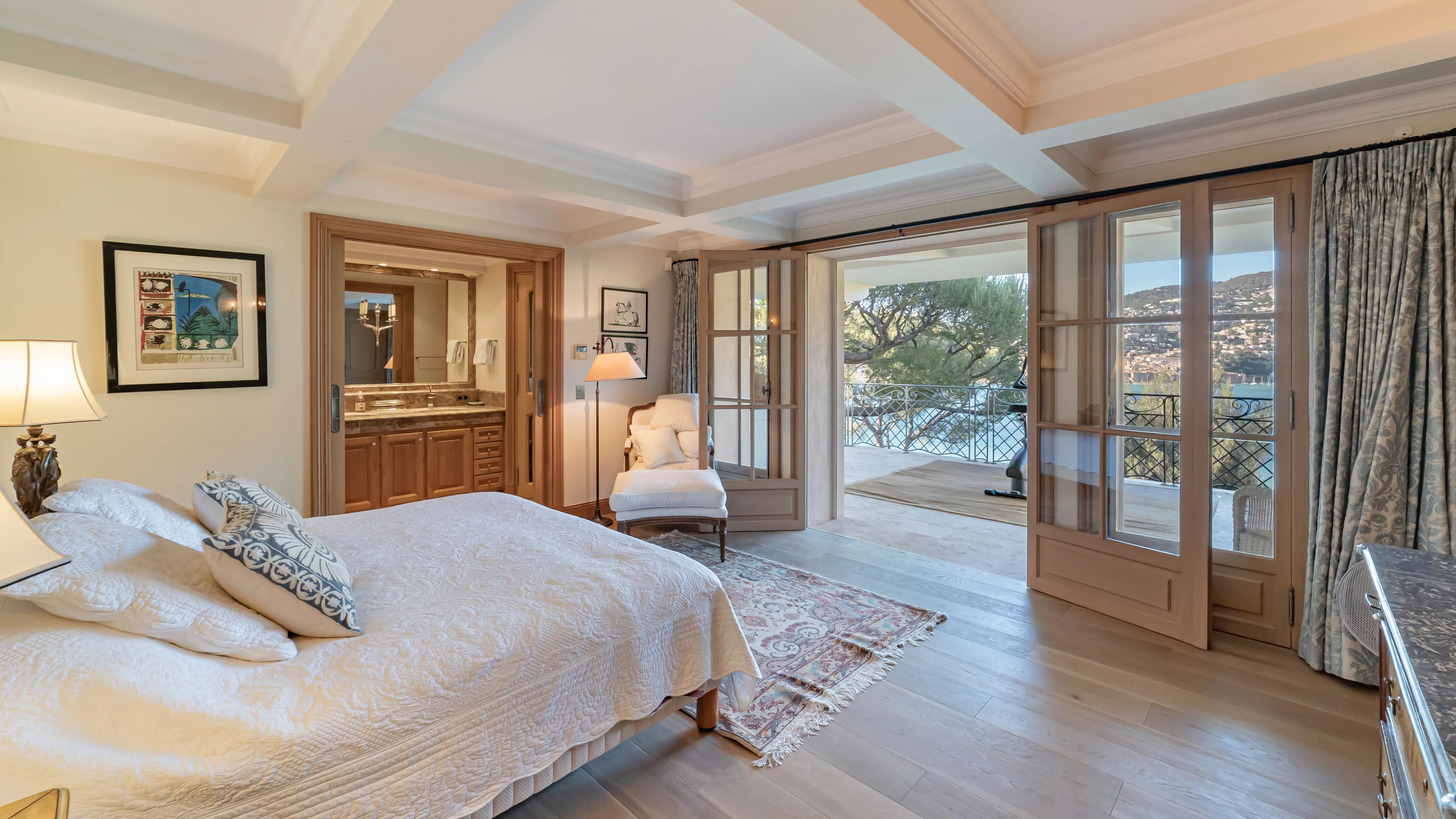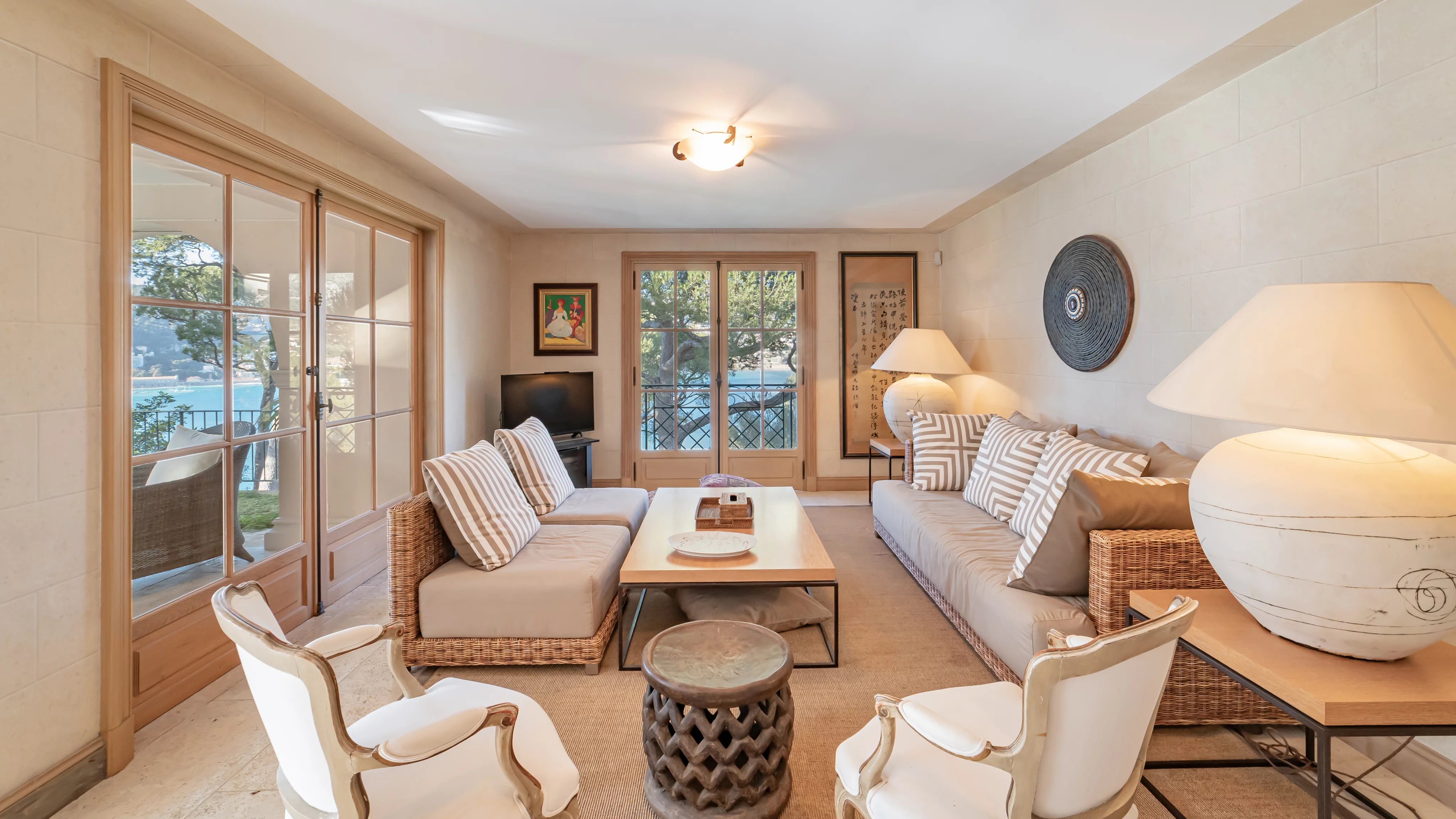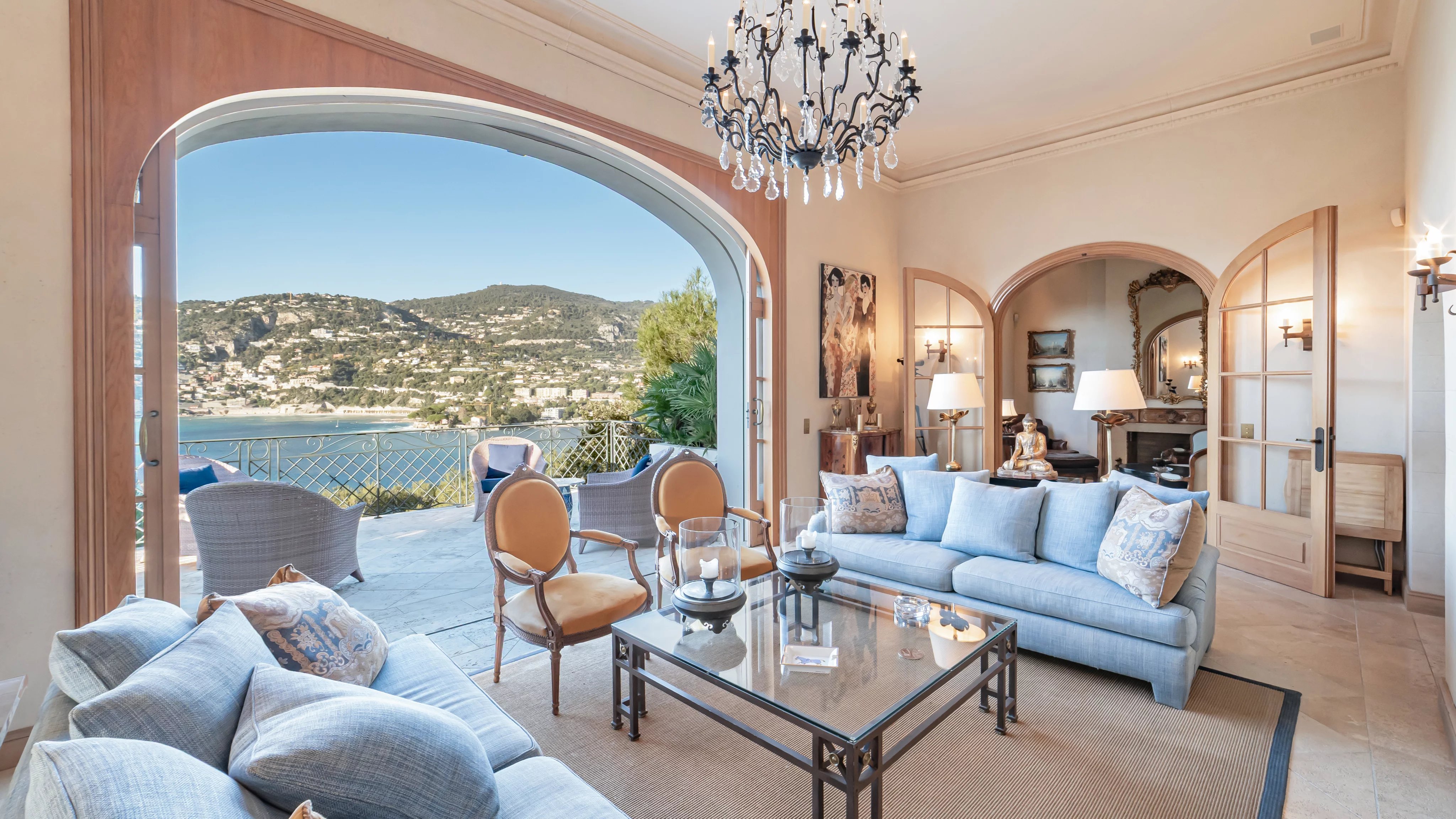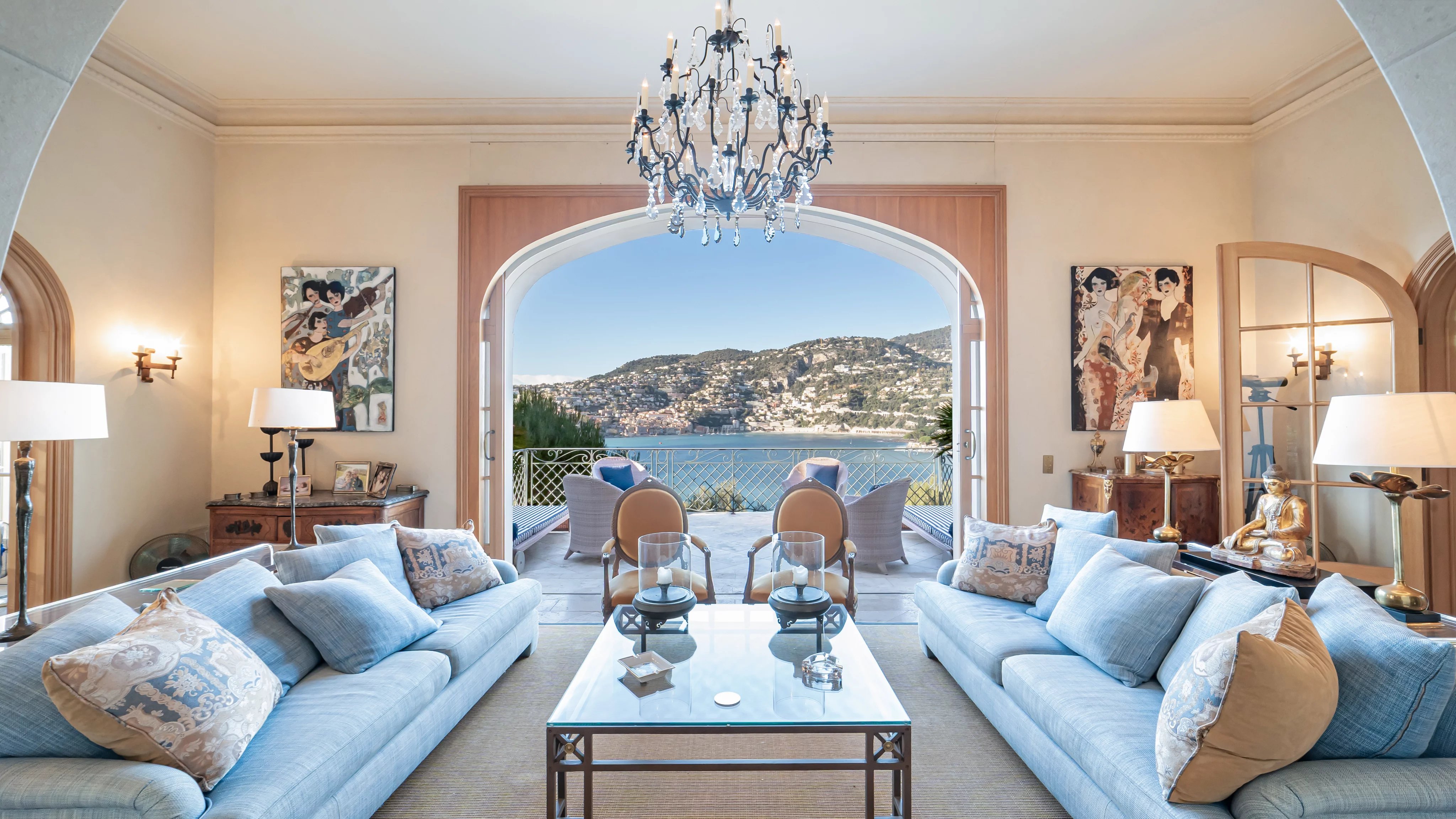Organisée sur deux niveaux, l'entrée de la villa mène vers un salon double avec terrasse face à la vieille ville de Villefranche. Cet étage se complète par une salle à manger formelle, une grande cuisine et une chambre en suite.