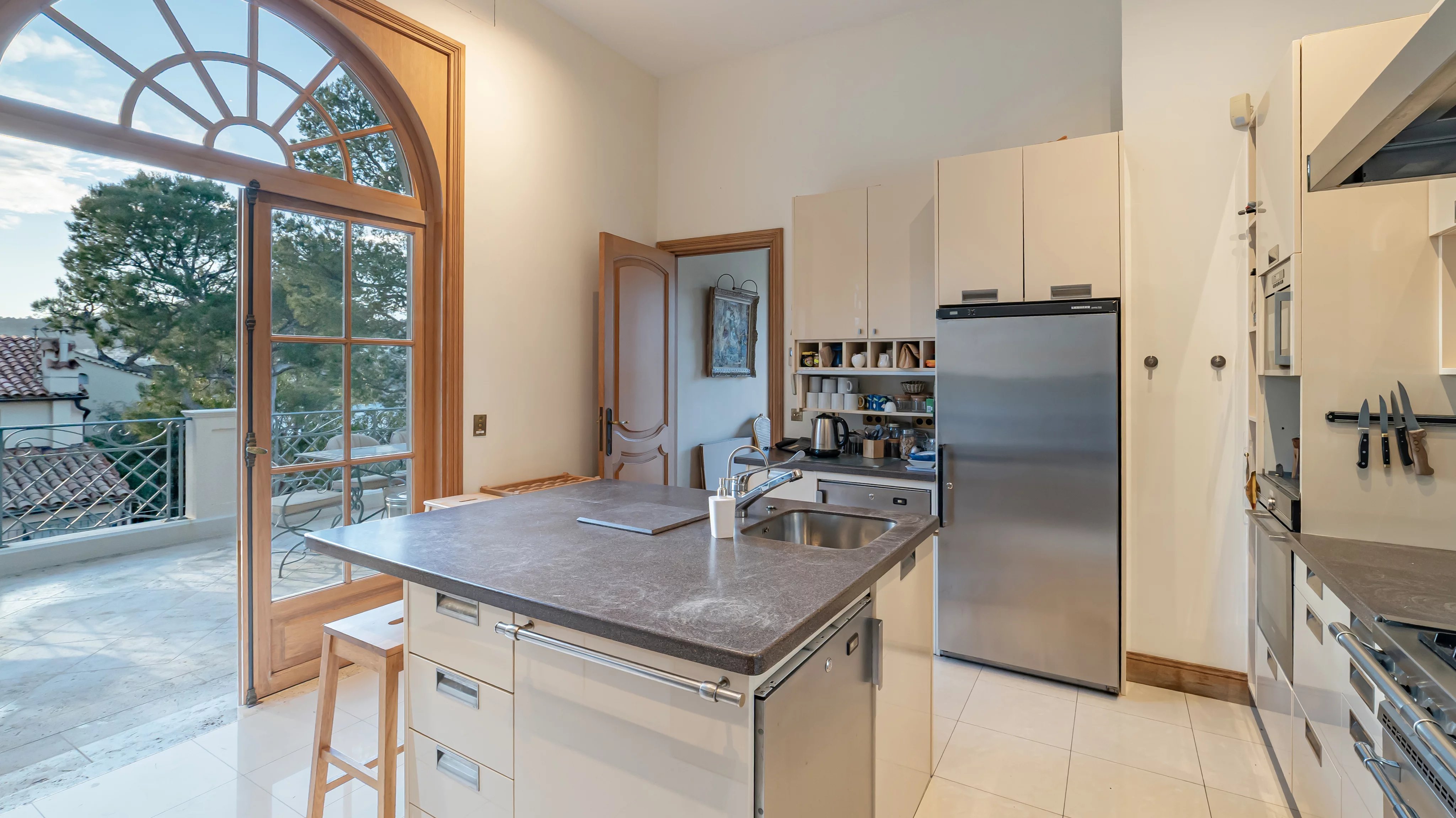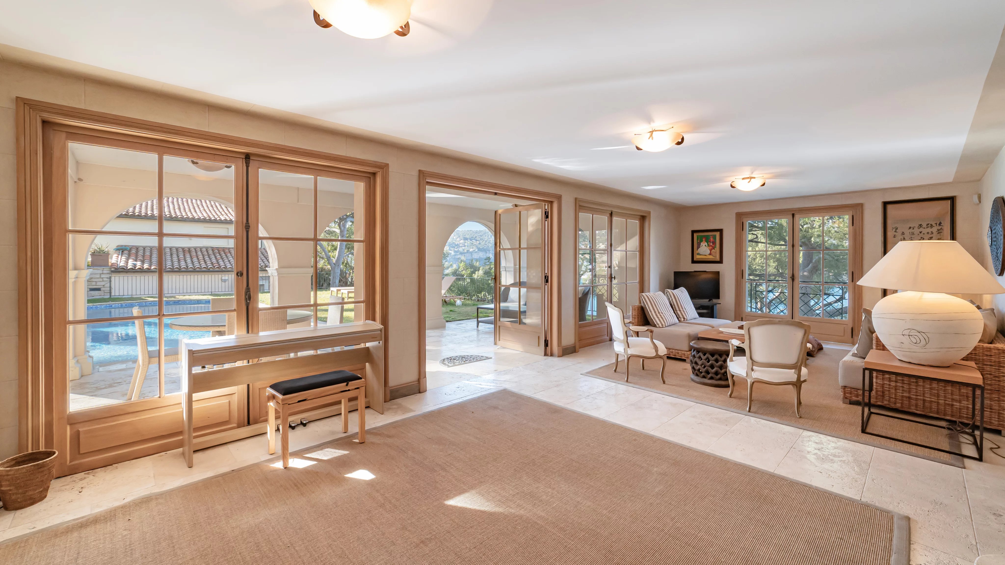 Au rez-de-jardin, l'espace se distribue avec un grand salon d’été avec cuisine ouvre sur une vaste terrasse et la piscine, trois chambres avec salles de bains / d’eau et une buanderie.