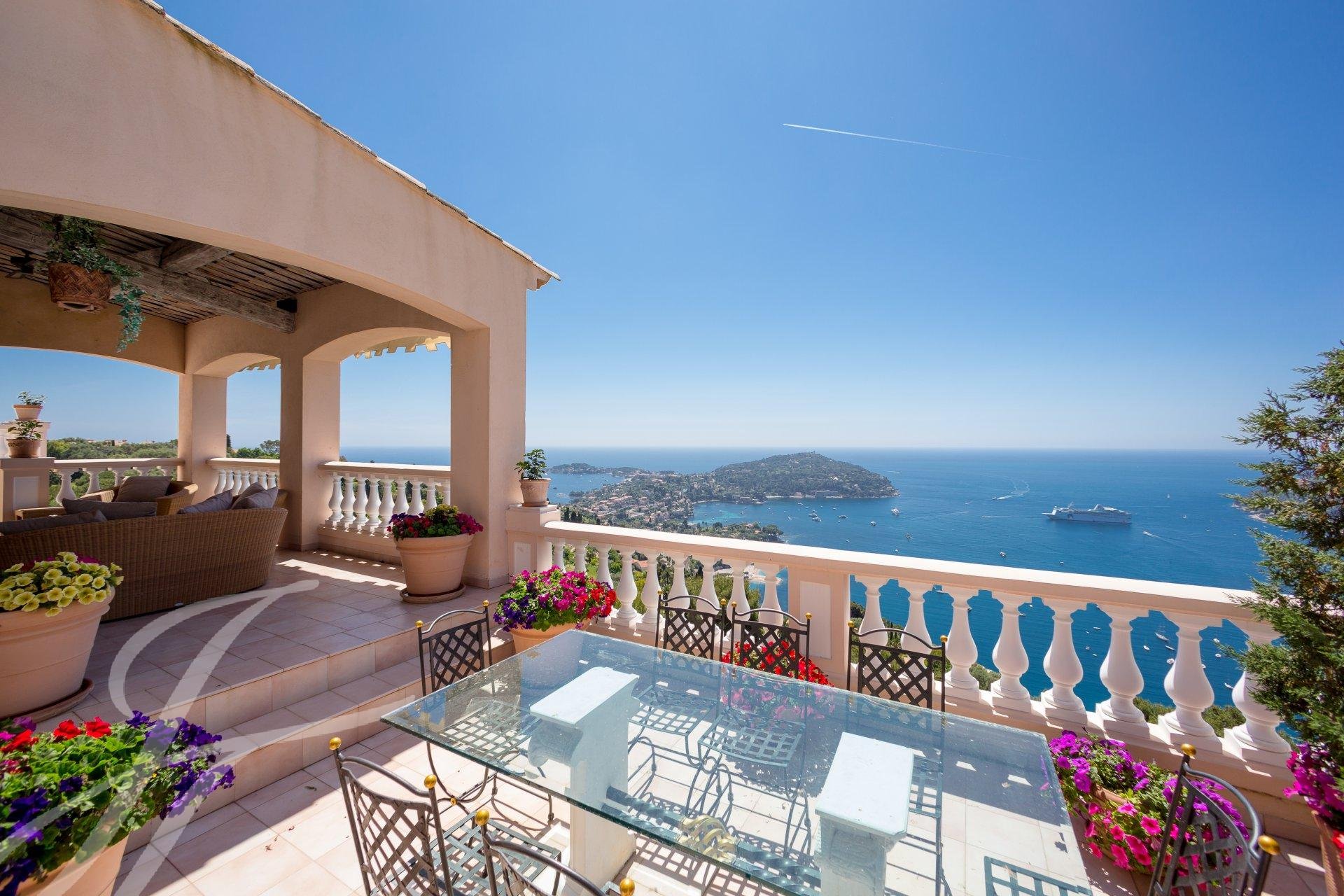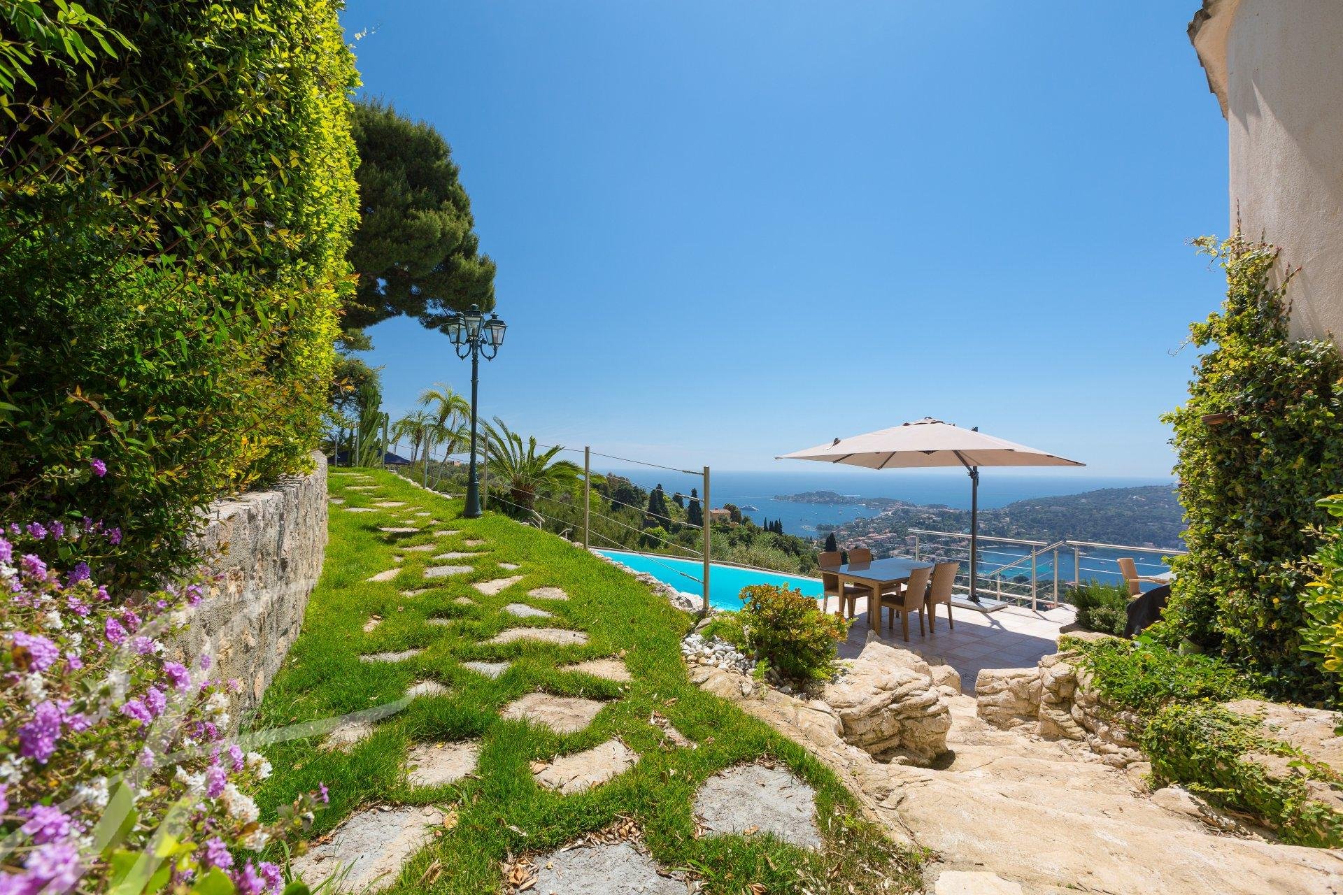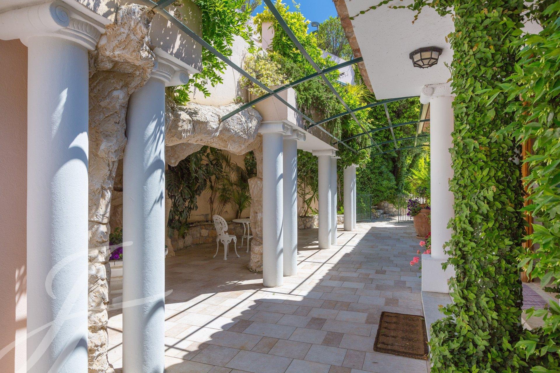 Au cœur d’un domaine privé avec accès sécurisé, cette jolie villa de style néo-provençal offre une vue panoramique sur le Cap Ferrat, la baie de Villefranche et les jardins de la célèbre Villa Leopolda.