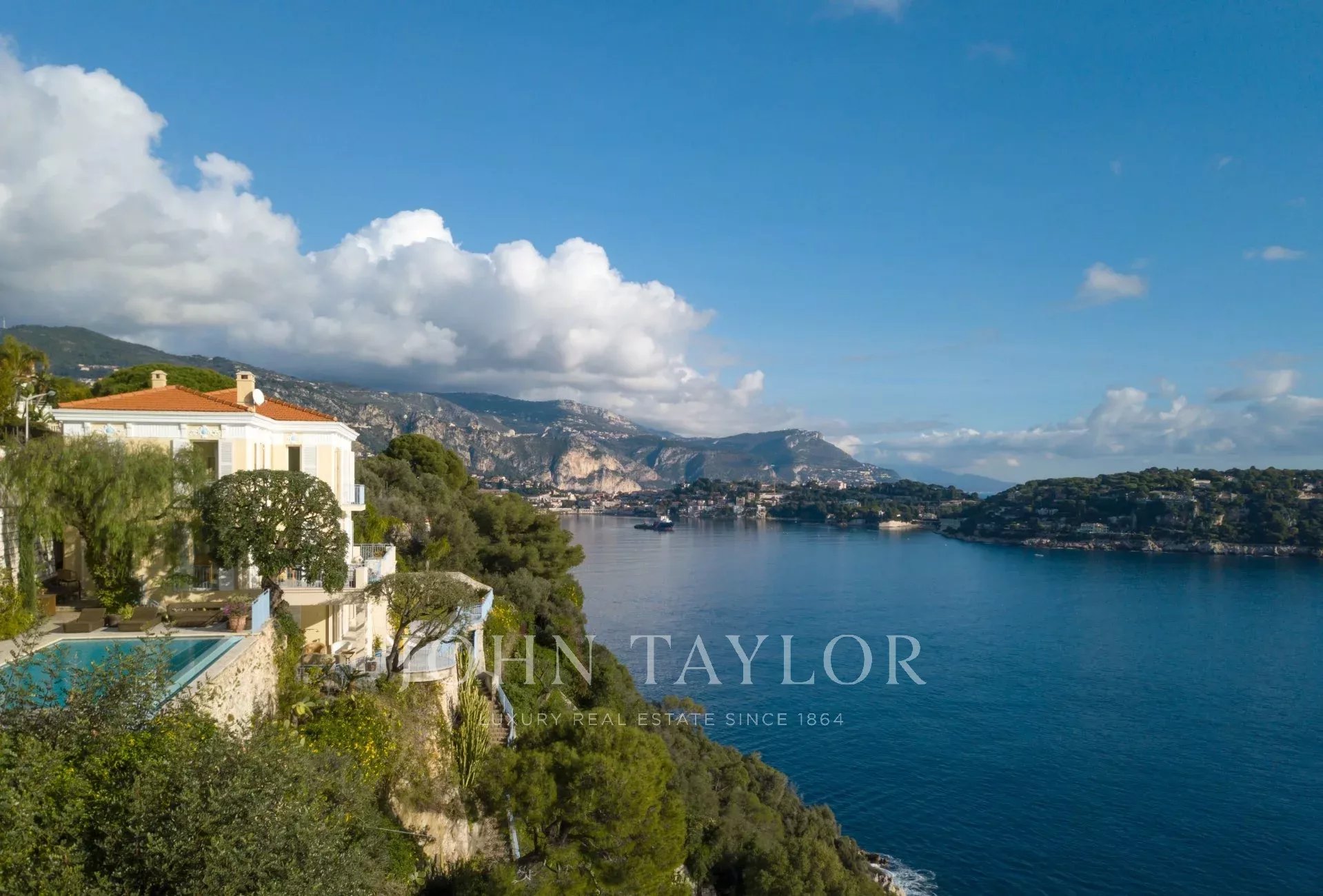 Cette propriété exceptionnelle de style “Belle Epoque” pieds dans l’eau offre une vue à couper le souffle s’étendant des montagnes jusqu’au phare de St Jean Cap Ferrat et sur la rade de Villefranche.