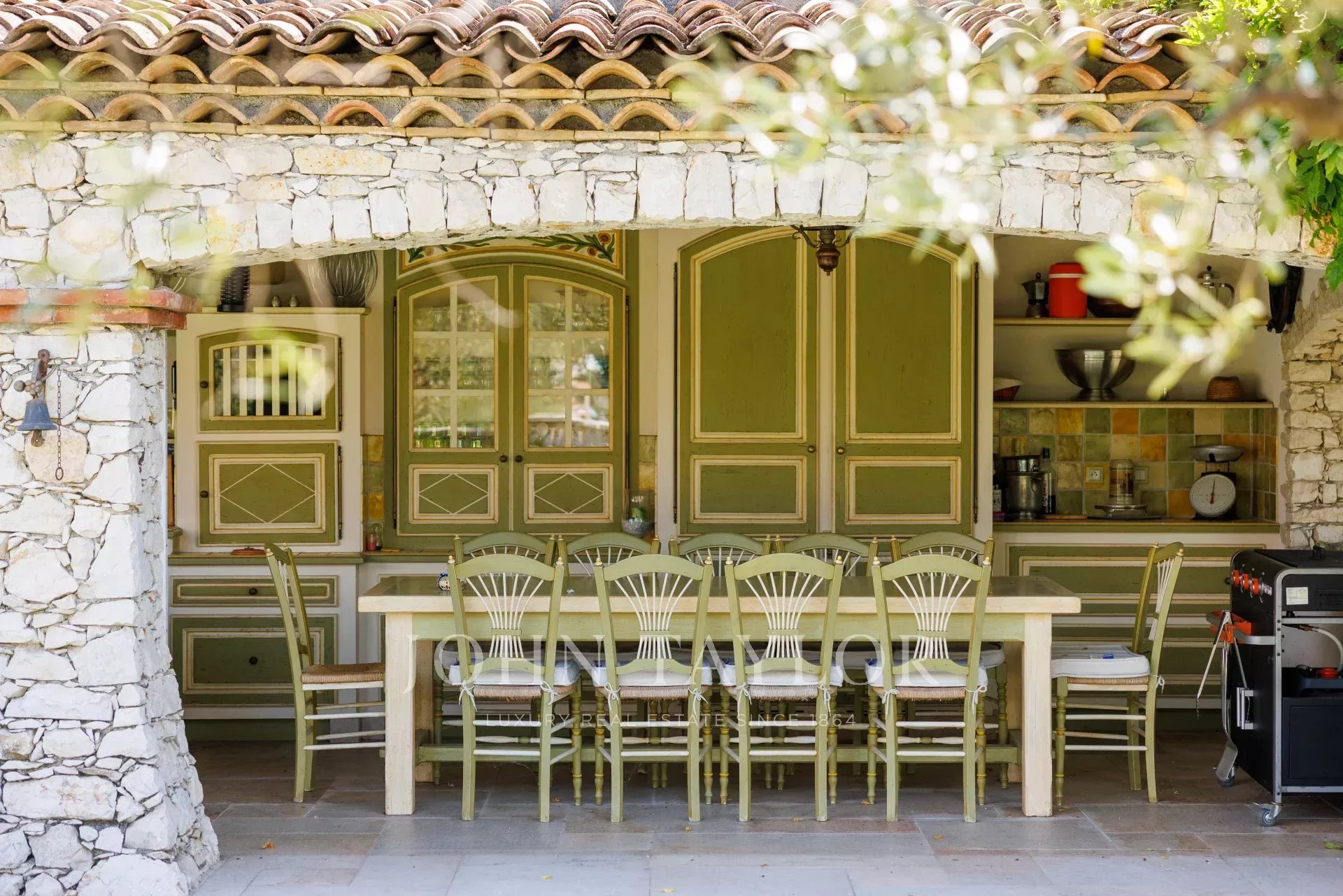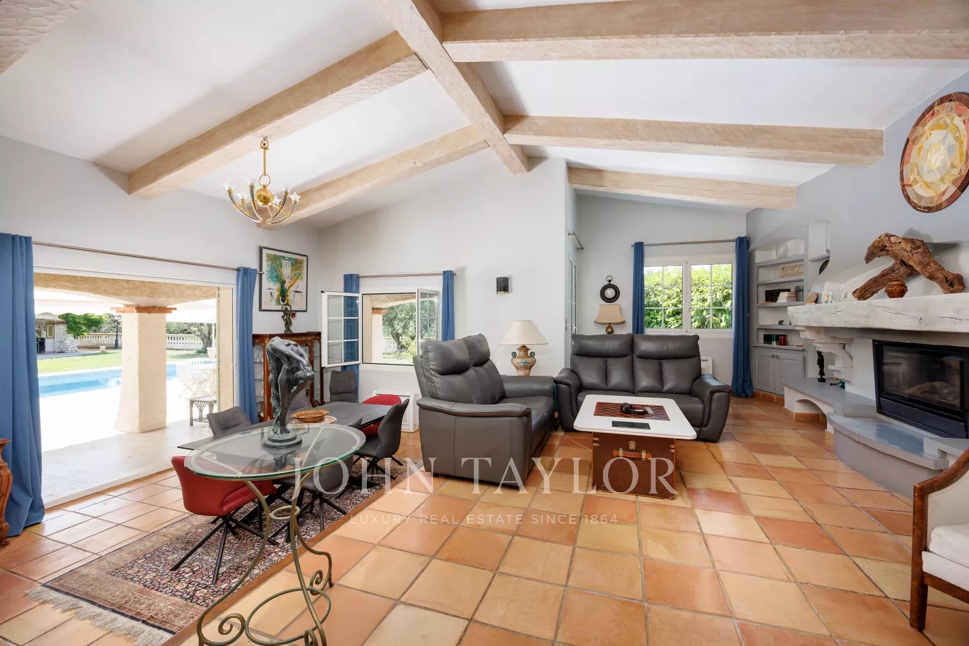 Charmante propriété provençale d’environ 246 m², nichée au cœur d’un magnifique jardin paysagé de 2 562 m². Elle offre un vaste salon, 4 chambres, un appartement indépendant de 3 pièces, ainsi qu’une belle piscine au sel avec pool house en pierre, le tout complété par un double garage.