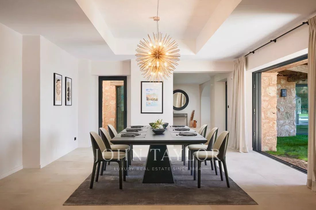La propriété offre une superficie totale d'environ 1170 m2 et se compose d'une vaste réception en 3 parties comprenant un séjour avec cheminée, une salle à manger, un autre grand séjour en angle avec immenses baies vitrées ouvrant sur le jardin, une superbe cuisine luxueusement équipée avec îlot central, une arrière cuisine avec chambre froide, 5 chambres en suite dans la villa dont une grande master bedroom au rez-de-chaussée, une 6e suite indépendante pour les invités.