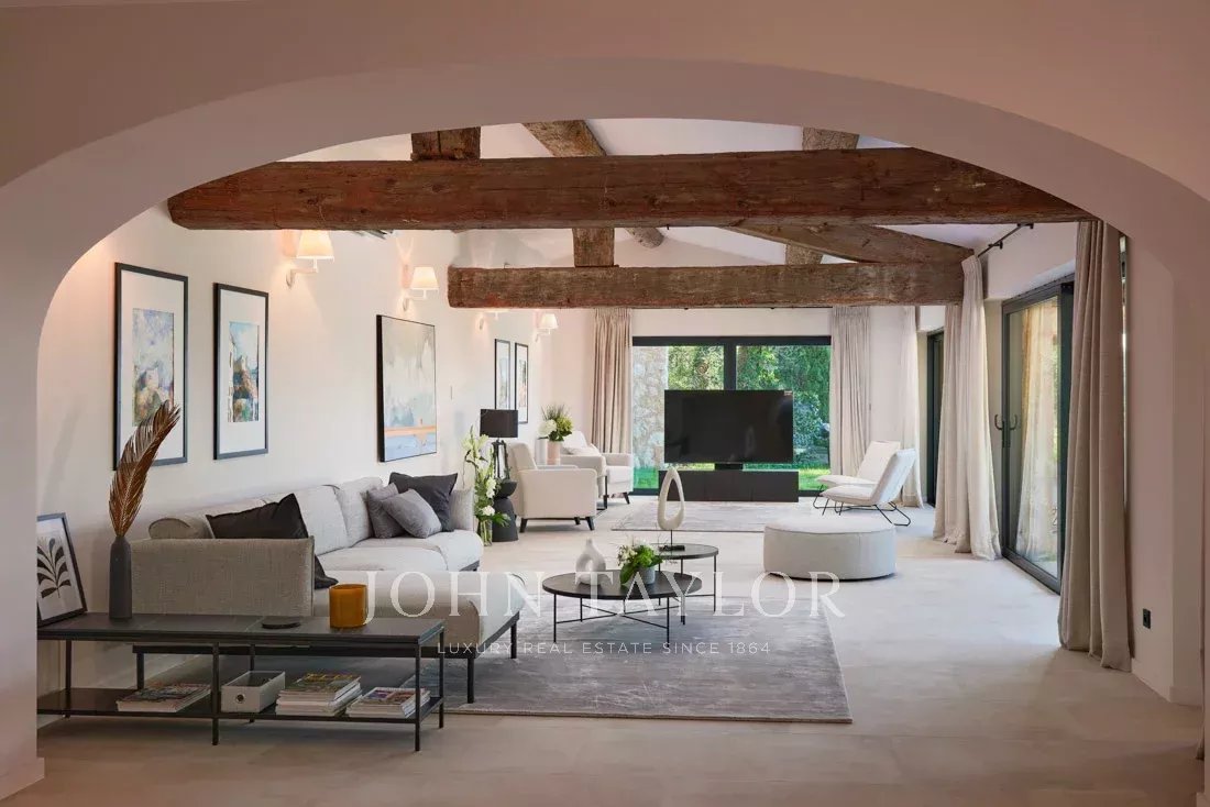 Elégance et charme sont les maître-mots pour cette propriété d'exception aux parfums de Provence, située à proximité du village de St Paul de Vence, au coeur d'un domaine privé et discret, en position dominante et jouissant d'une vue panoramique jusqu'à la mer.