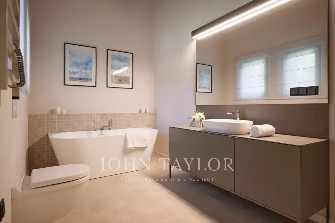 Au niveau inférieur, un bureau, une salle de sport, un spa avec salle de massage, de nombreuses annexes dont des caves, une buanderie, de nombreuses autres pièces offrant de multiples possibilités.
