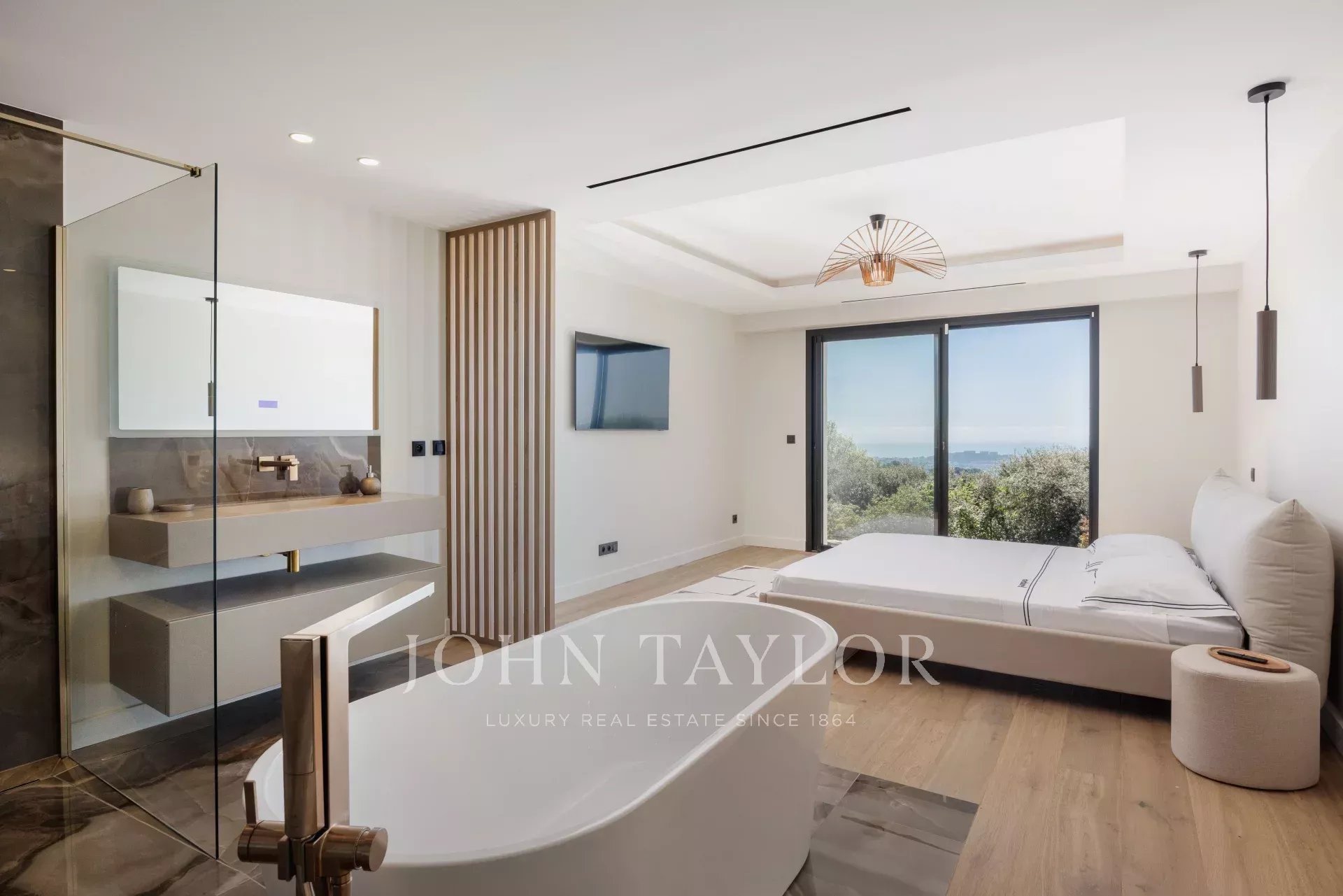 À l’étage, on retrouve quatre autres suites, dont une seconde suite parentale. Toutes les chambres offrent une vue mer et disposent de terrasses, de dressings/placards et de salles d’eau privatives, garantissant confort et intimité à chacun.