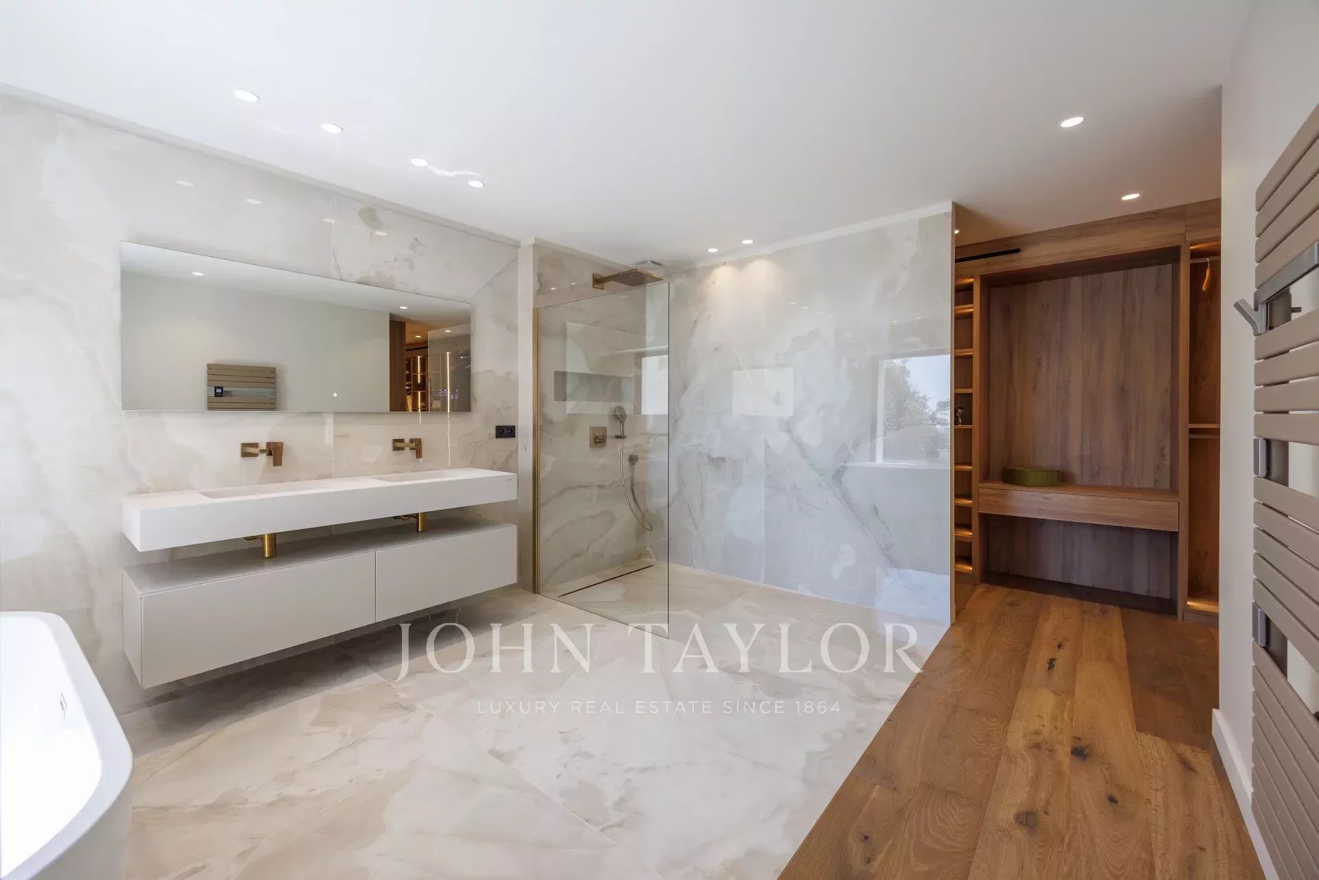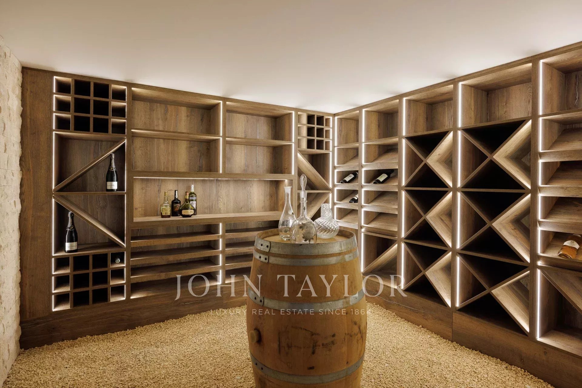 En rez-de-jardin, vous trouverez une salle de sport avec salle de douche et sauna, une splendide cave à vin, ainsi qu’un accès direct à la piscine.