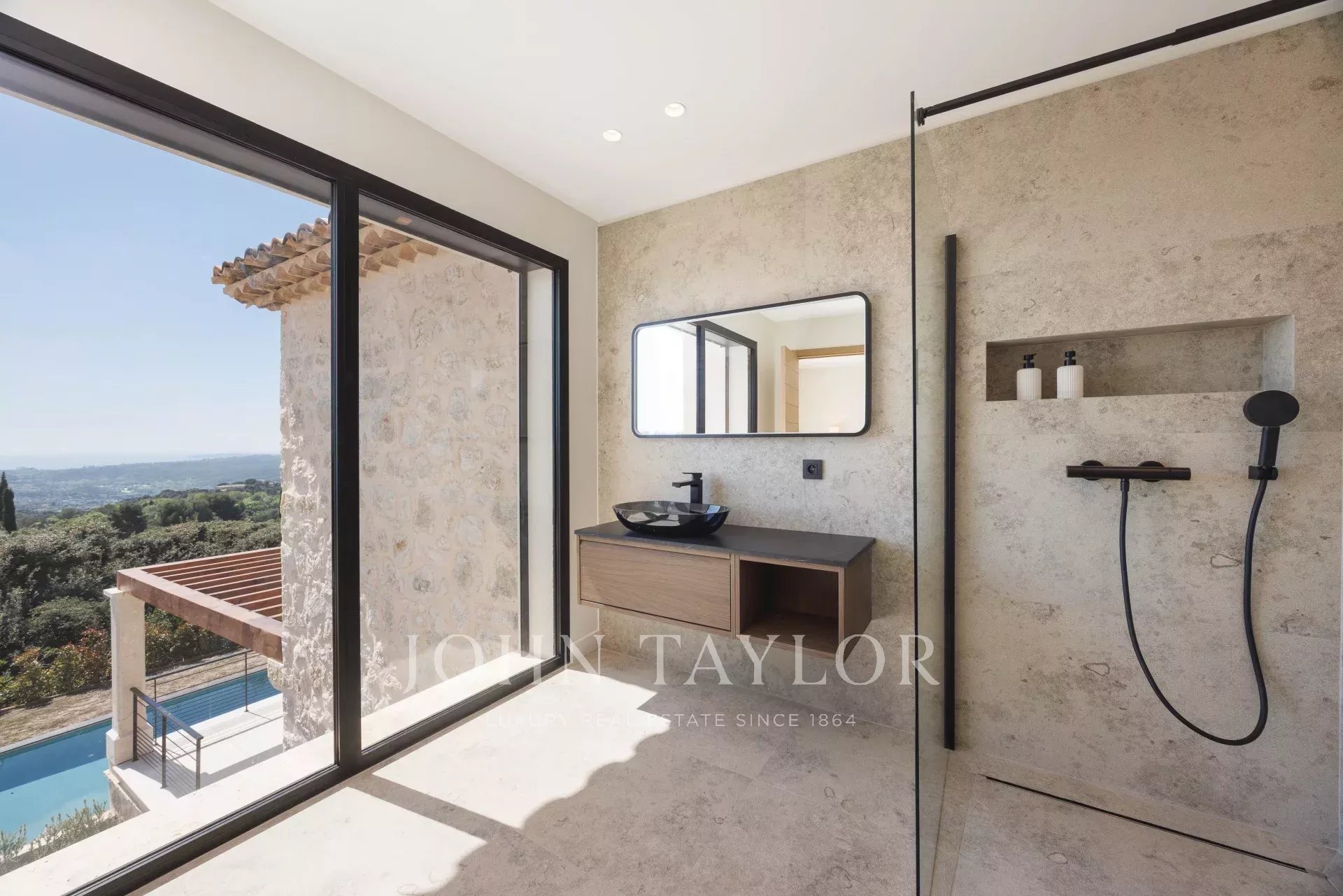 Parmi les prestations : domotique, climatisation gainable, pompe à chaleur, allée pavée, garage double, parking extérieur et bien sûr, une vue exceptionnelle sur la mer et le village de Saint-Paul.