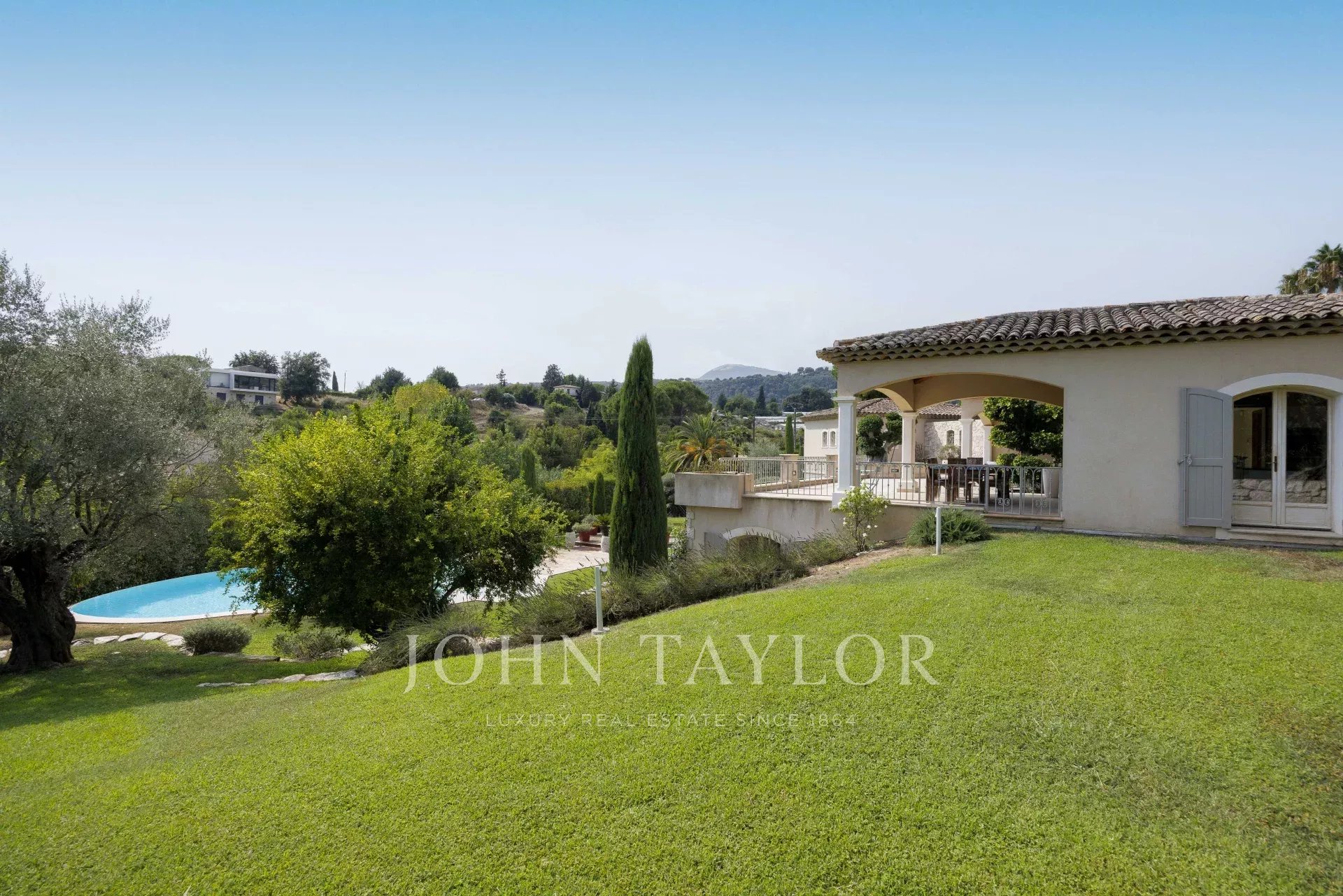 Située à quelques enjambées du village de Saint-Paul de Vence, cette propriété cossue d'environ 285 m² + garage 7 voitures bénéficie d'un environnement calme et résidentiel et d'un jardin paysager de 2 600 m² avec piscine chauffée et à débordement.