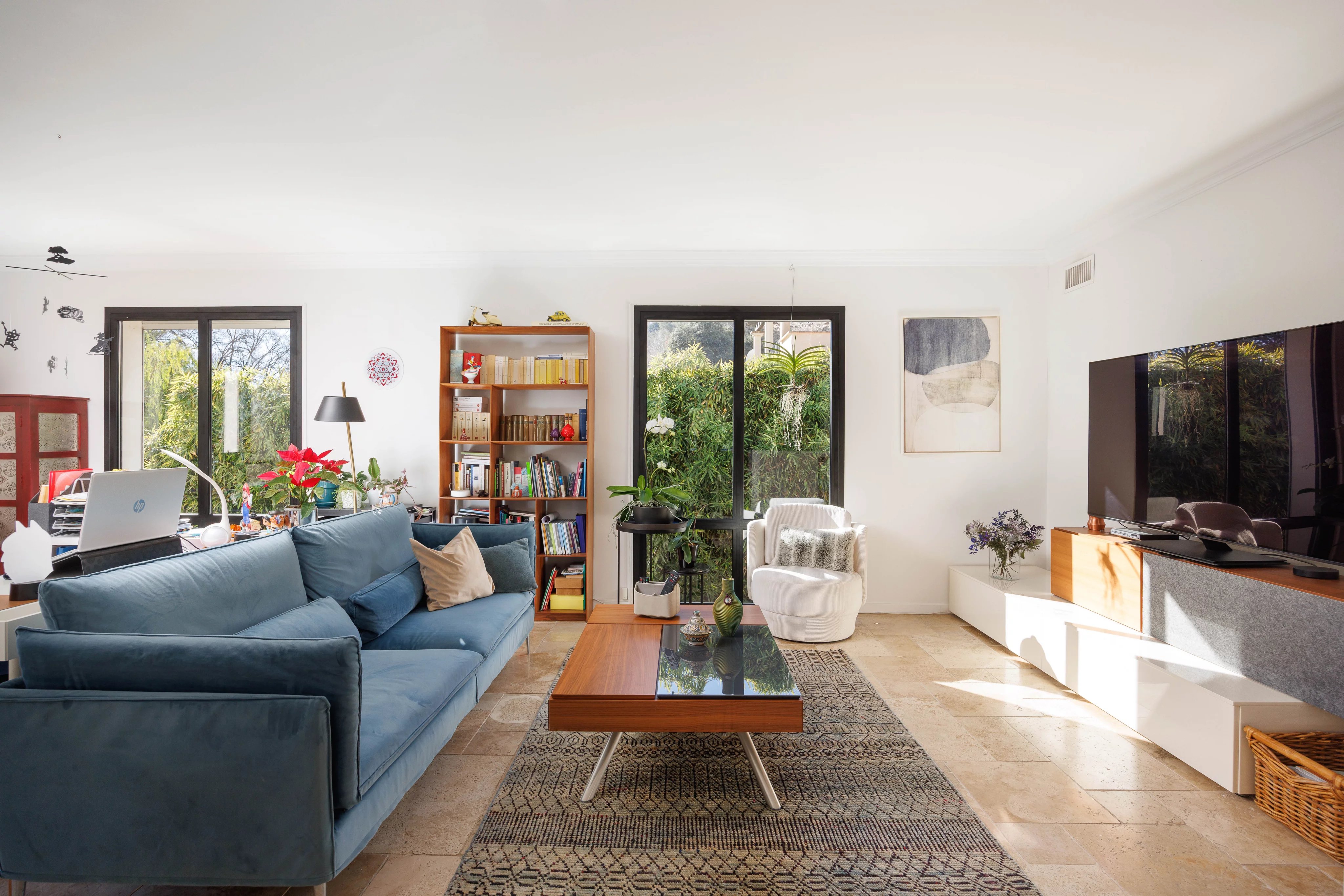 En rez-de-jardin, accessible de manière indépendante ou directement depuis le séjour, se trouve un appartement d’environ 70 m², parfaitement équipé et lumineux.