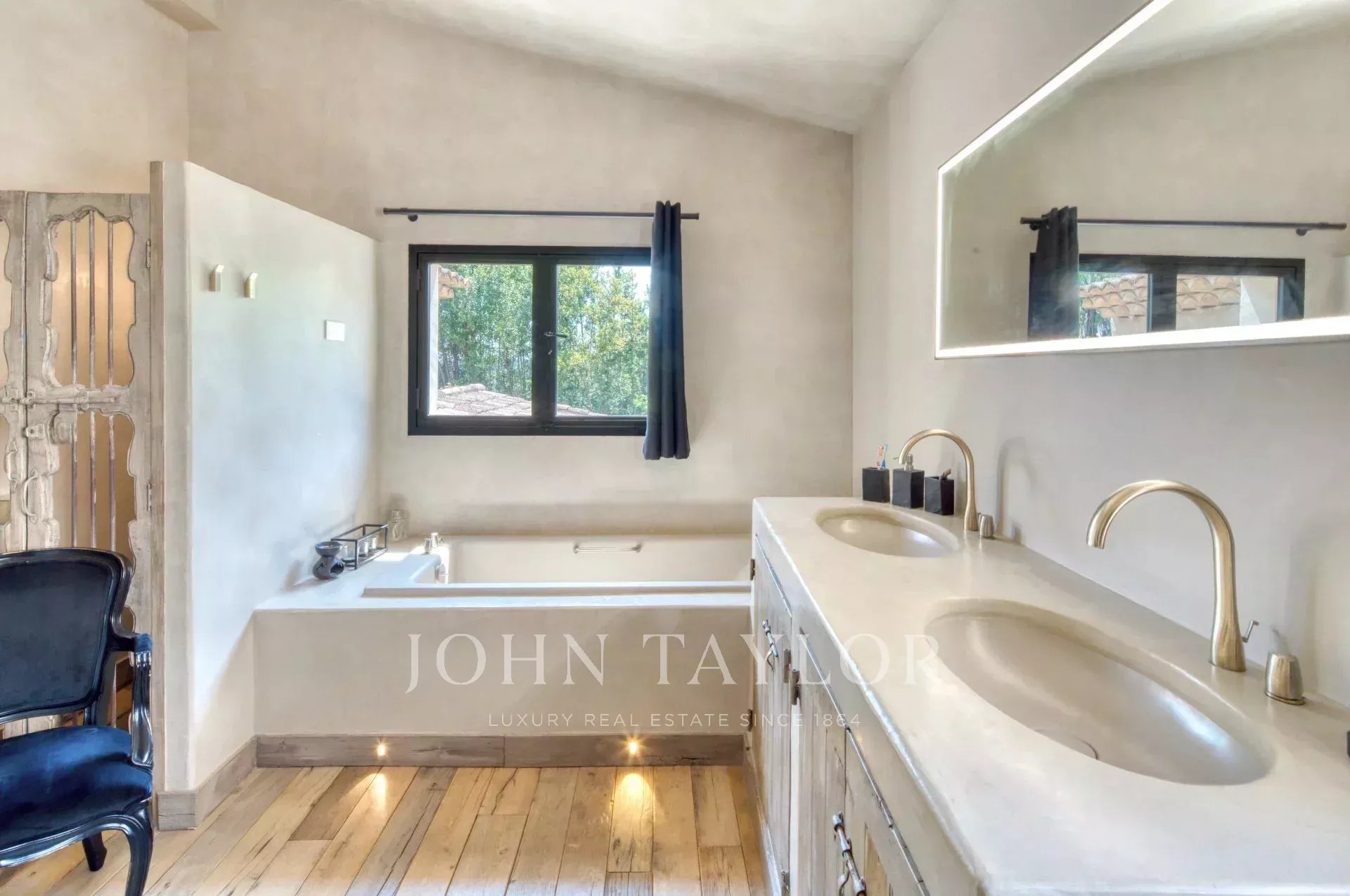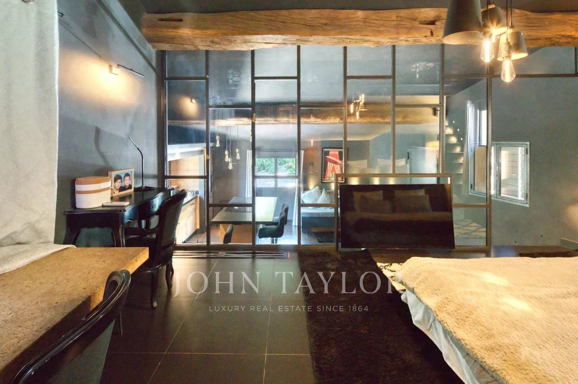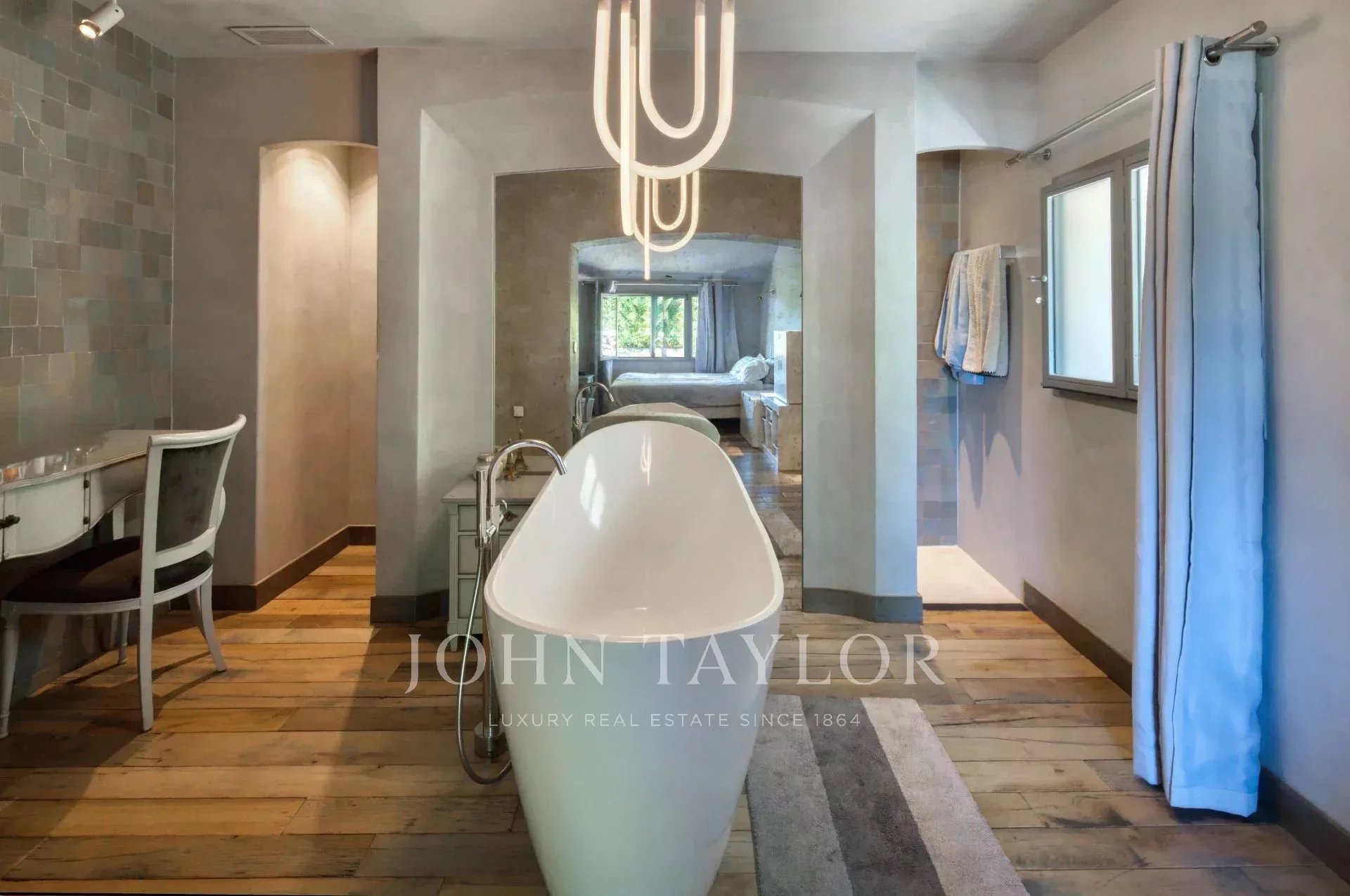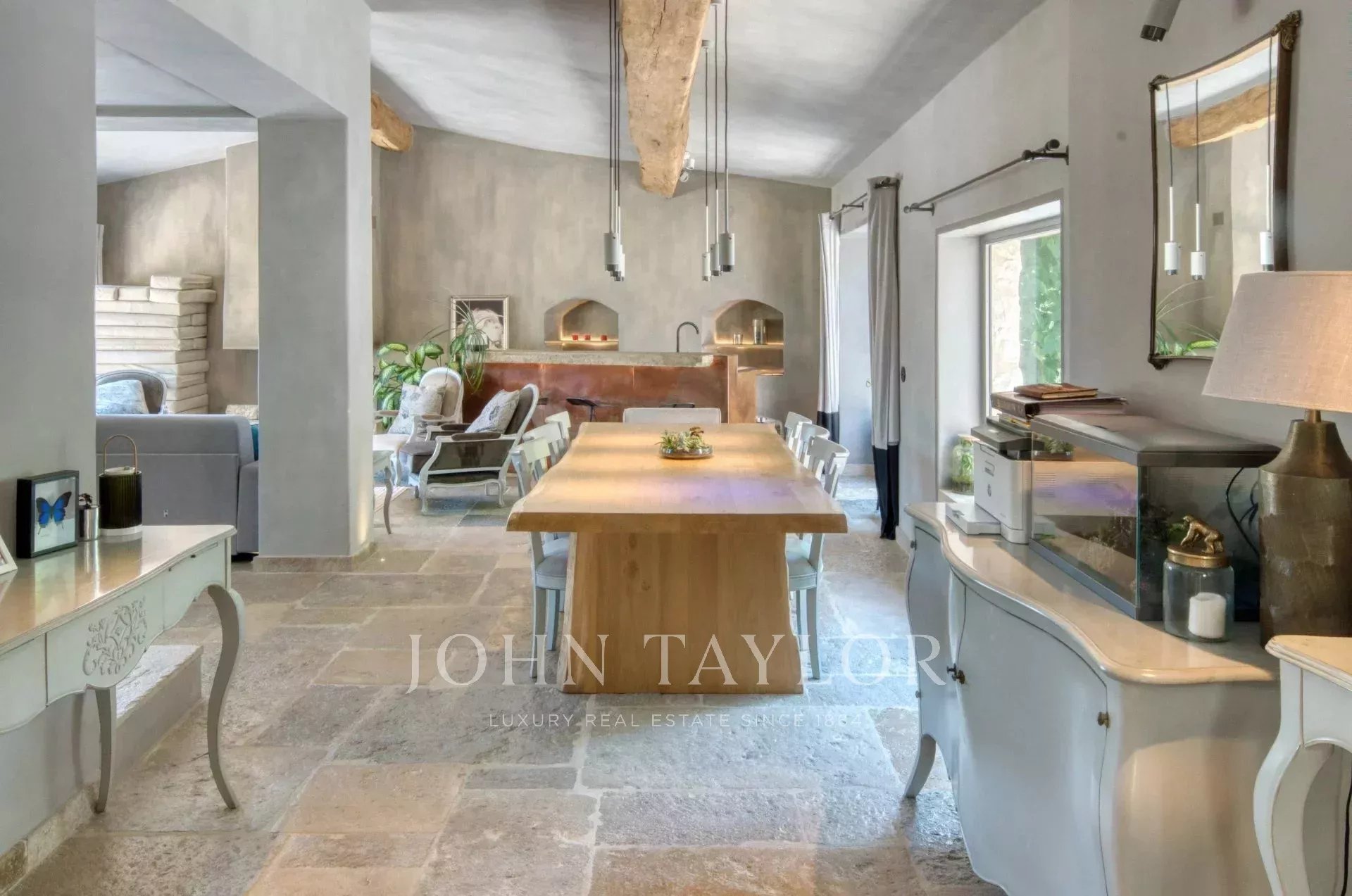 Bastide historique en pierres, située à pied du village de Saint-Paul-de-Vence, entièrement rénovée avec des prestations haut de gamme. Elle offre environ 300 m² habitables sur un jardin plat et paysagé de 2 890 m², alliant charme provençal et confort moderne.