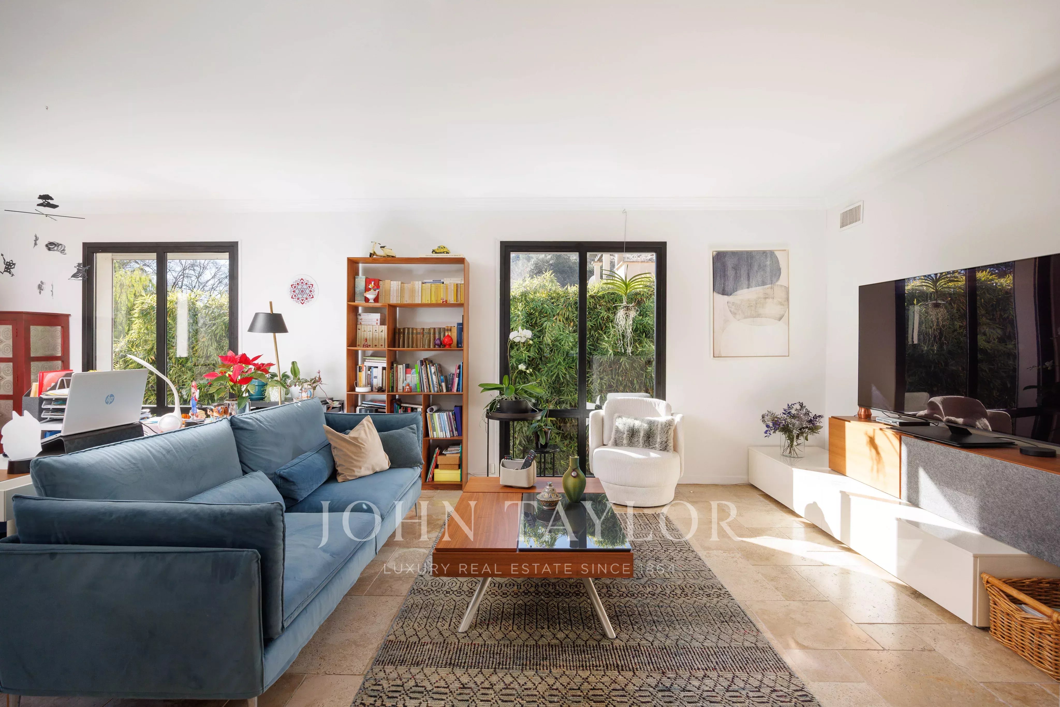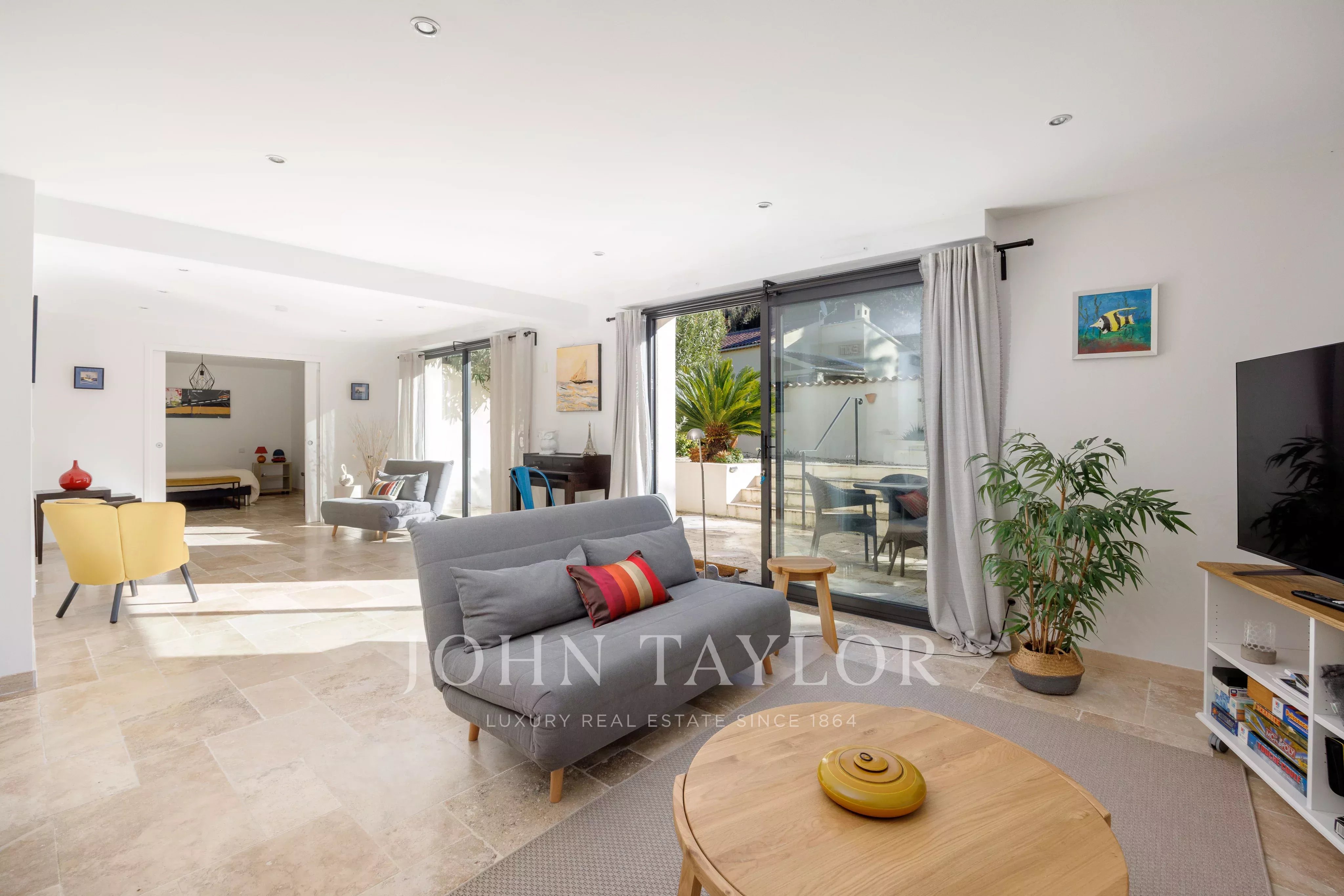 Située sur la prestigieuse commune de Saint-Paul-de-Vence, à quelques minutes à pied du village, cette villa contemporaine de 263 m², entièrement rénovée avec soin et raffinement, s’implante sur un terrain plat de 1 886 m² au sein d’un environnement résidentiel et calme.