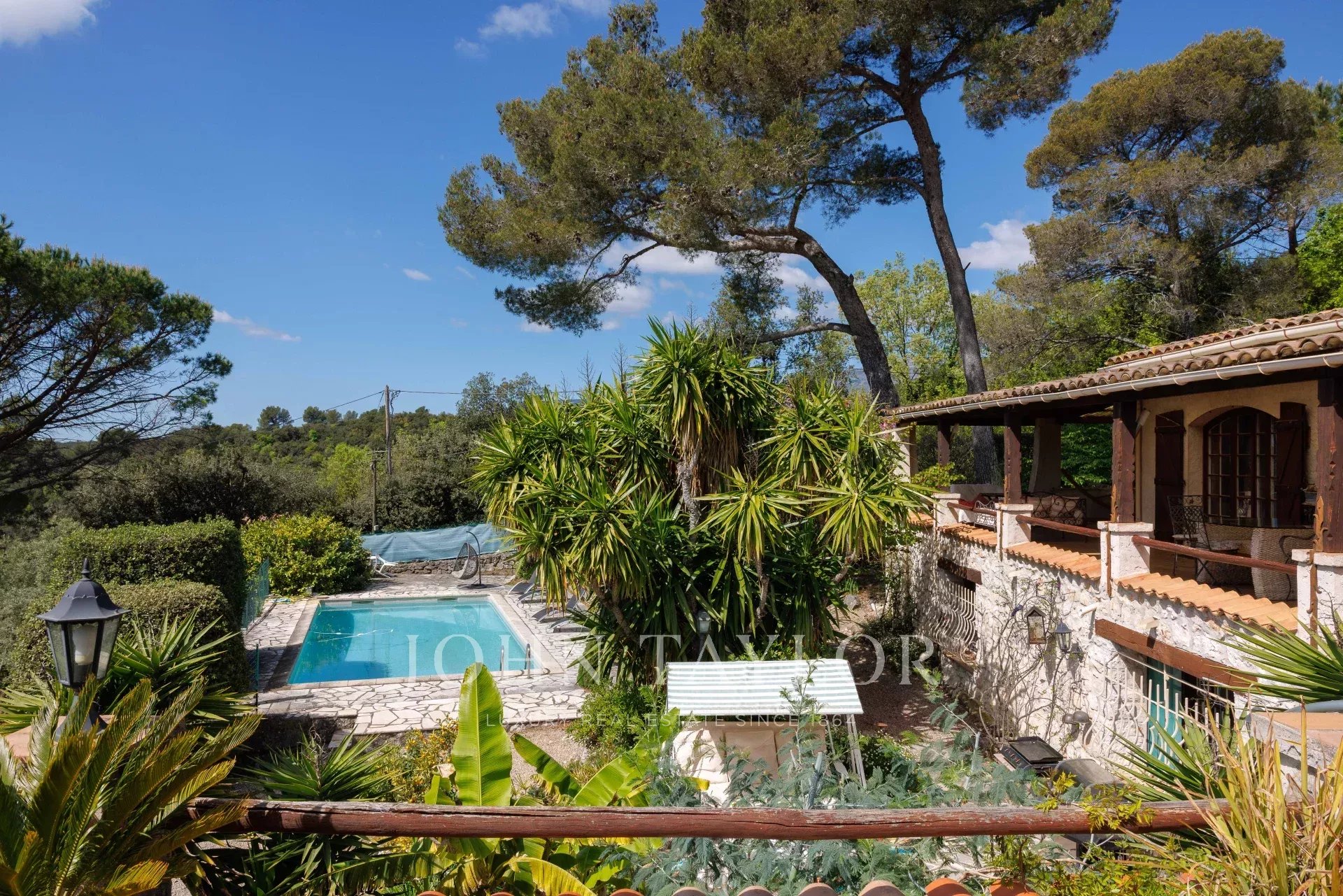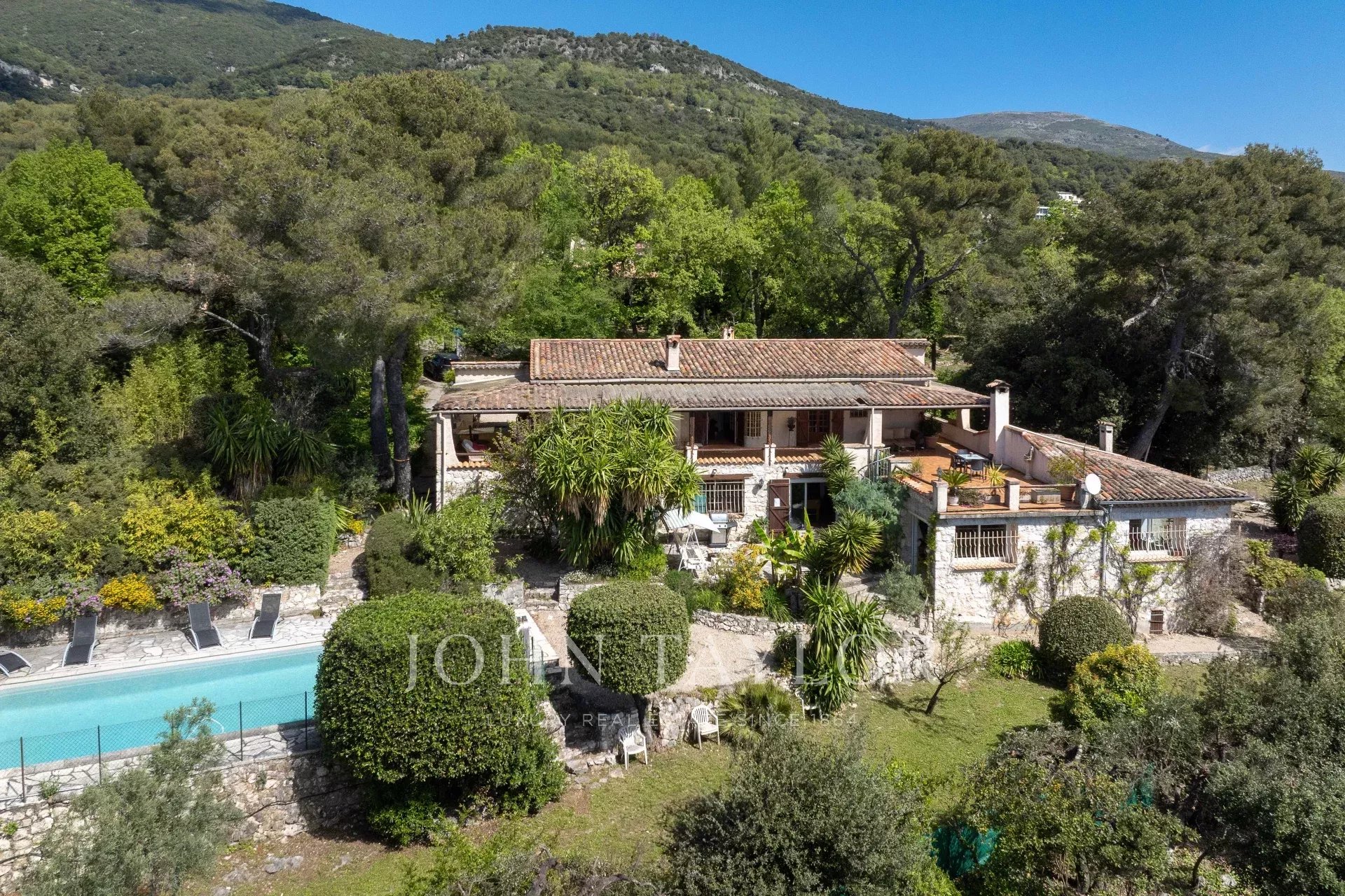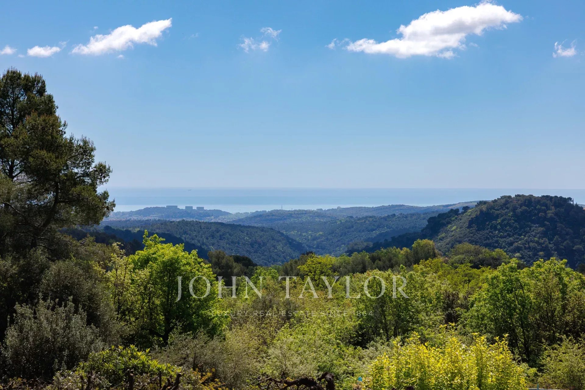 À seulement quelques minutes du village prisé de Tourrettes-sur-Loup, cette maison pleine de charme, en grande partie construite en pierre, offre environ 262 m² de surface habitable. Elle se trouve au cœur de la nature, au calme absolu, sur un superbe terrain de 4 774 m² avec piscine et une vue dégagée qui va jusqu’à la mer et le Cap d’Antibes.