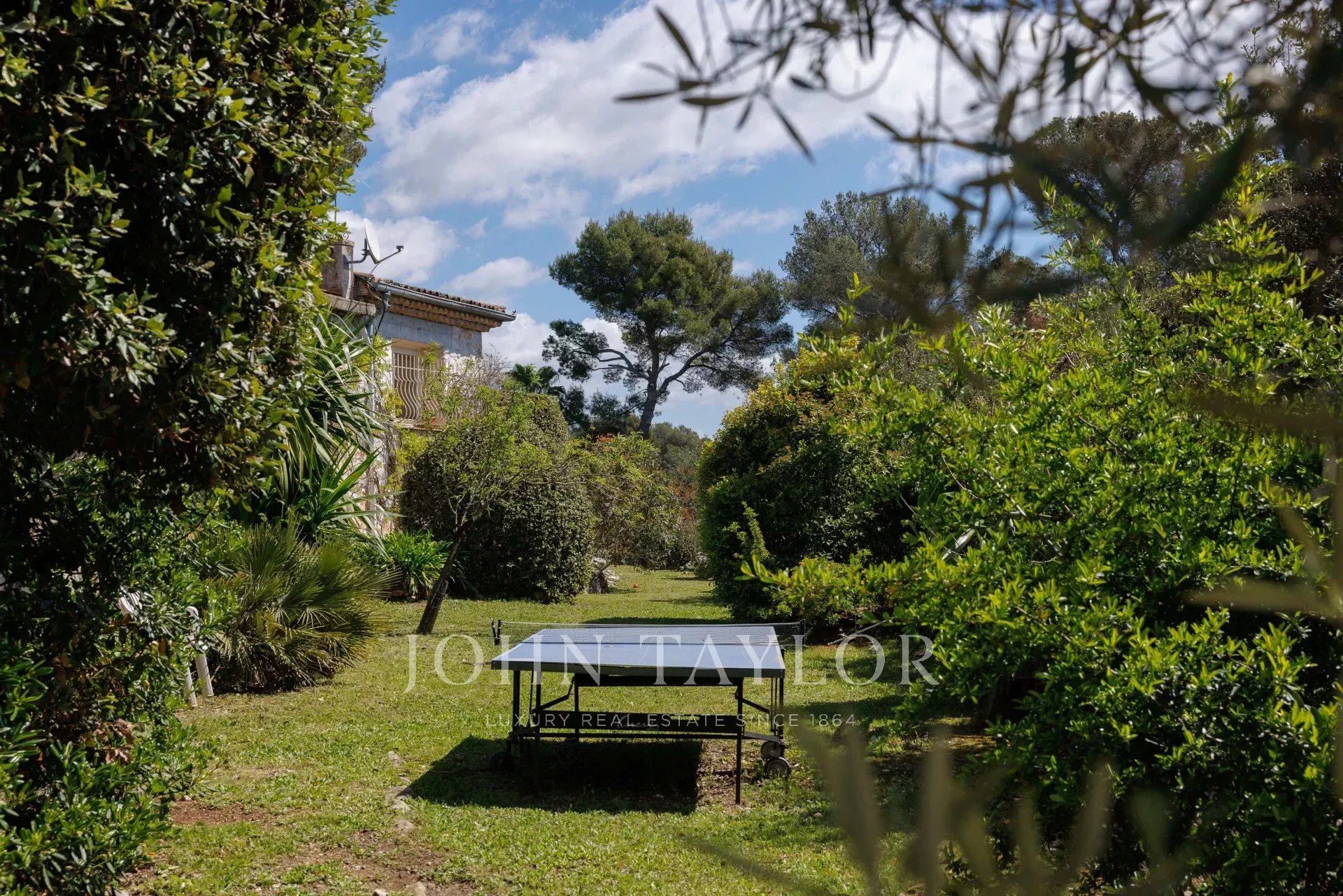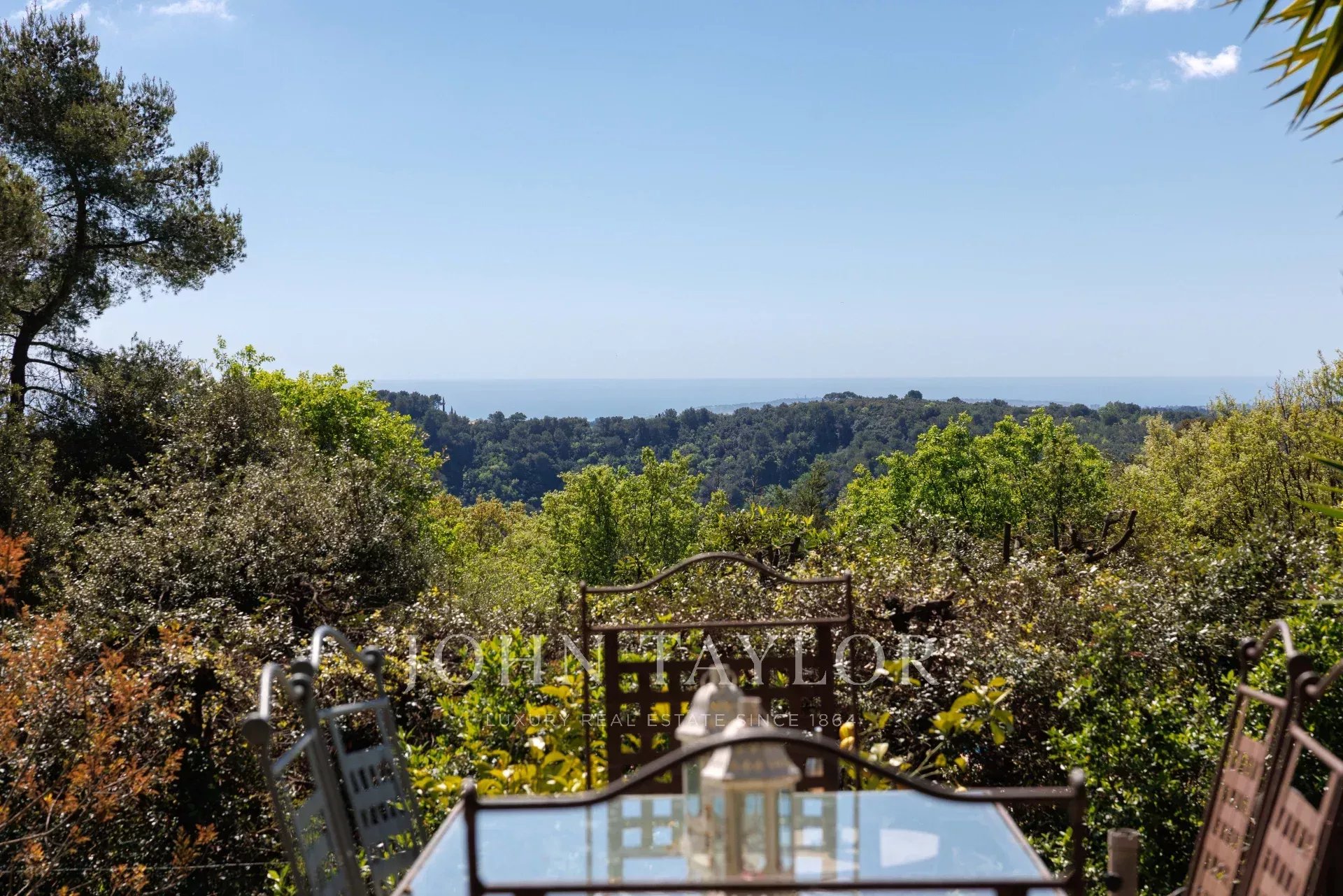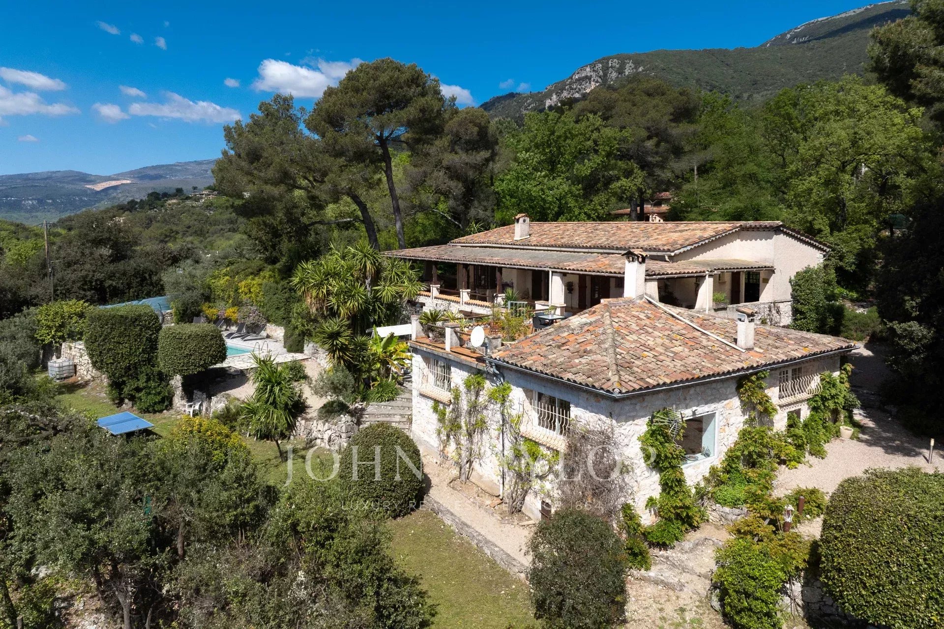 À seulement quelques minutes du village prisé de Tourrettes-sur-Loup, cette maison pleine de charme, en grande partie construite en pierre, offre environ 262 m² de surface habitable. Elle se trouve au cœur de la nature, au calme absolu, sur un superbe terrain de 4 774 m² avec piscine et une vue dégagée qui va jusqu’à la mer et le Cap d’Antibes.