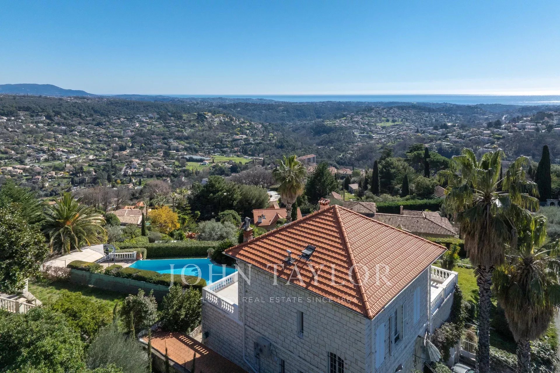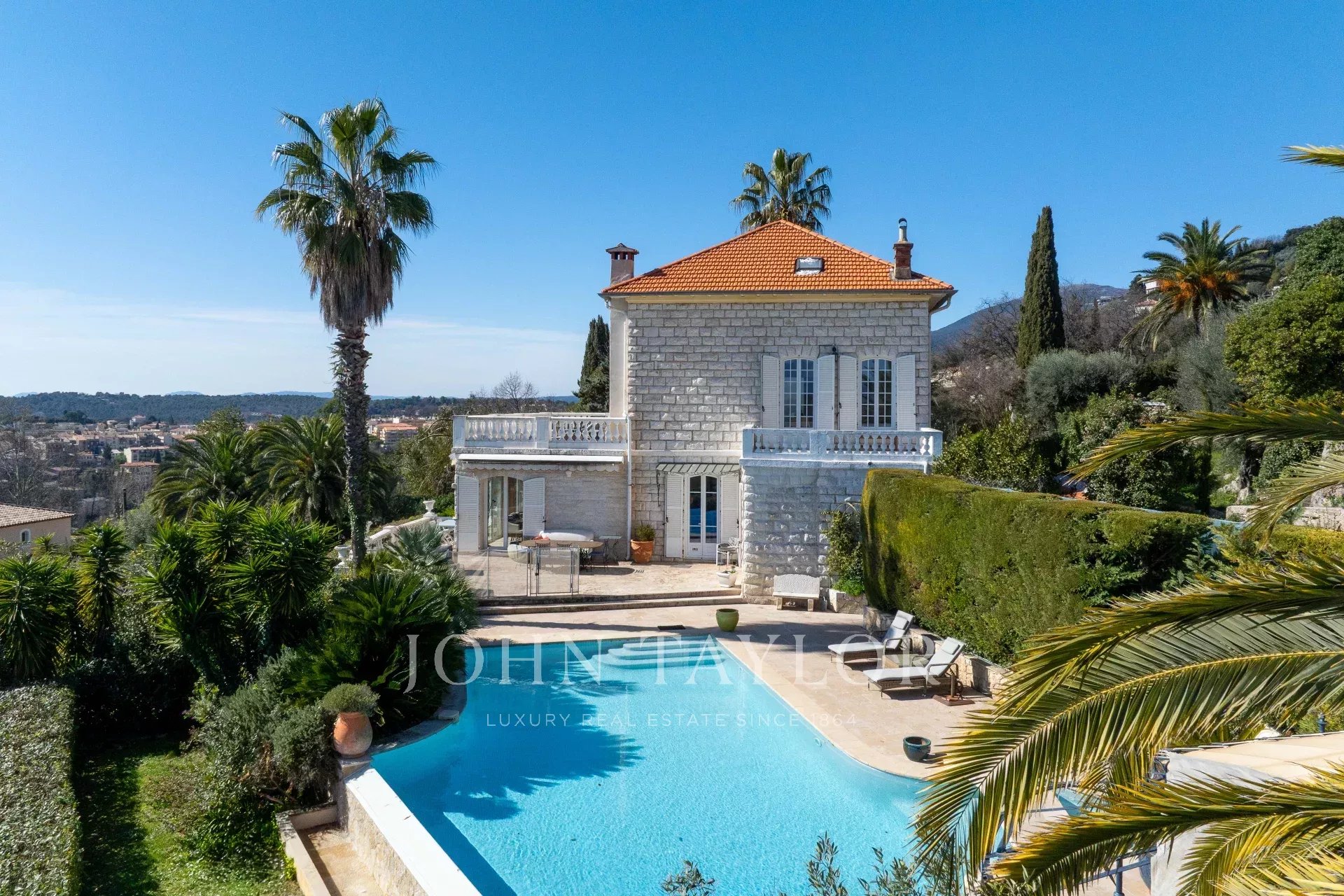 Baisse de prix ! Nichée sur les hauteurs résidentielles de Vence, cette charmante demeure en pierre des années 1920, d’environ 240 m², offre un cadre idyllique avec une vue panoramique sur la mer et la Côte d’Azur. Son terrain paysagé de 1 500 m², sublimé par une magnifique piscine chauffée, invite à la détente.