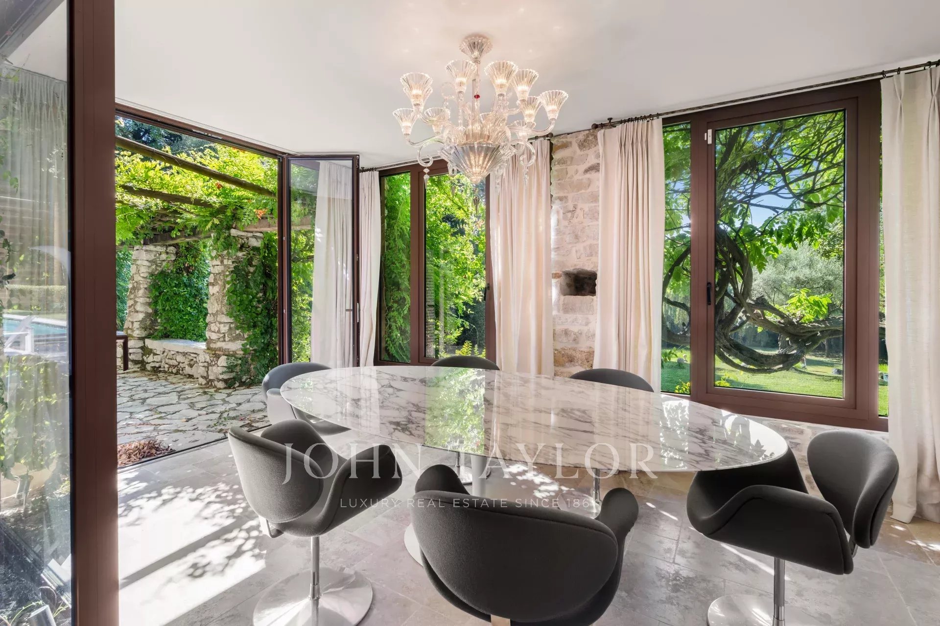 À quelques minutes de la cité médiévale de Vence, dans l’arrière-pays de la Côte d’Azur, cette propriété historique en pierres – La Bastide de la Sine, édifiée en 1751 – se dévoile dans un environnement d’une rare beauté. Entièrement rénovée avec soin en 2018, elle incarne l’équilibre parfait entre le charme authentique d’une demeure d’époque et le confort des prestations contemporaines les plus raffinées.